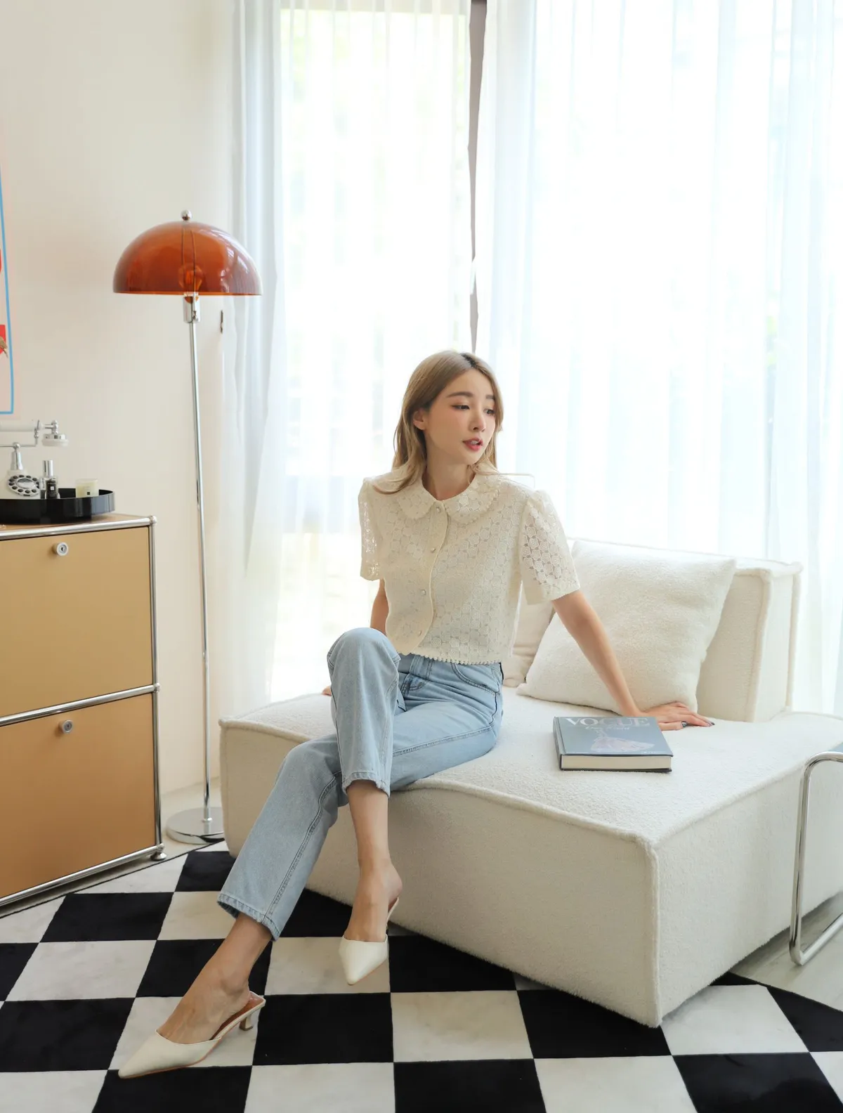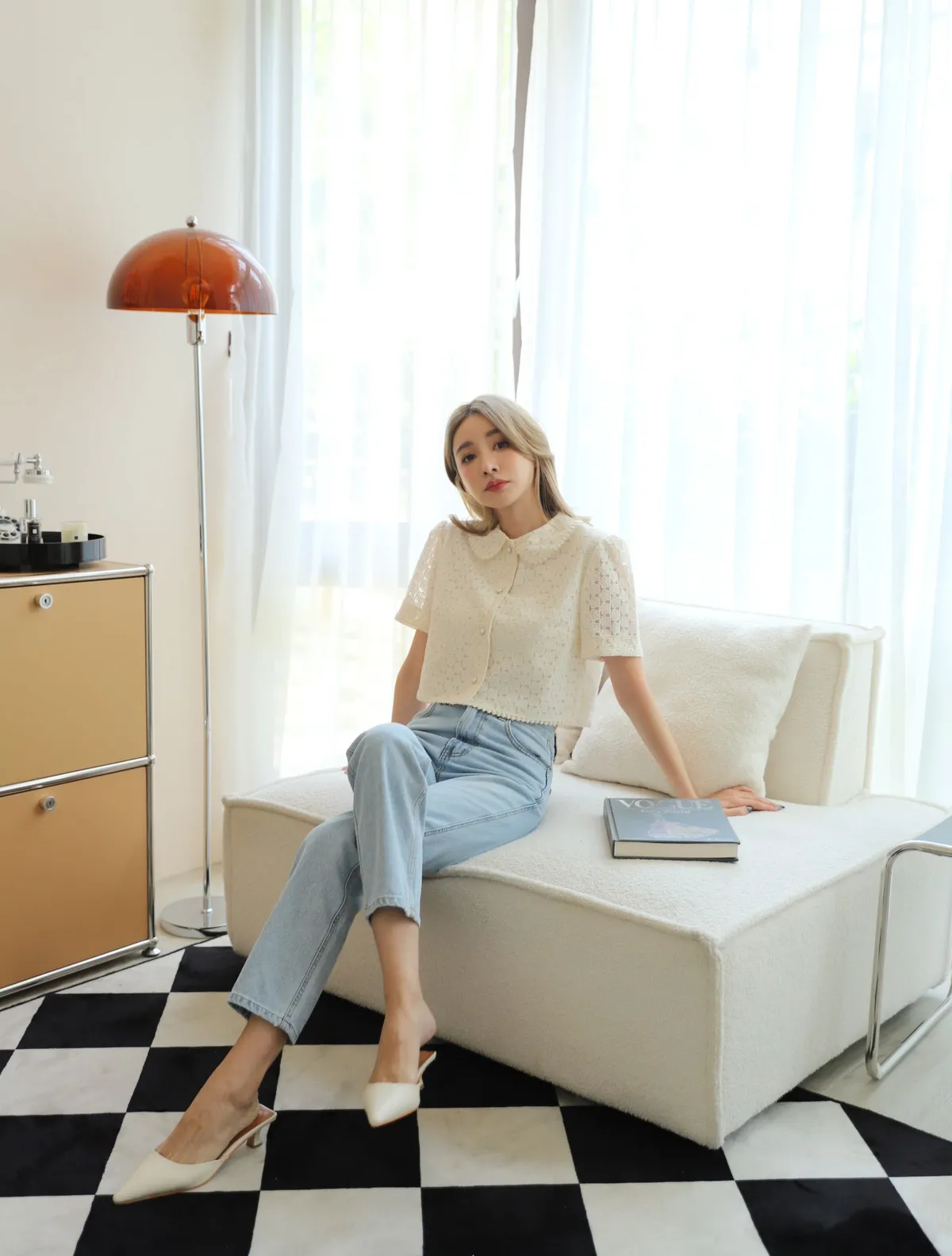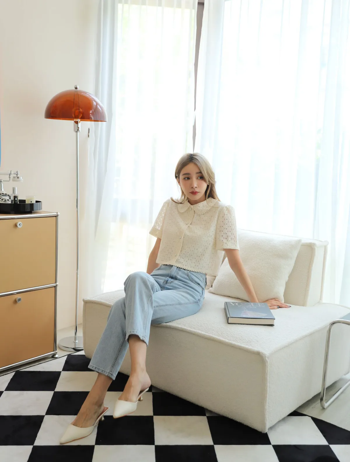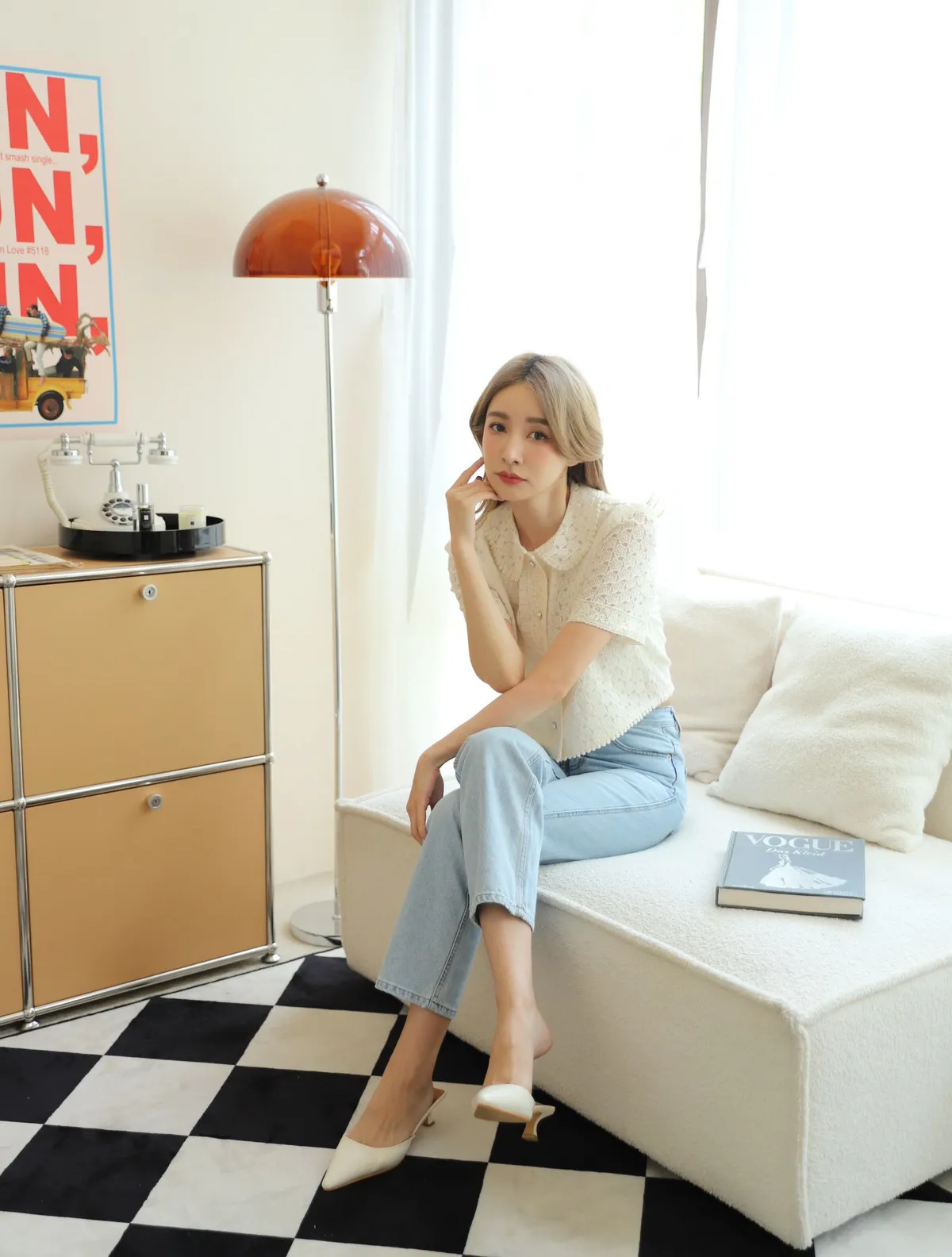高端設計師 修身顯瘦復古水洗淺藍色直筒九分褲