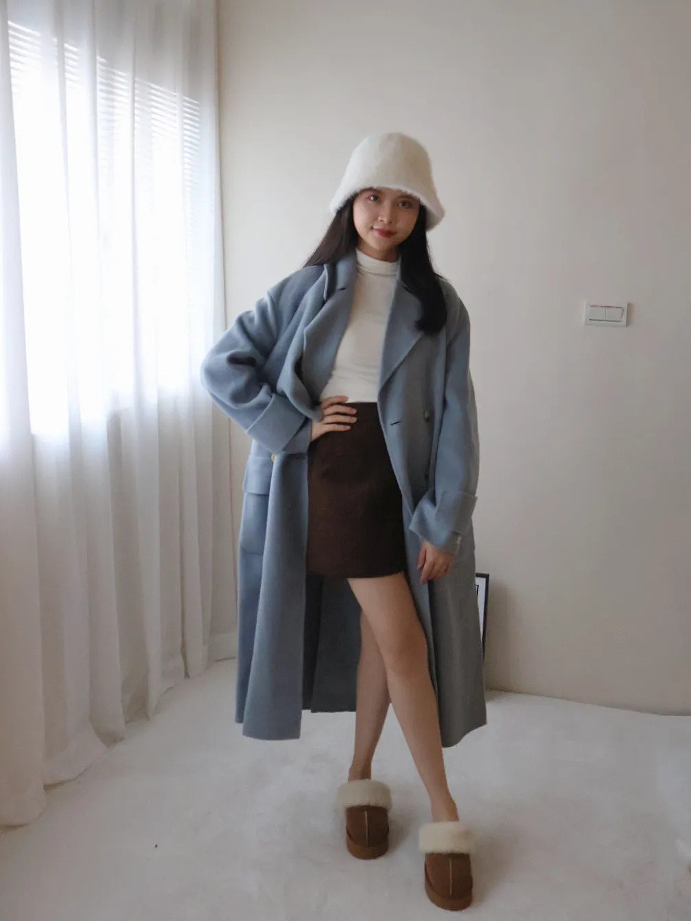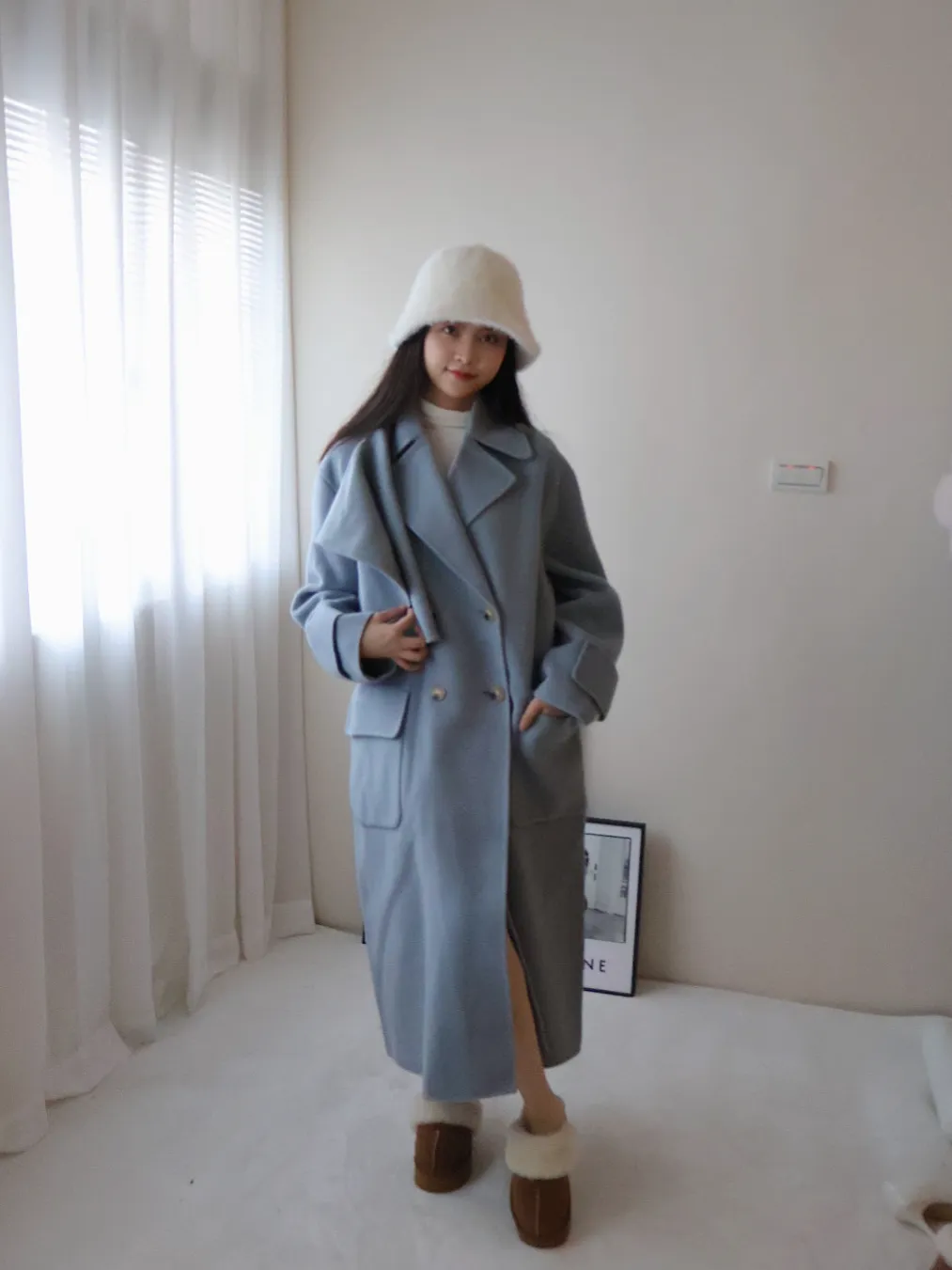 顏色:天藍色 尺寸:Free 材質:羊絨手工大衣