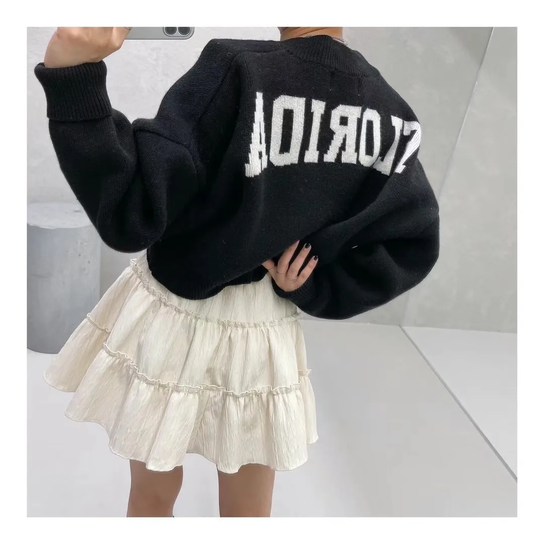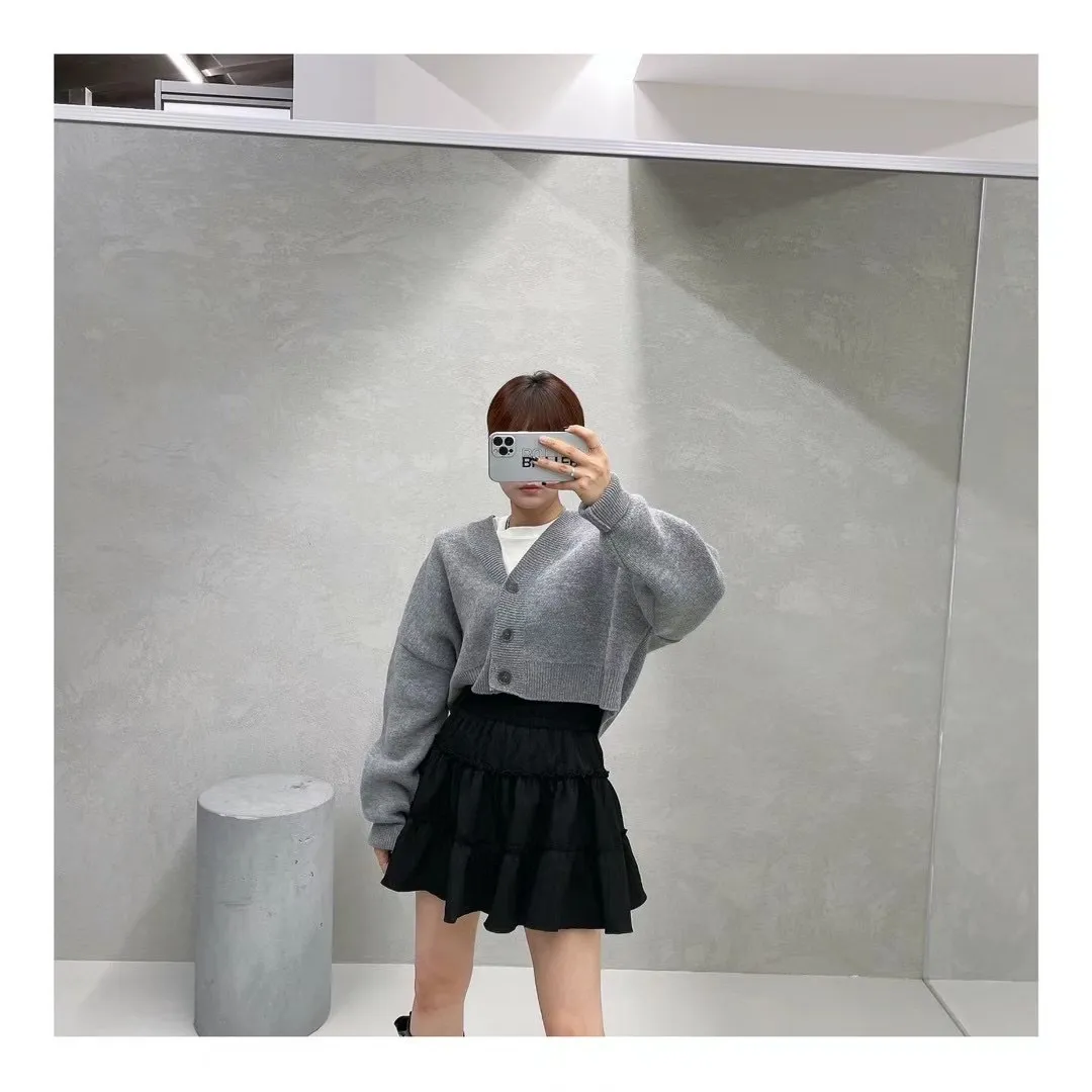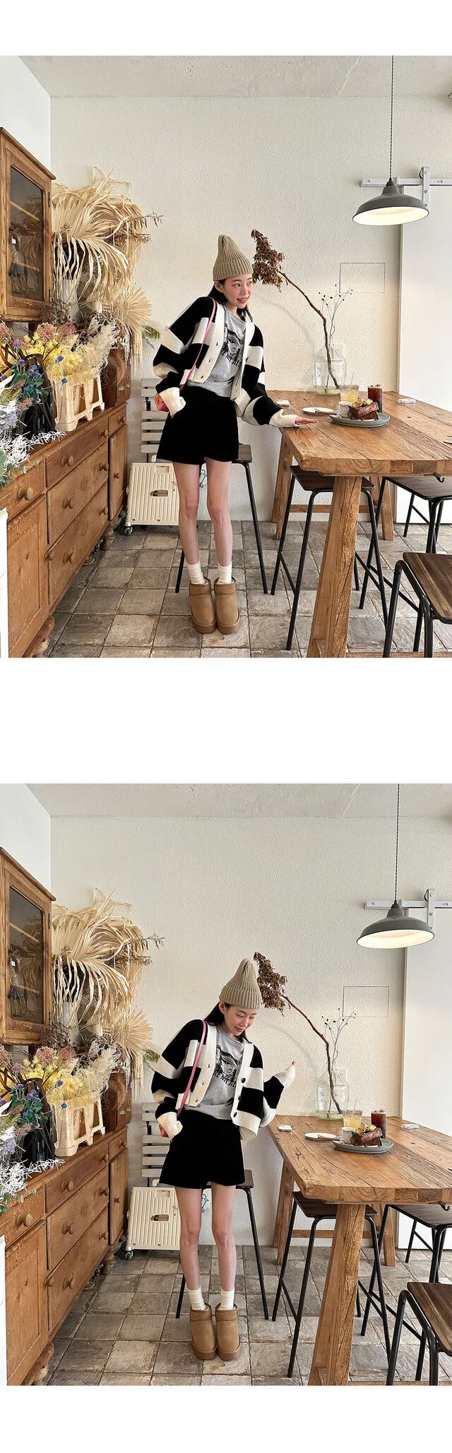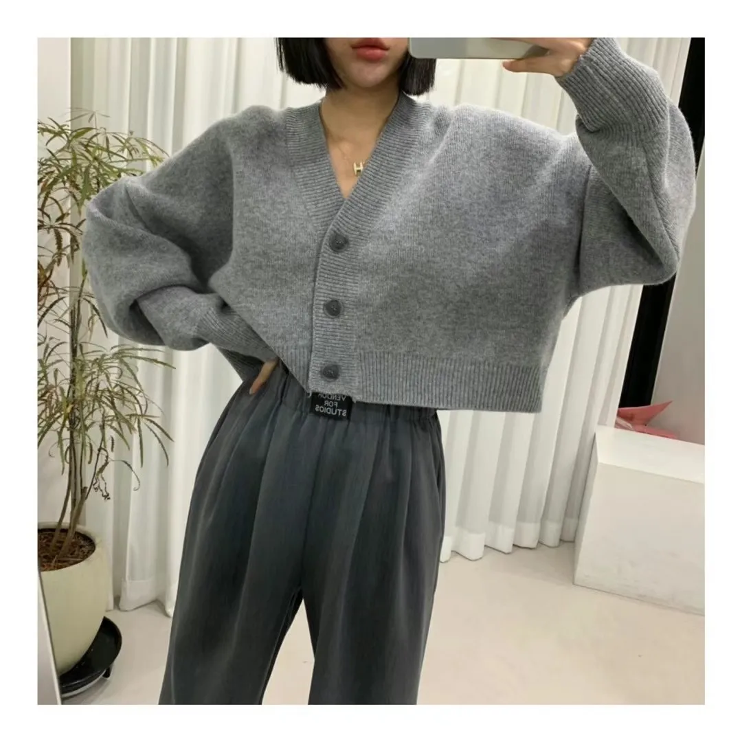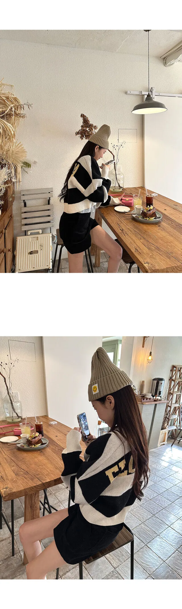 慵懶風條紋v領寬鬆短款羊毛開衫毛衣