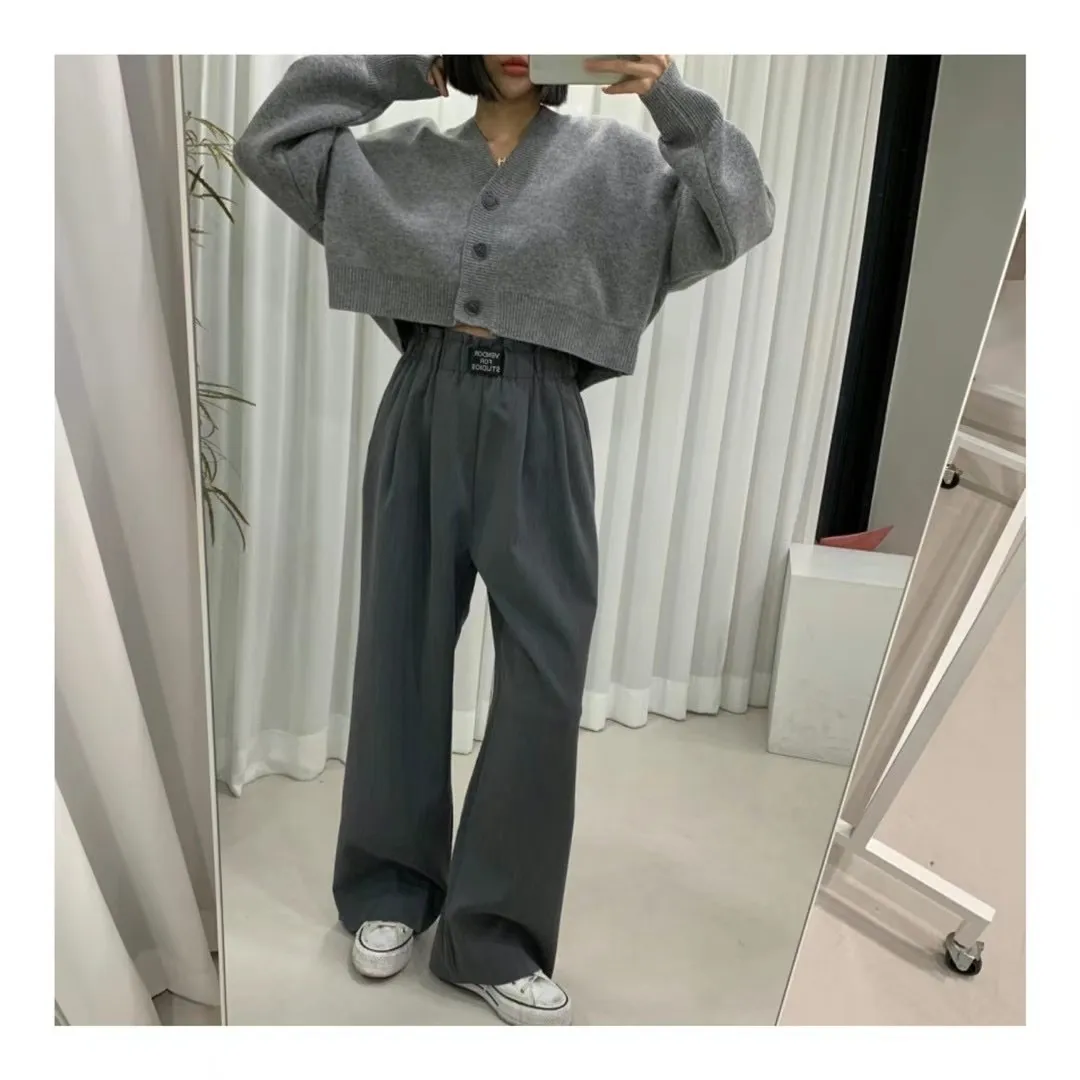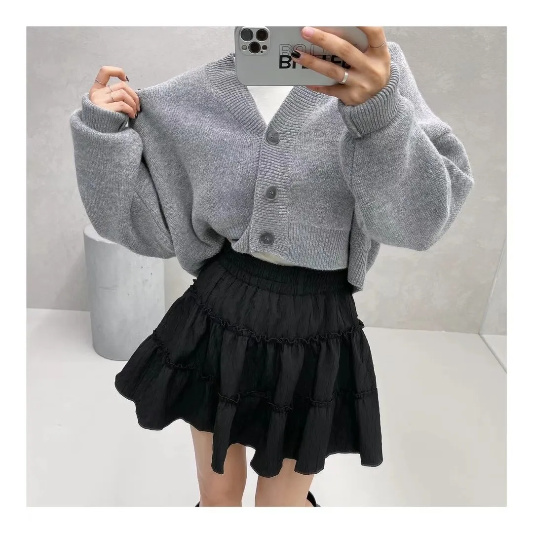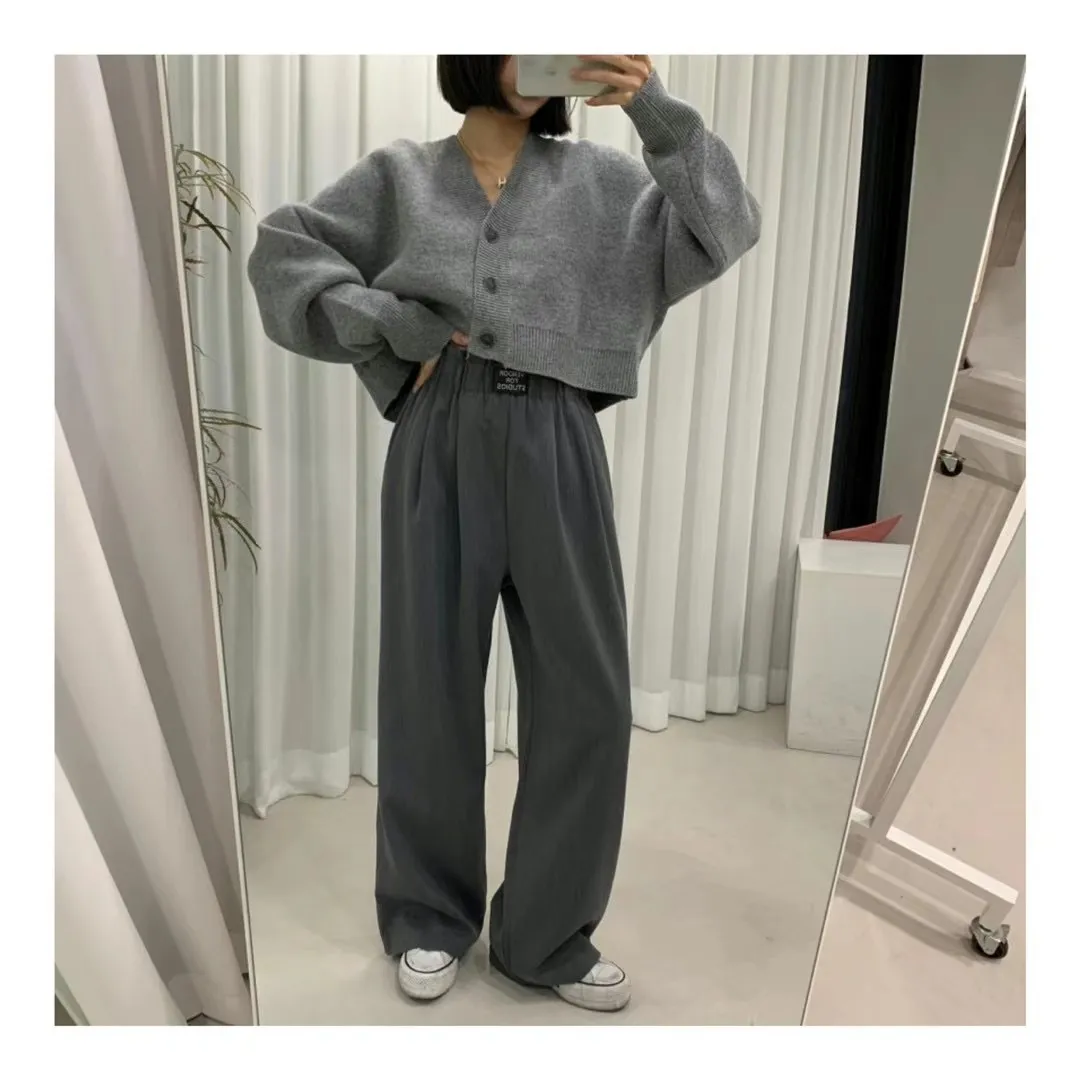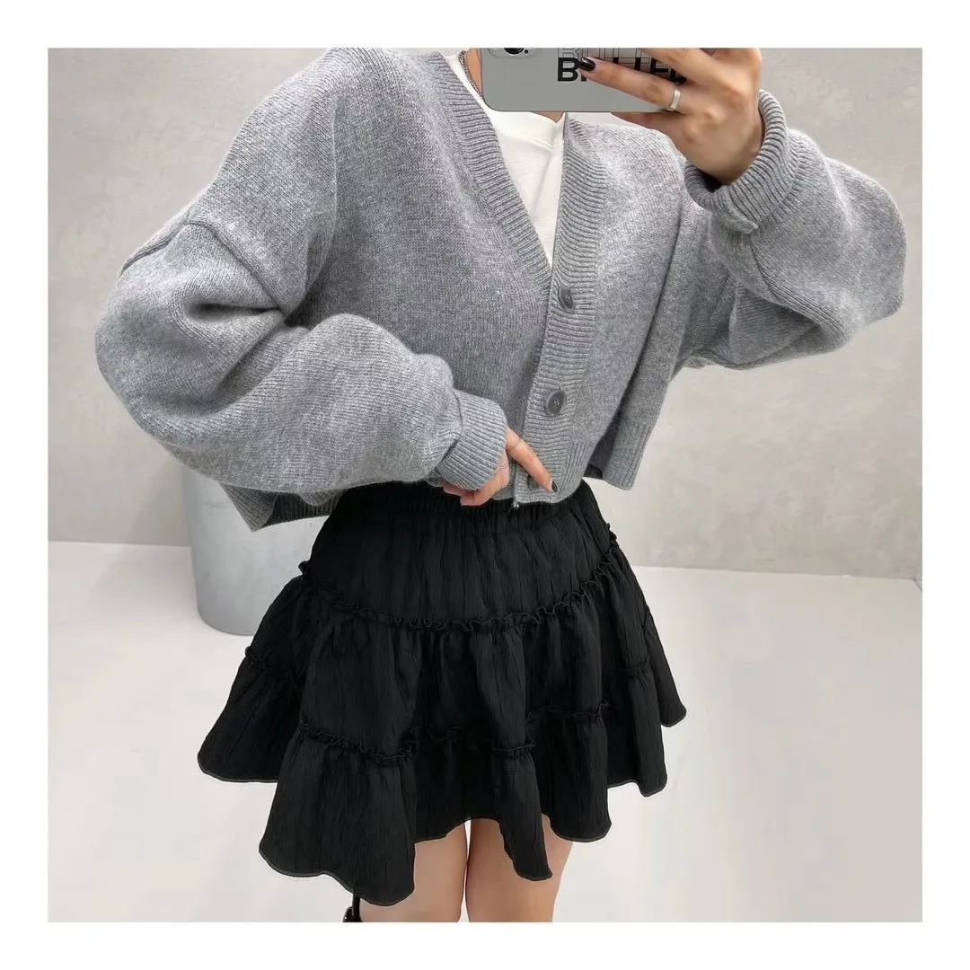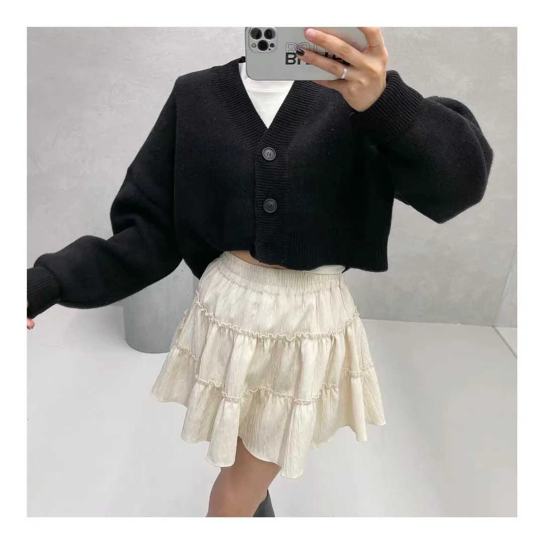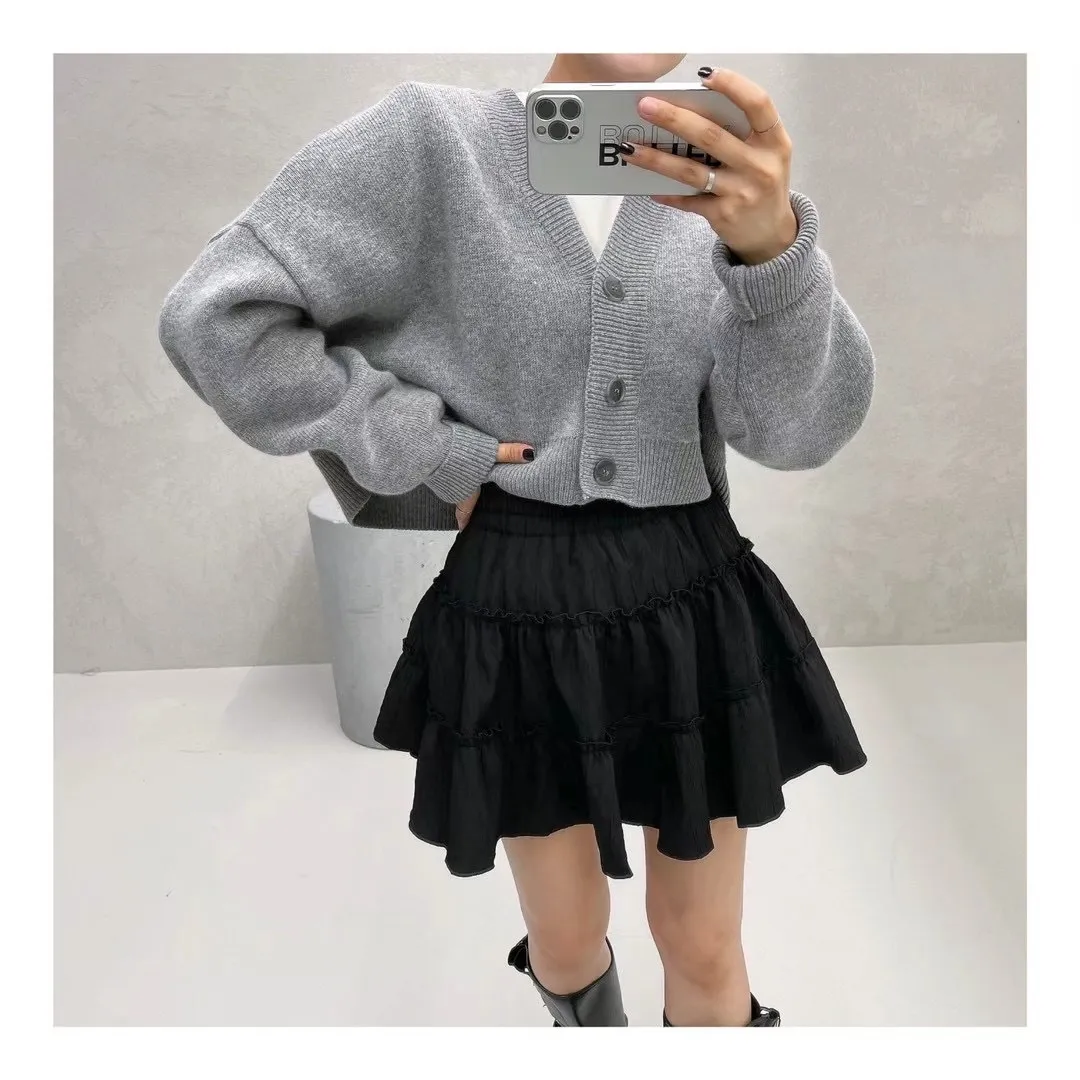 慵懶風條紋v領寬鬆短款羊毛開衫毛衣