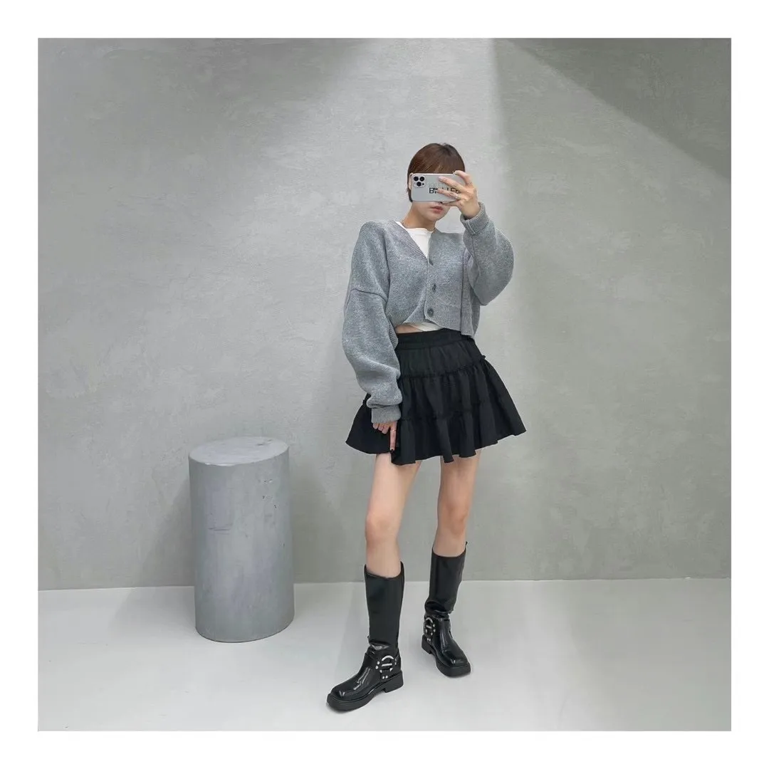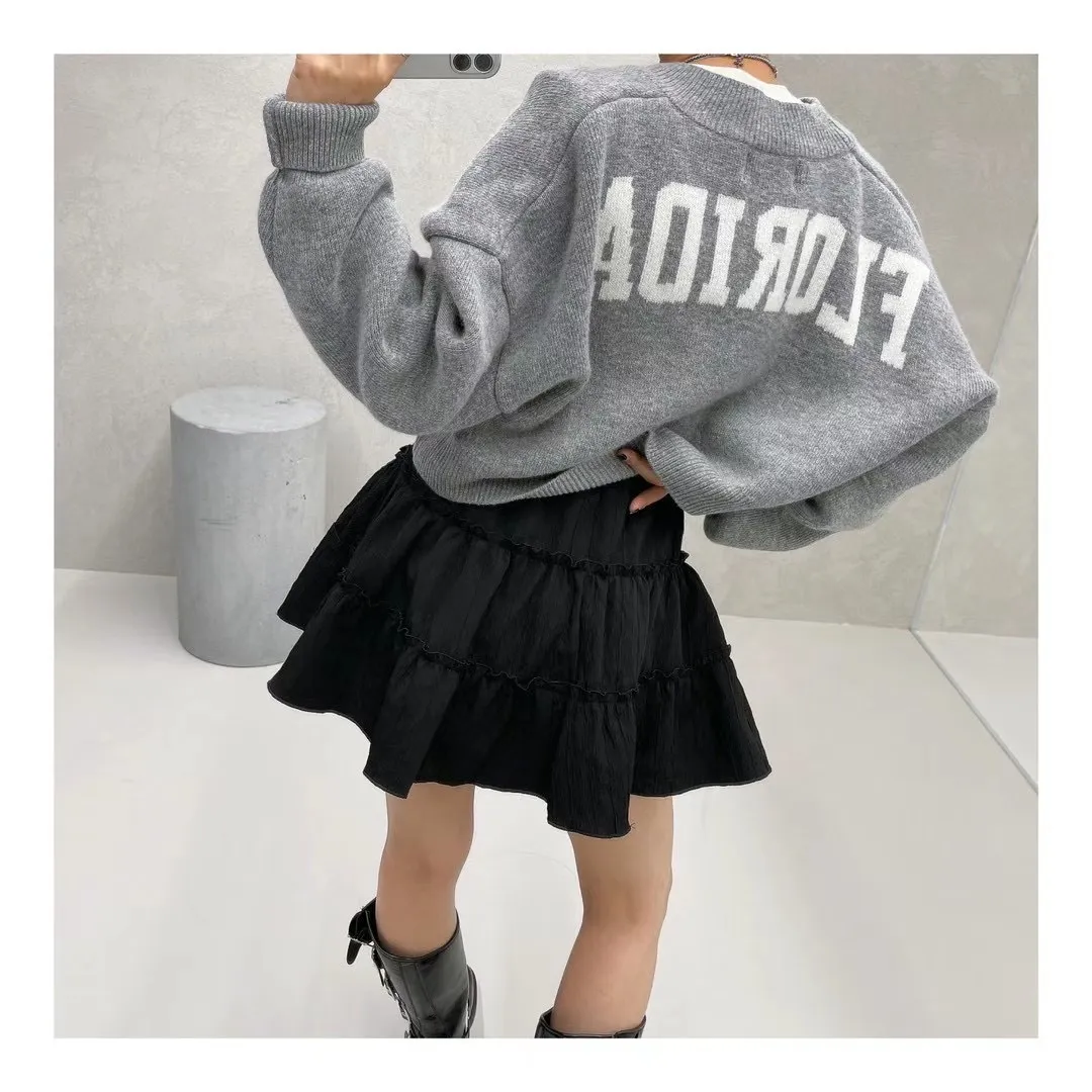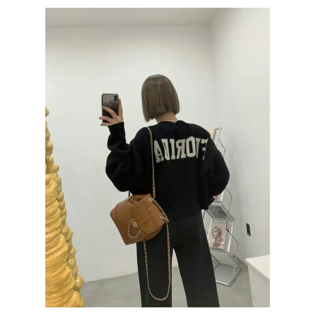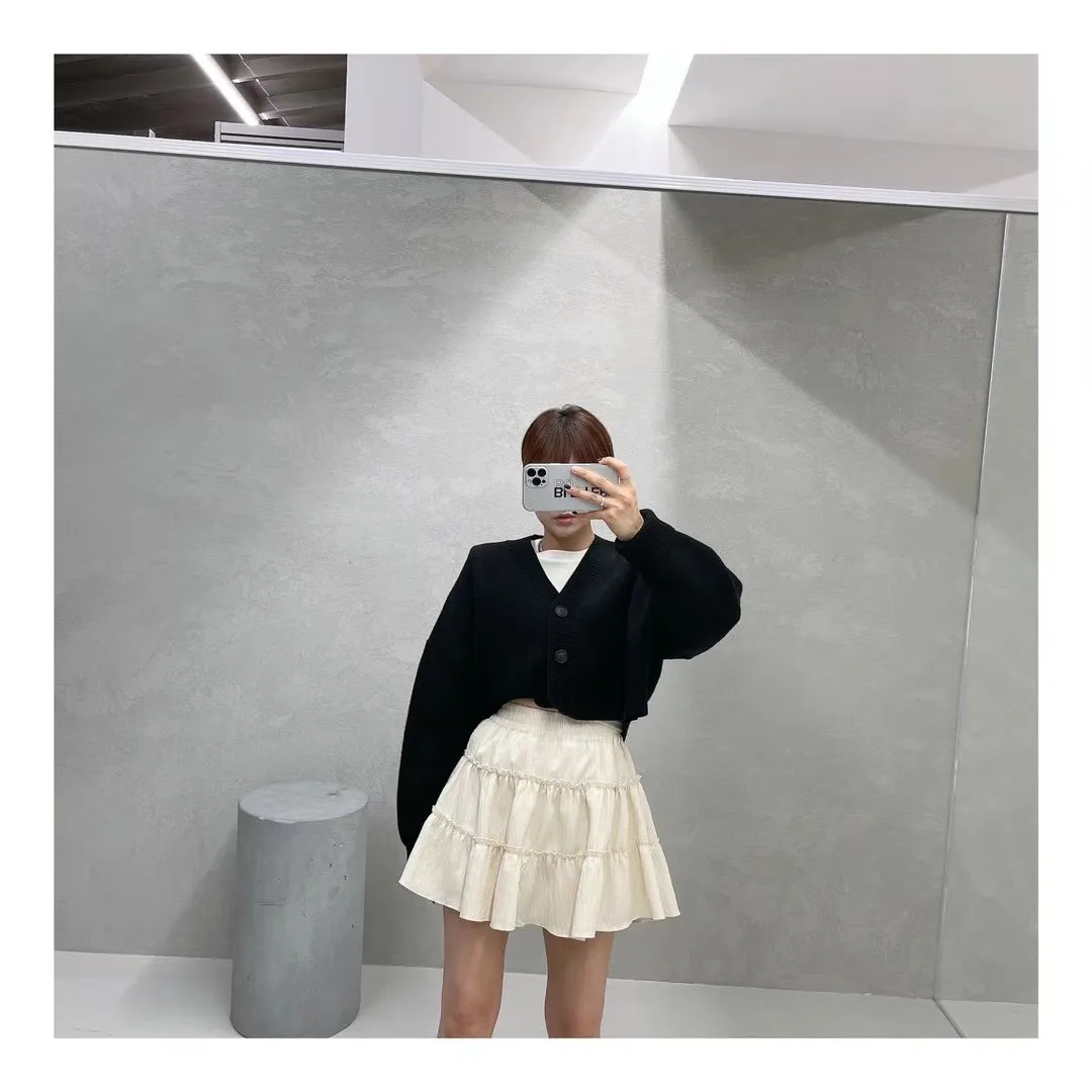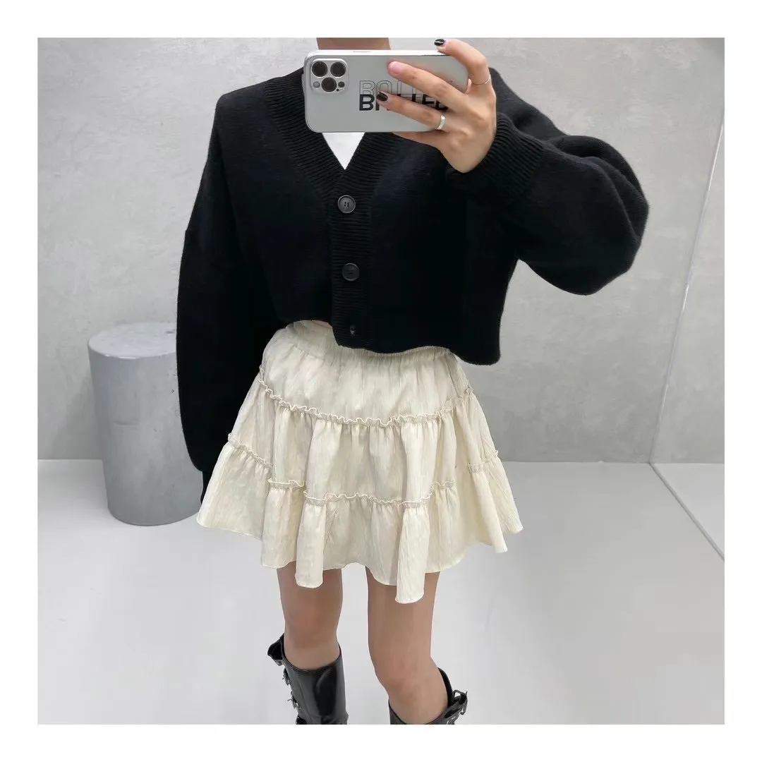 慵懶風條紋v領寬鬆短款羊毛開衫毛衣