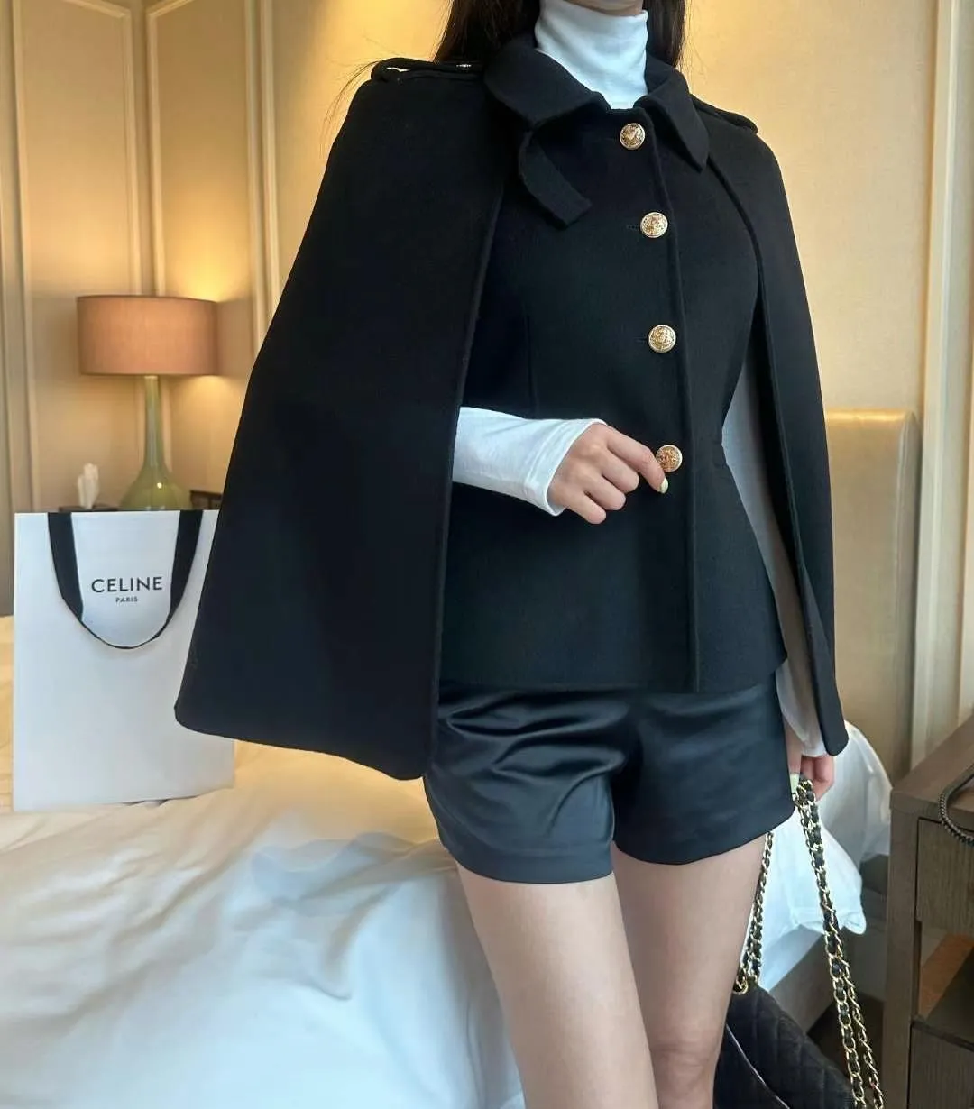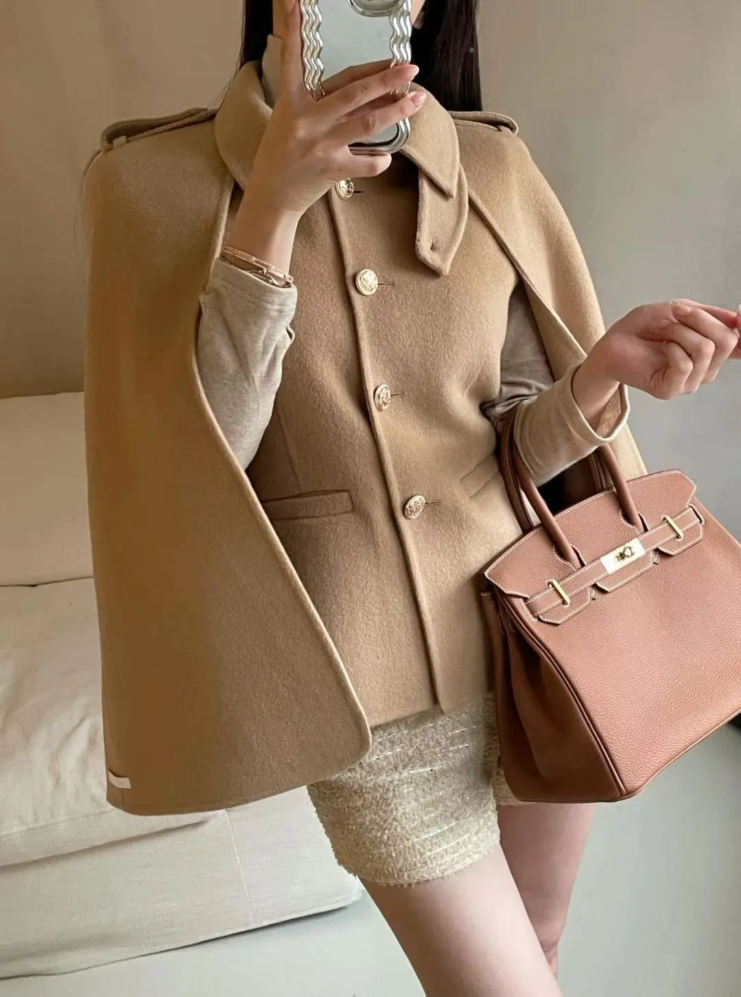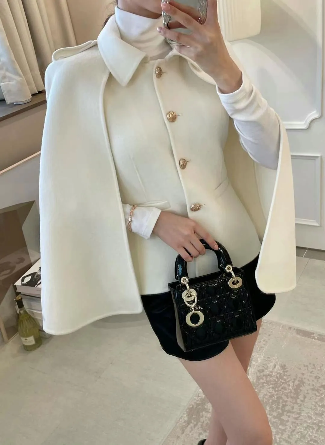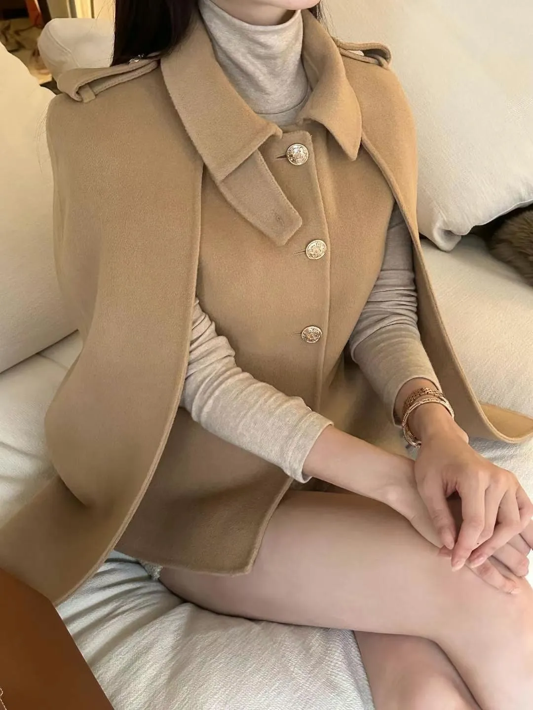 高級Hand made金屬單排釦斗篷披肩雙面羊毛呢外套 手工羊毛大衣