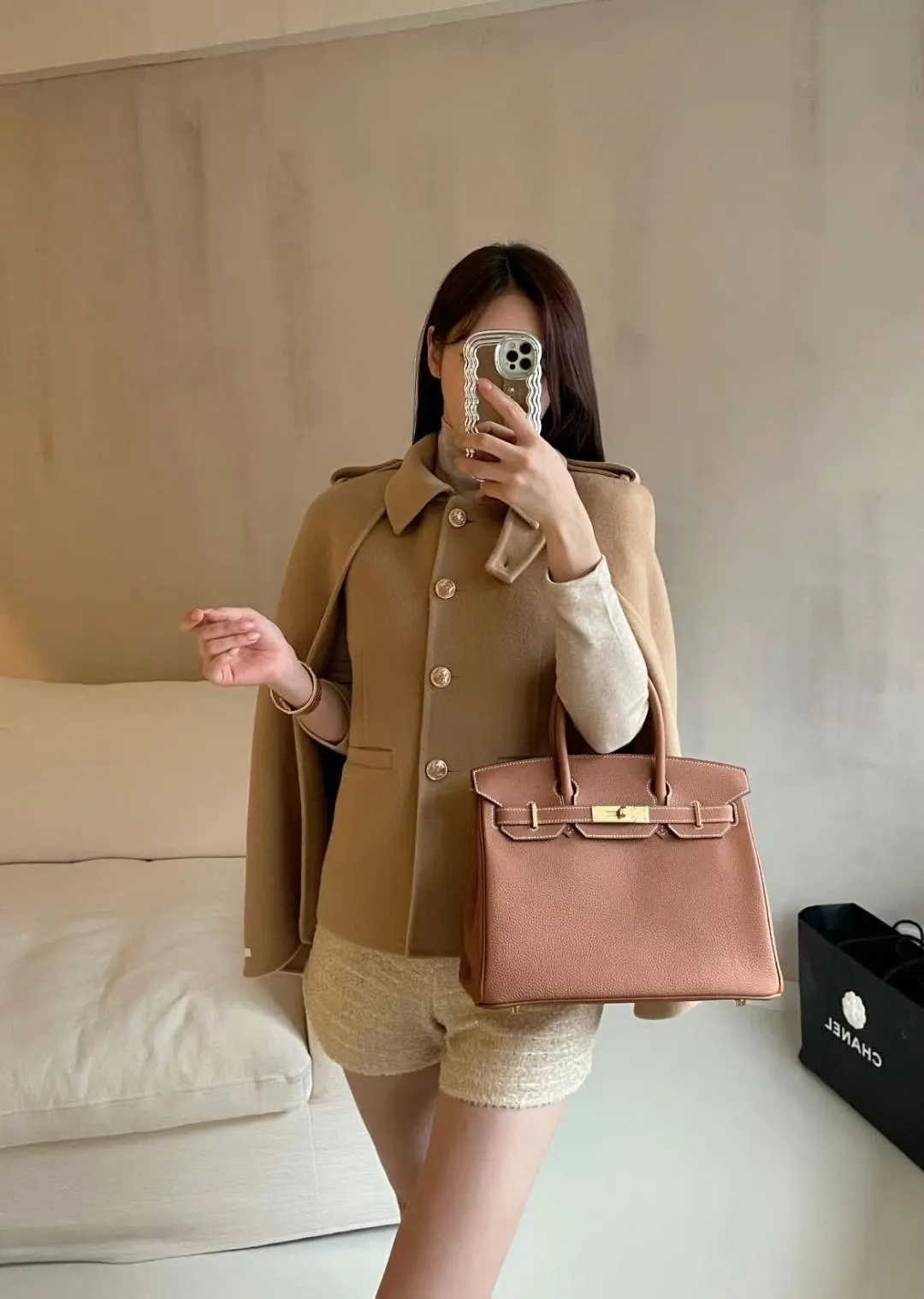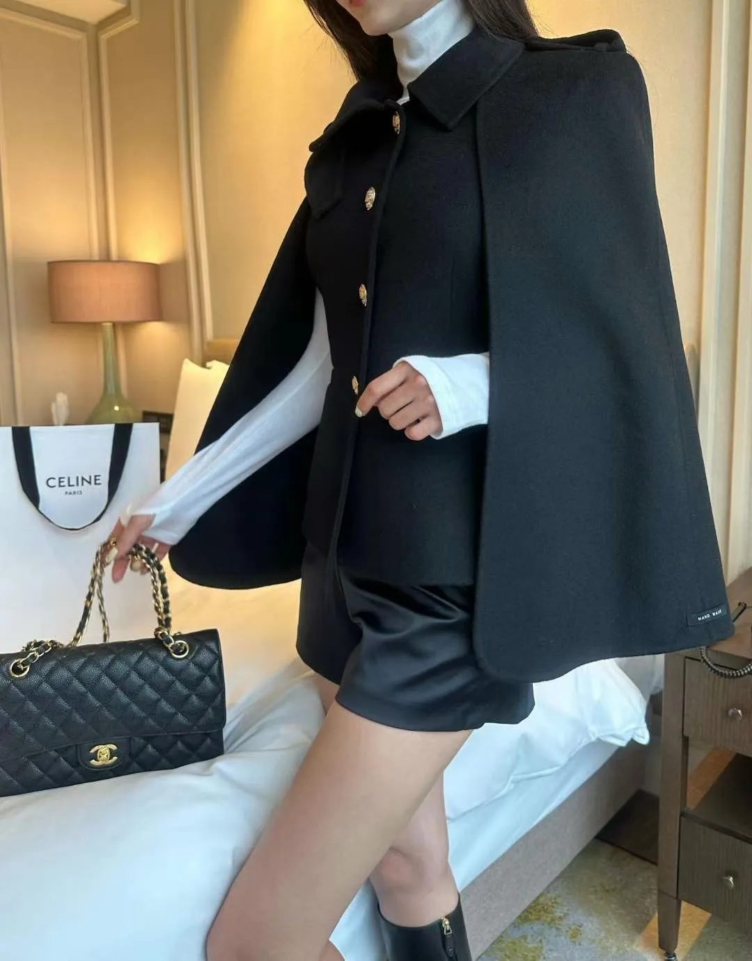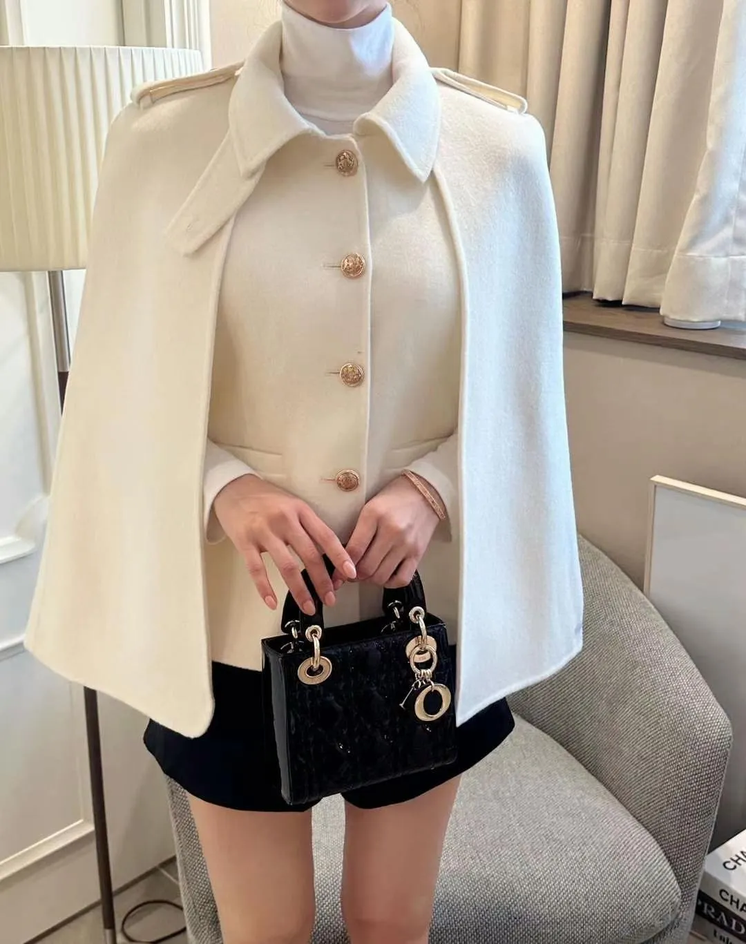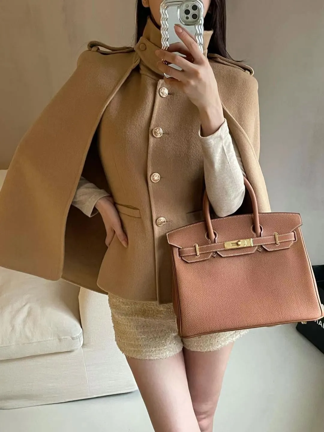 高級Hand made金屬單排釦斗篷披肩雙面羊毛呢外套 手工羊毛大衣