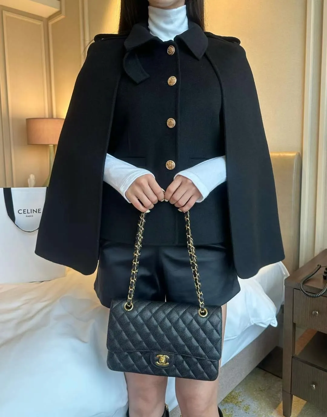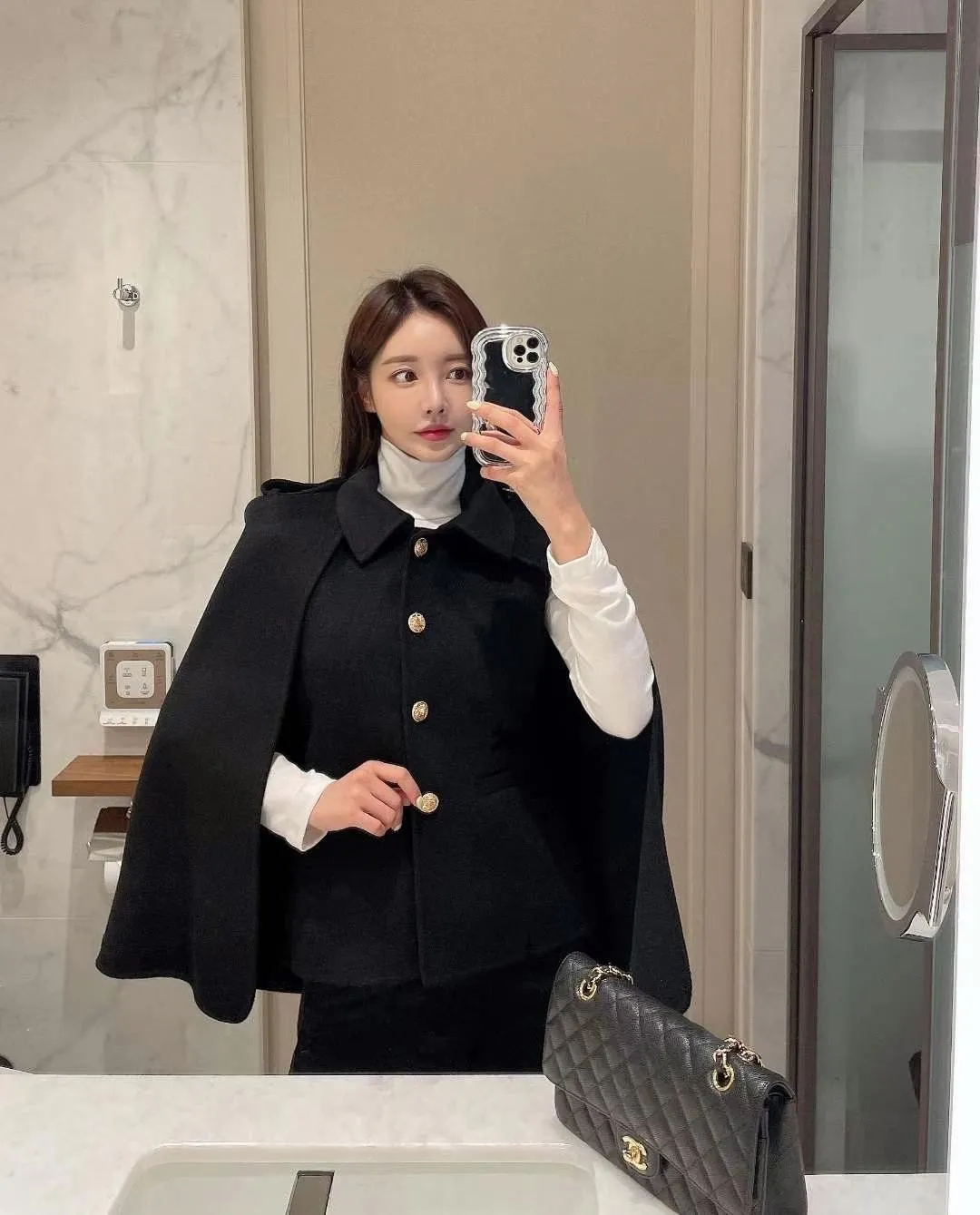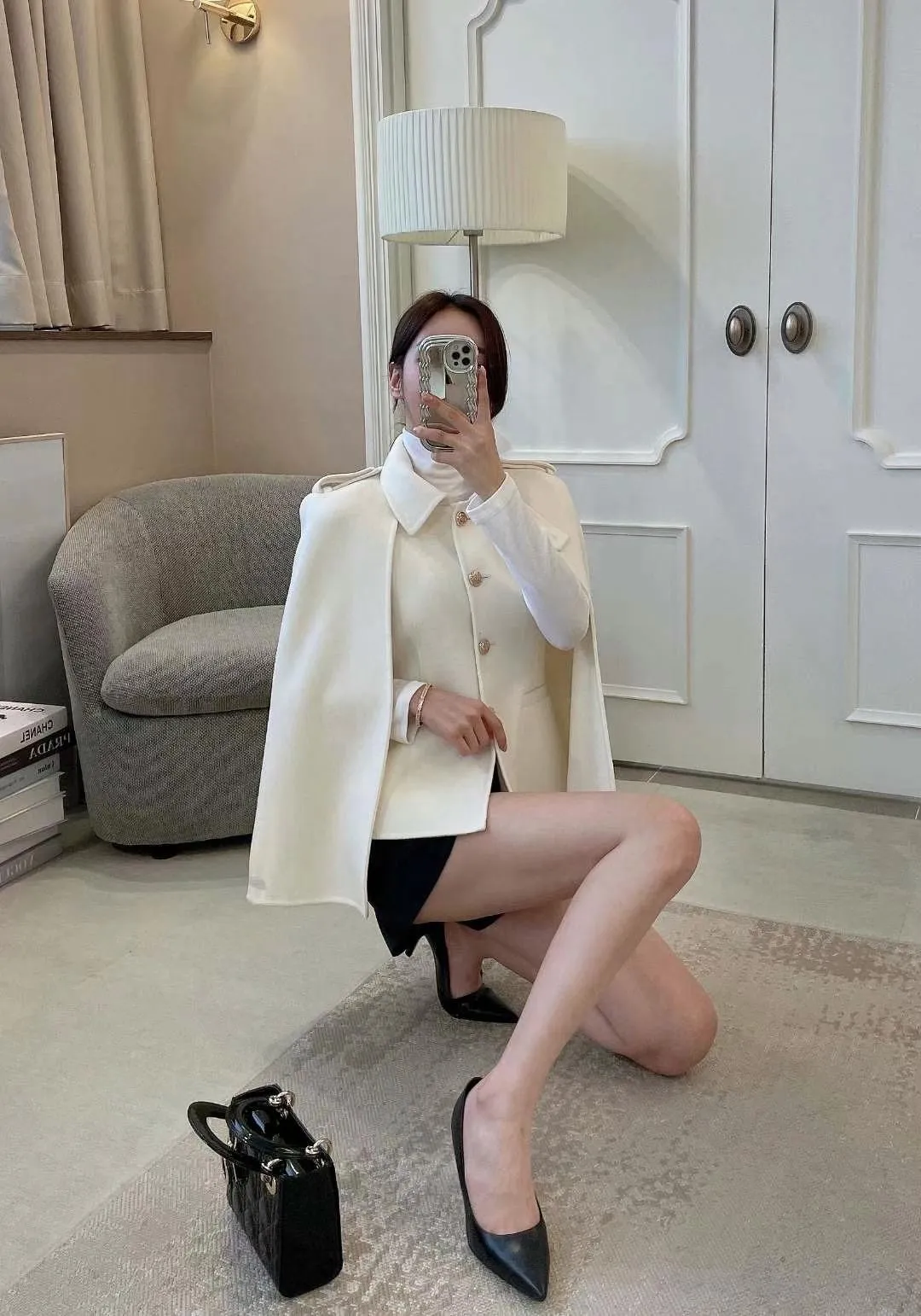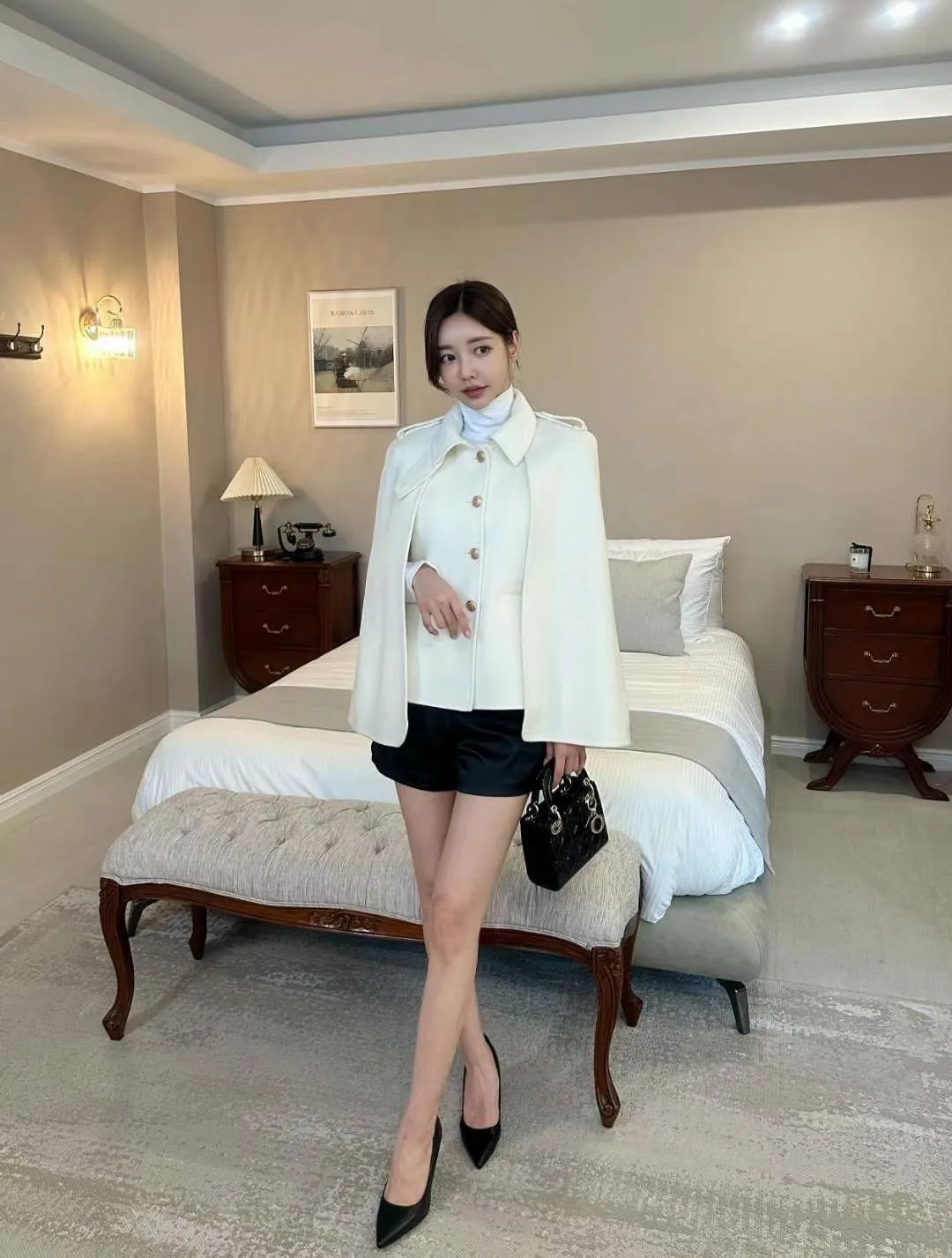 高級Hand made金屬單排釦斗篷披肩雙面羊毛呢外套 手工羊毛大衣