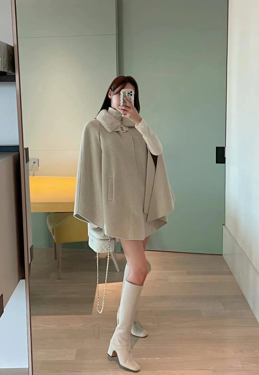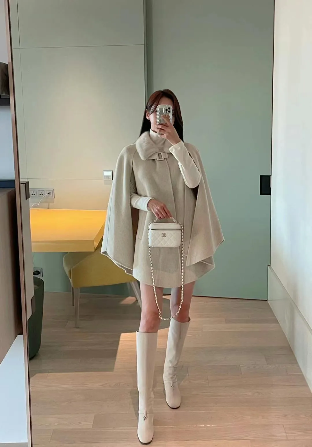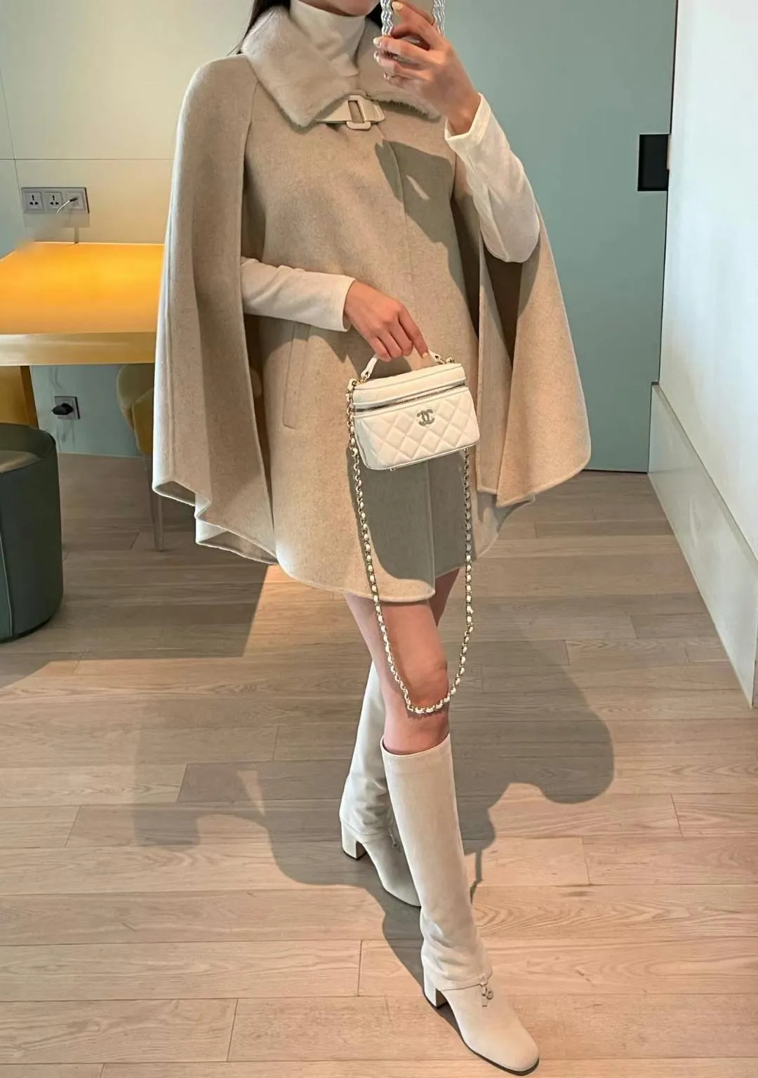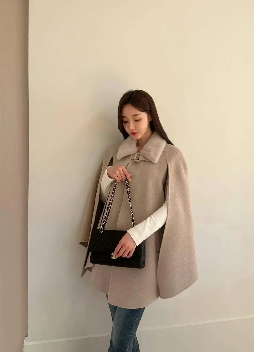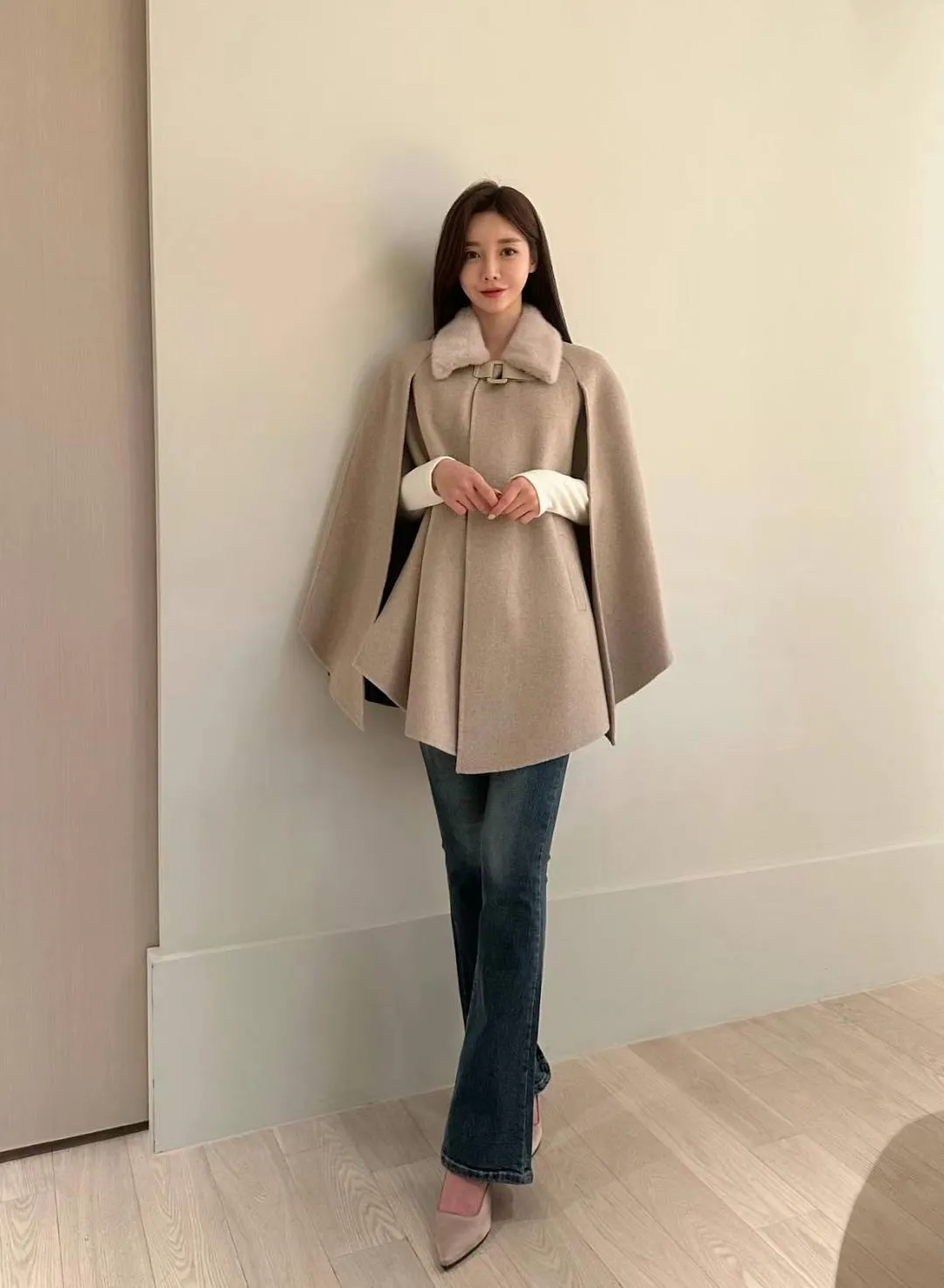 設計師品牌 氣質名媛高級手工製作handmade水貂毛領羊毛斗篷大衣外套