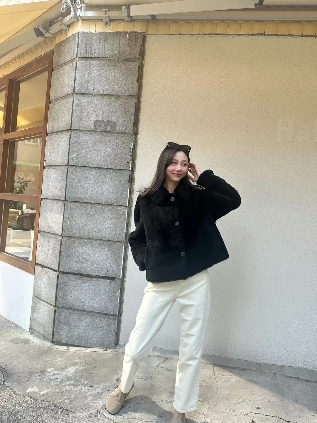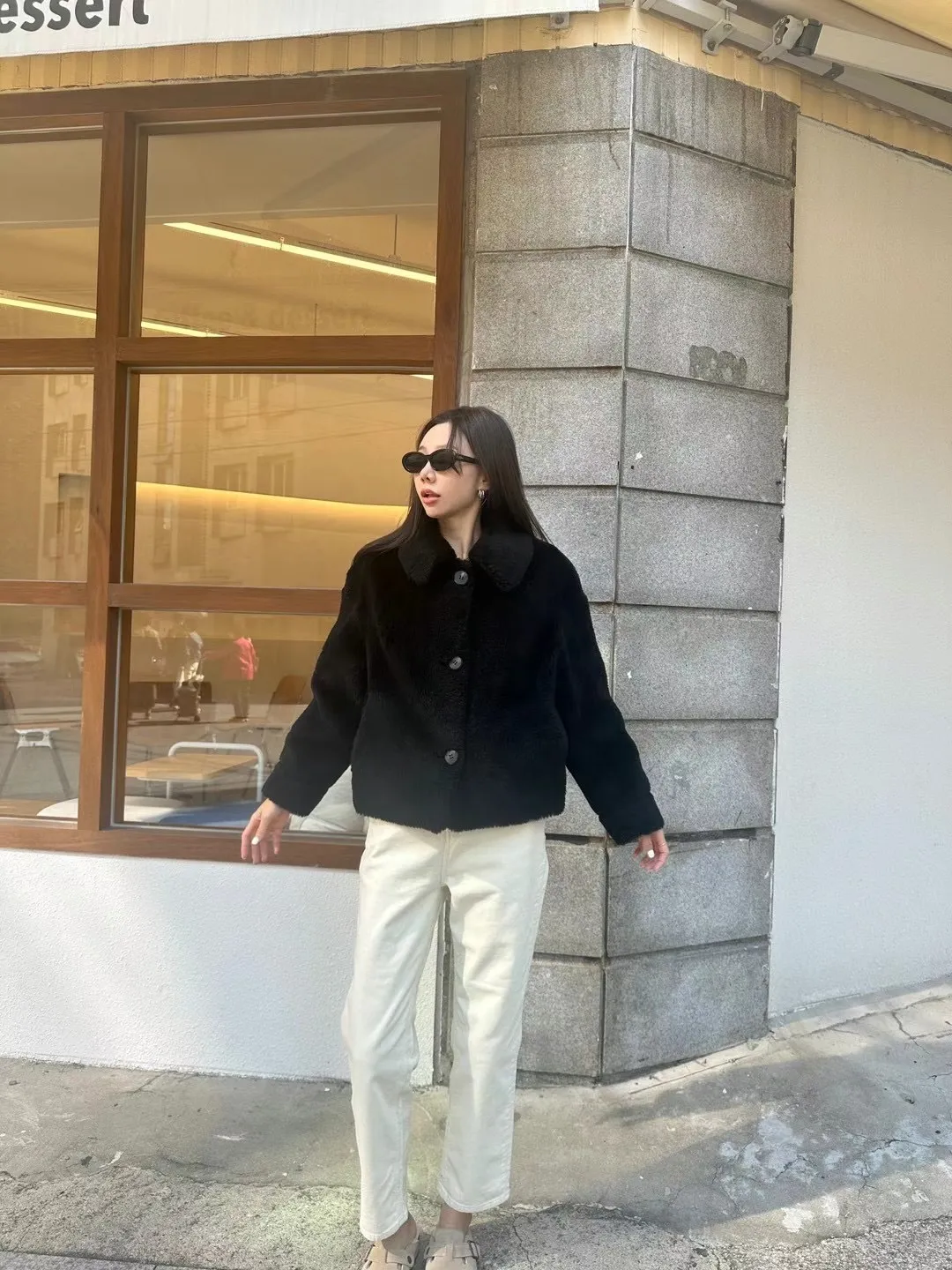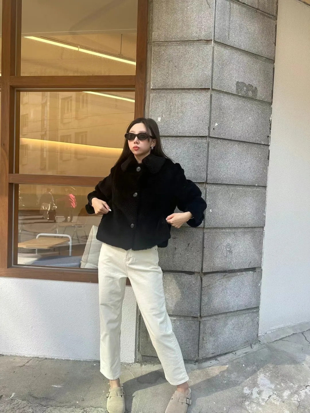 設計師品牌 簡約翻領羊毛100%羊羔毛外套