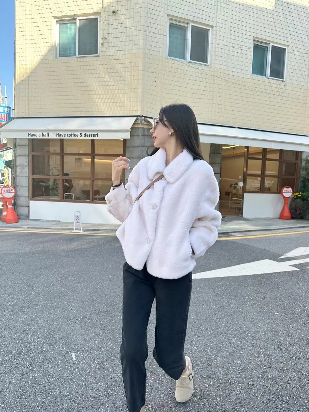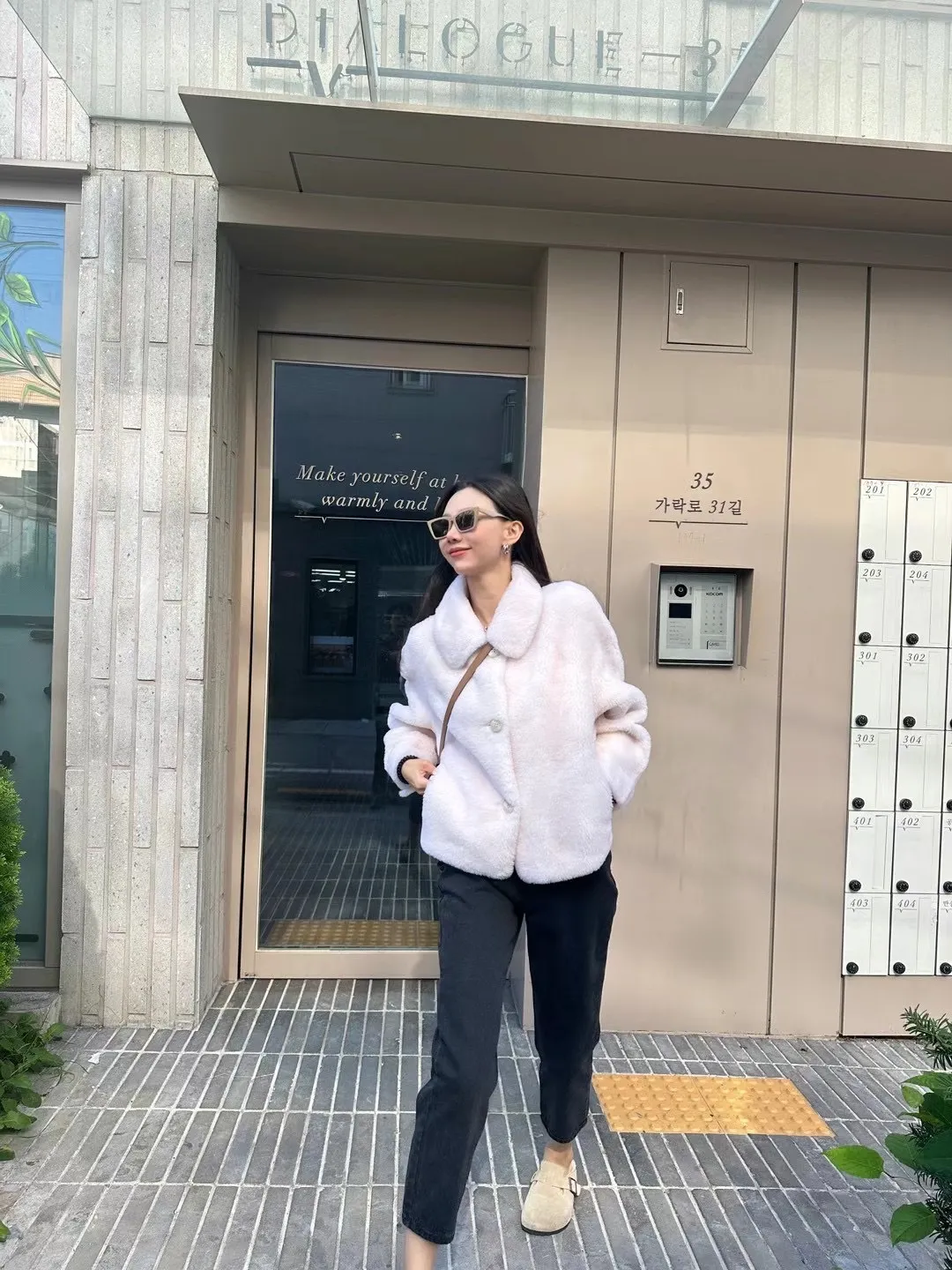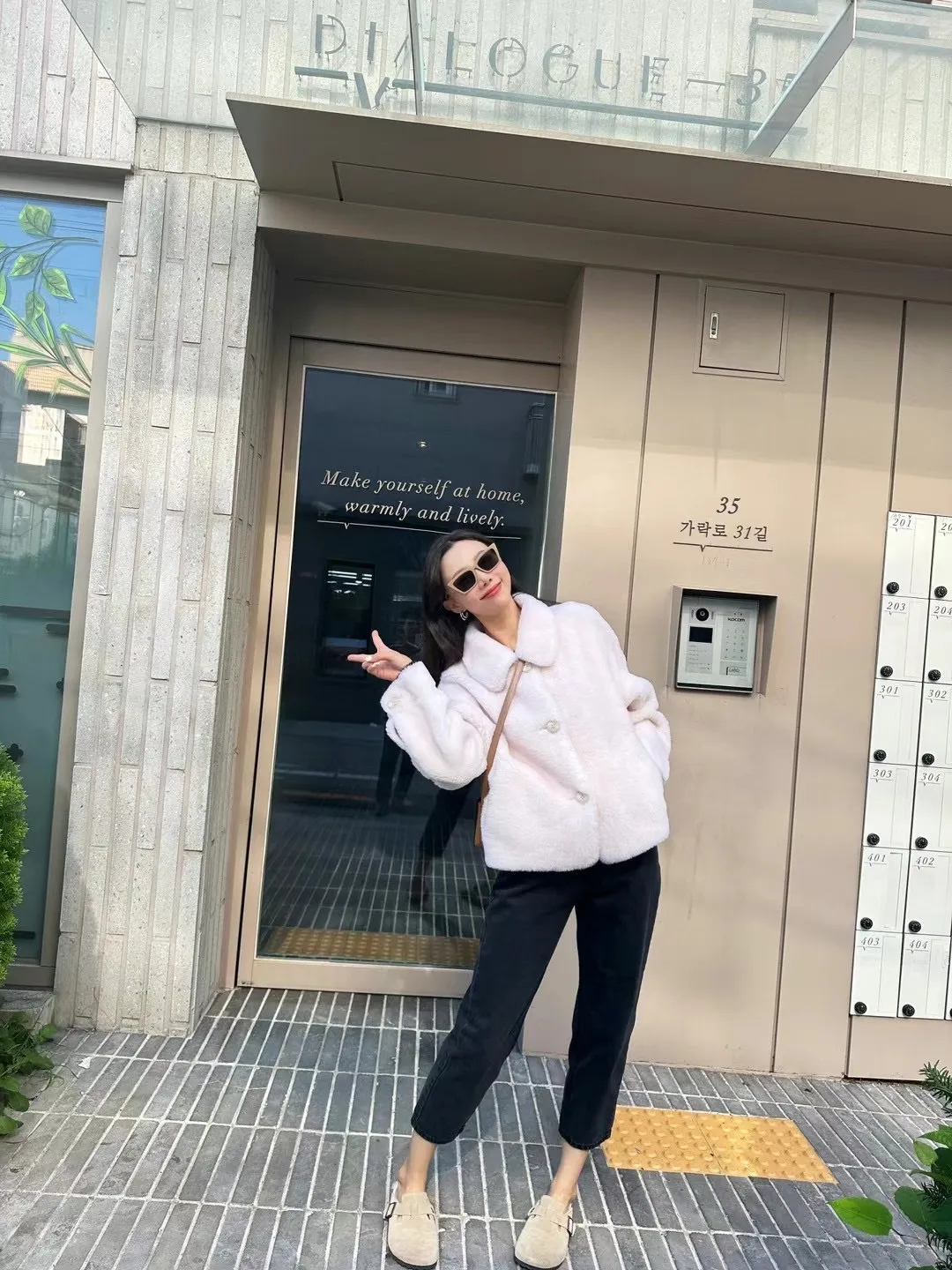 設計師品牌 簡約翻領羊毛100%羊羔毛外套