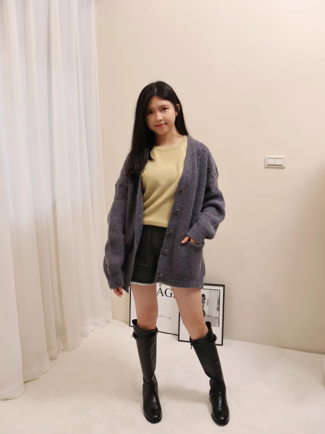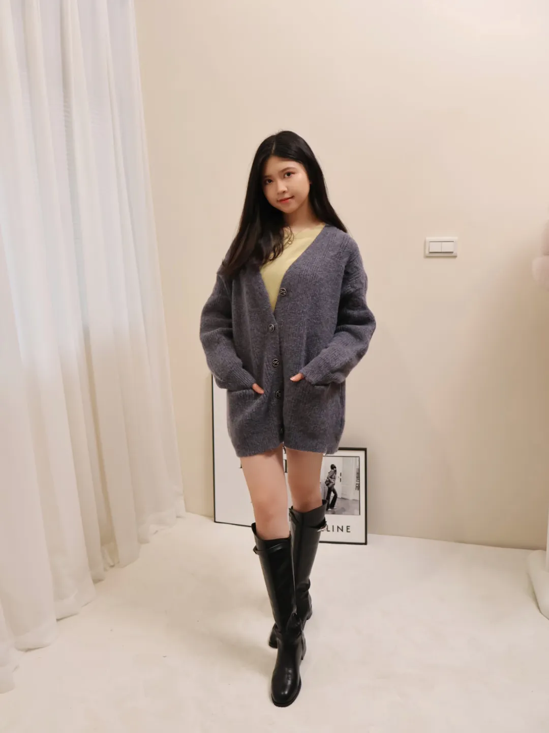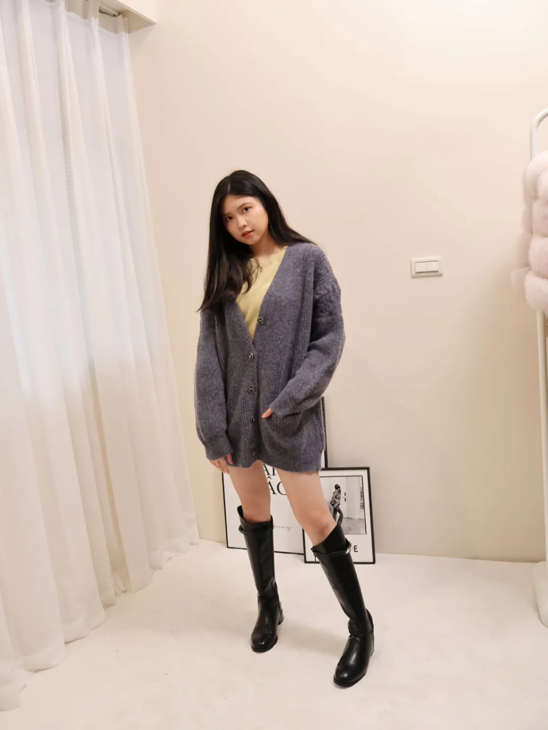 高品質V領羊毛寬鬆排釦針織開衫外套