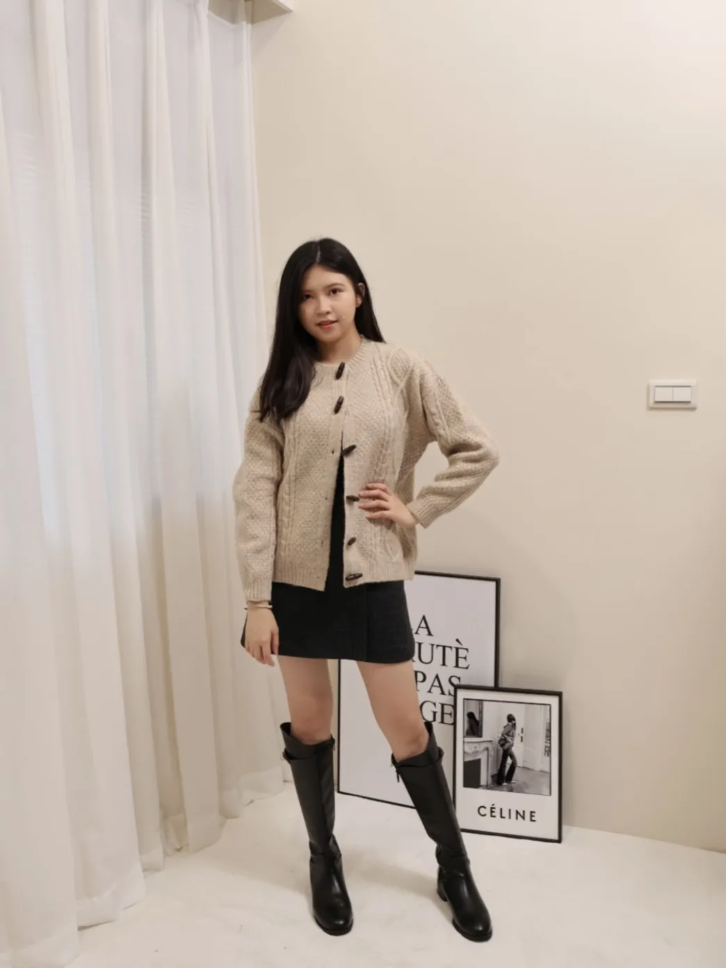 高質感 軟糯羊毛溫柔牛角釦針織開衫外套