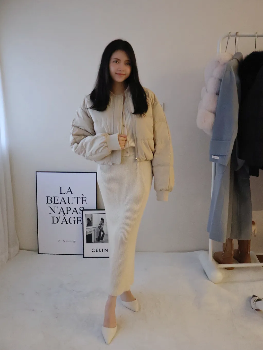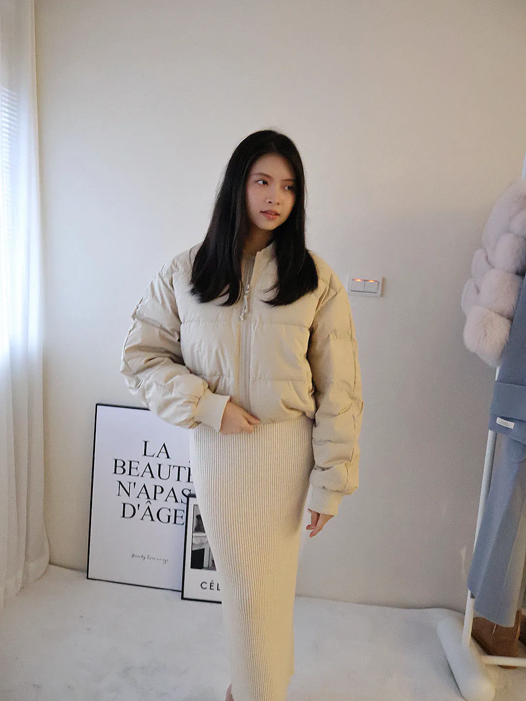 高端設計師品牌 鴨絨100%短款棒球領夾克羽絨外套