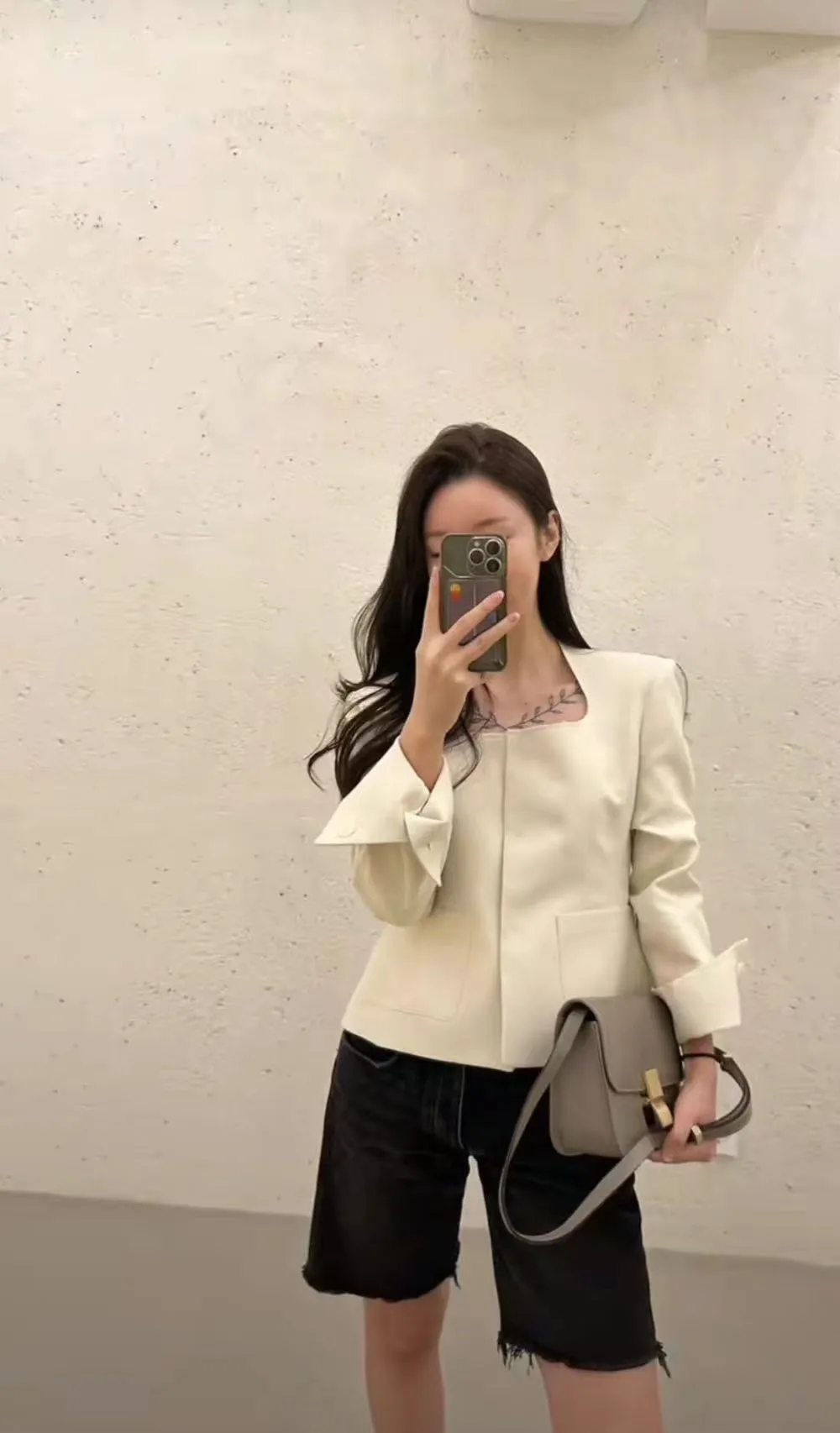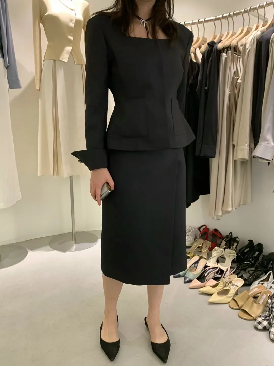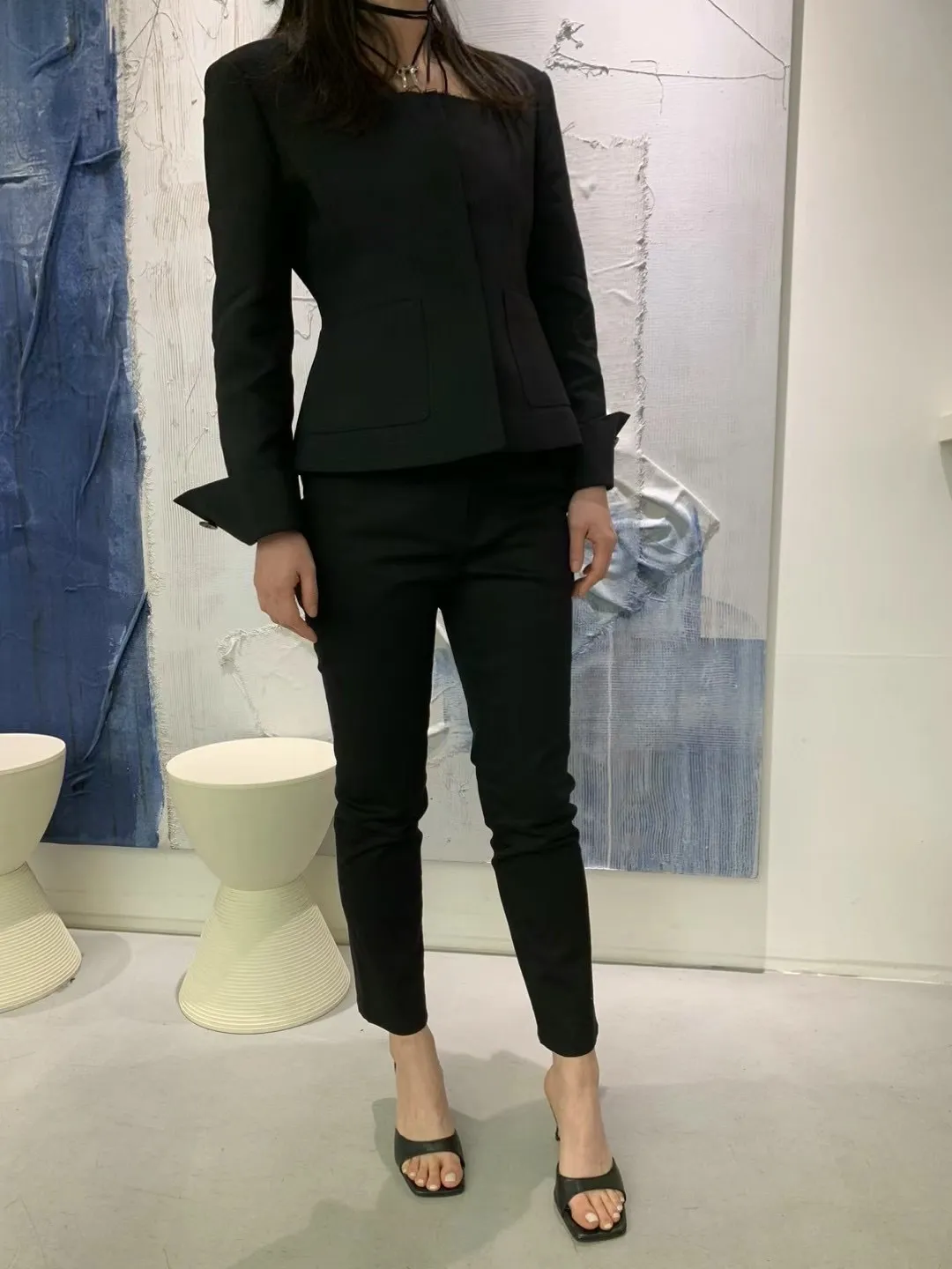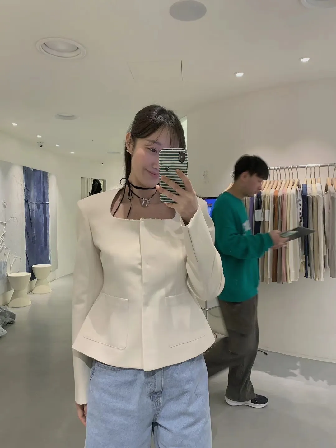 高端設計師品牌 毛邊剪裁收腰方領短西裝外套