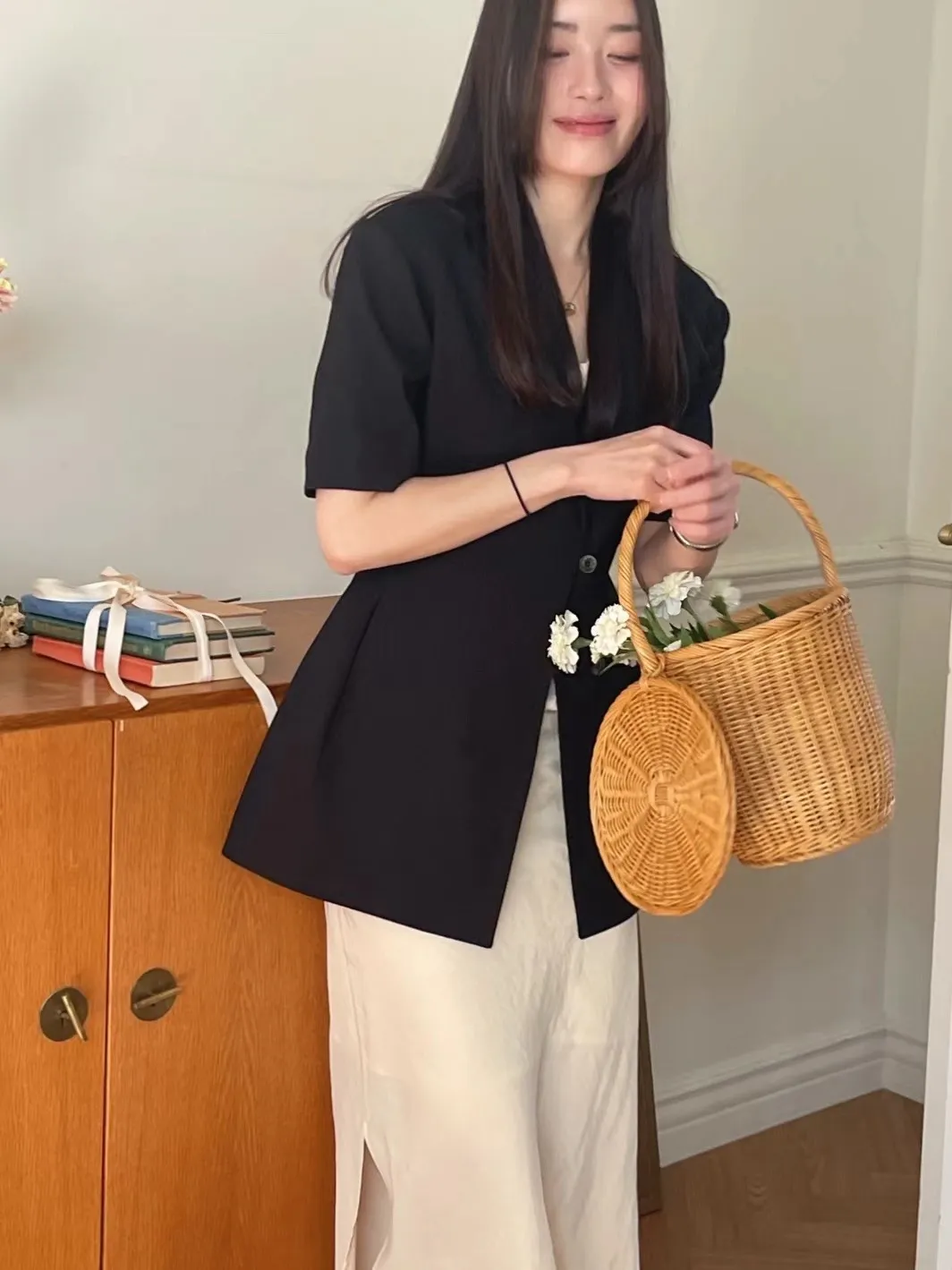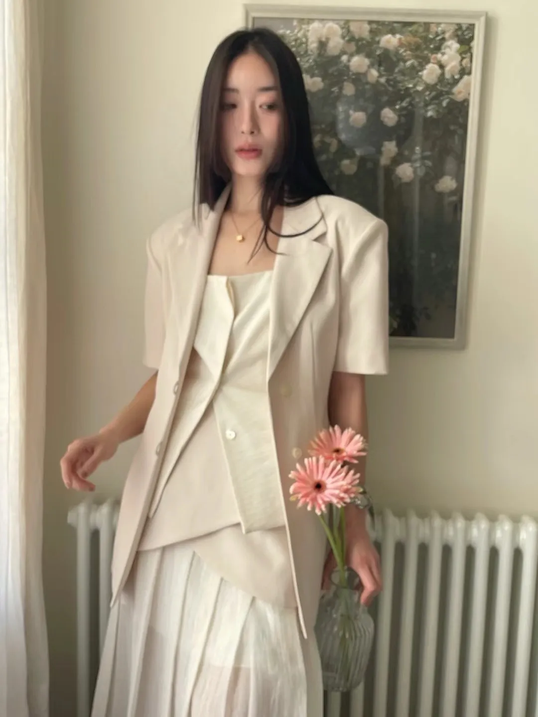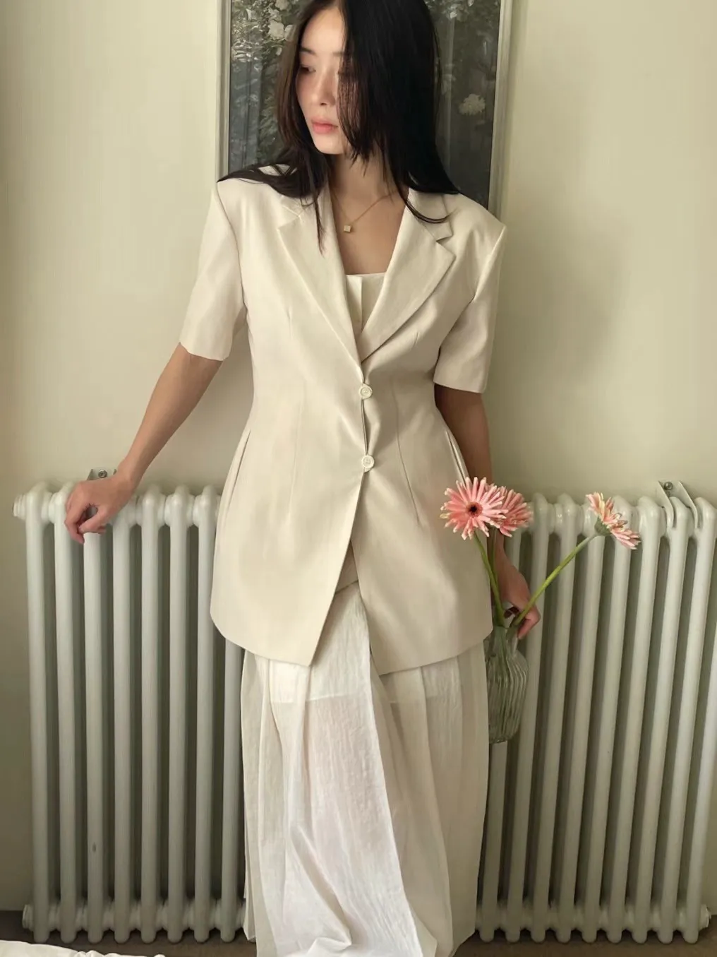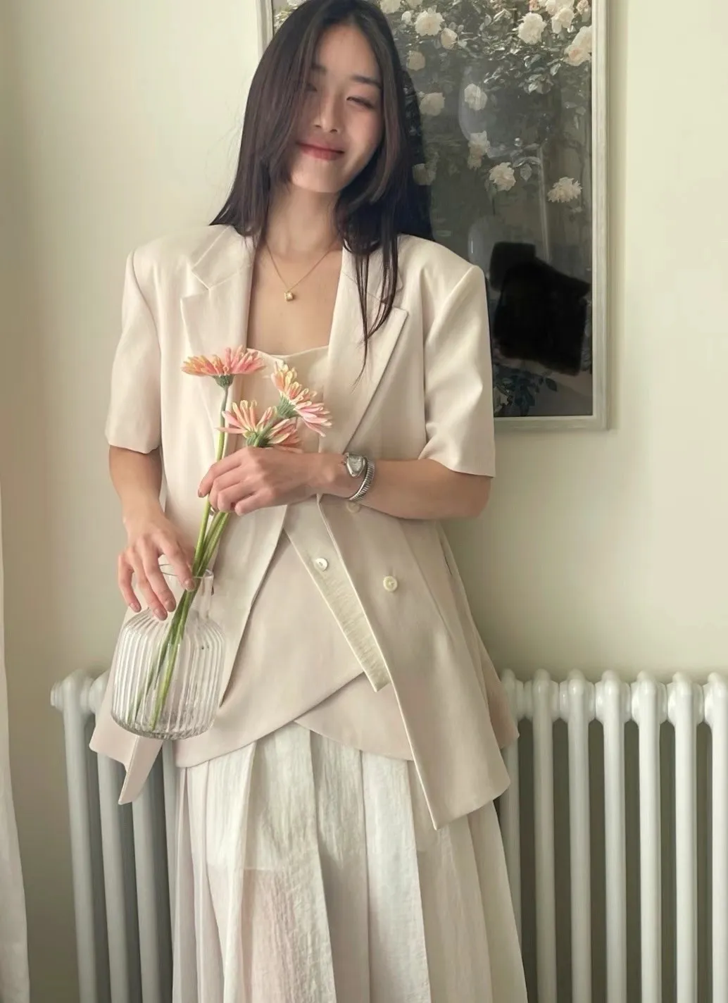 總長 72.5 / 74 肩寬 44 / 45 胸寬 44.5/ 45.5 袖長 25/ 26 袖寬 16/ 17