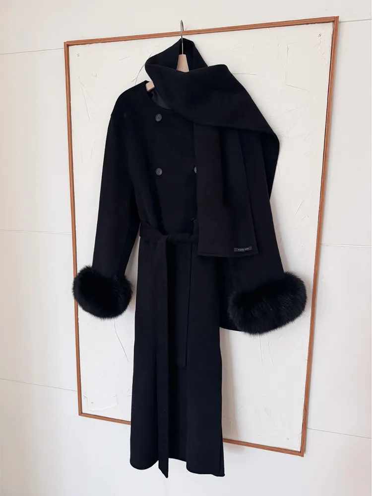 雙排扣袖子狐狸毛sagaFox Handmade手工大衣外套