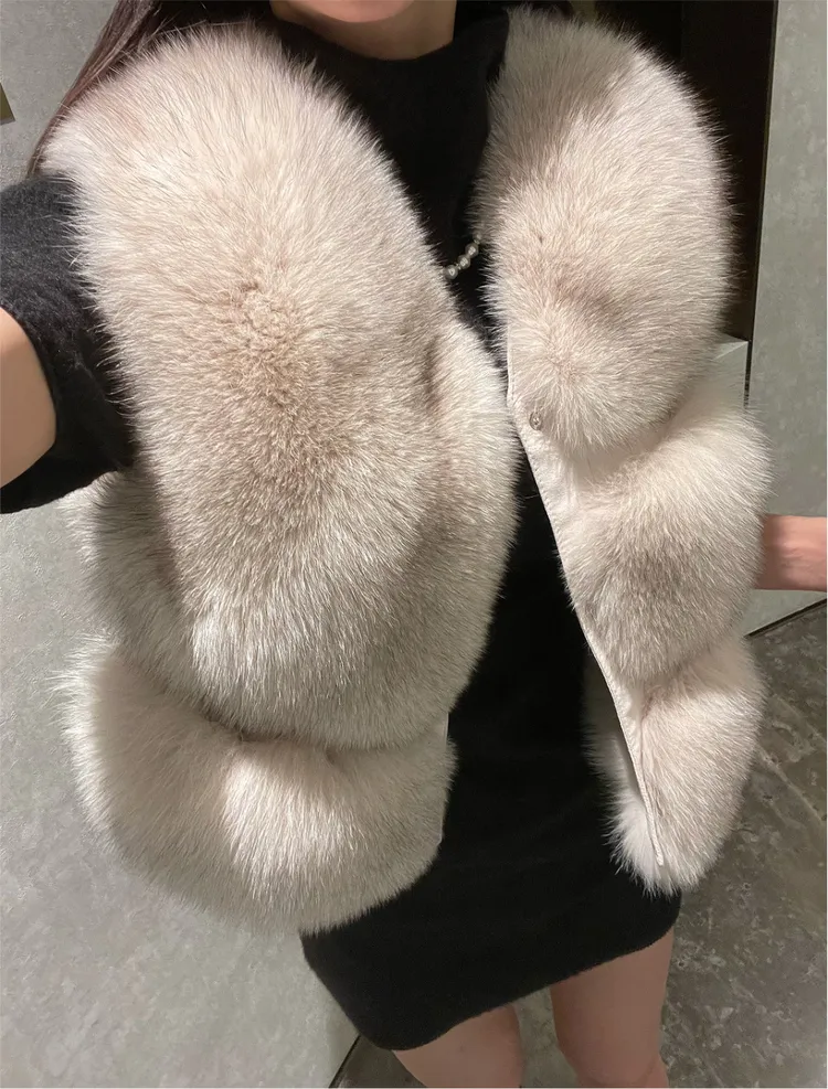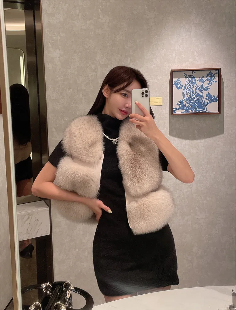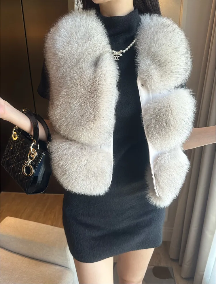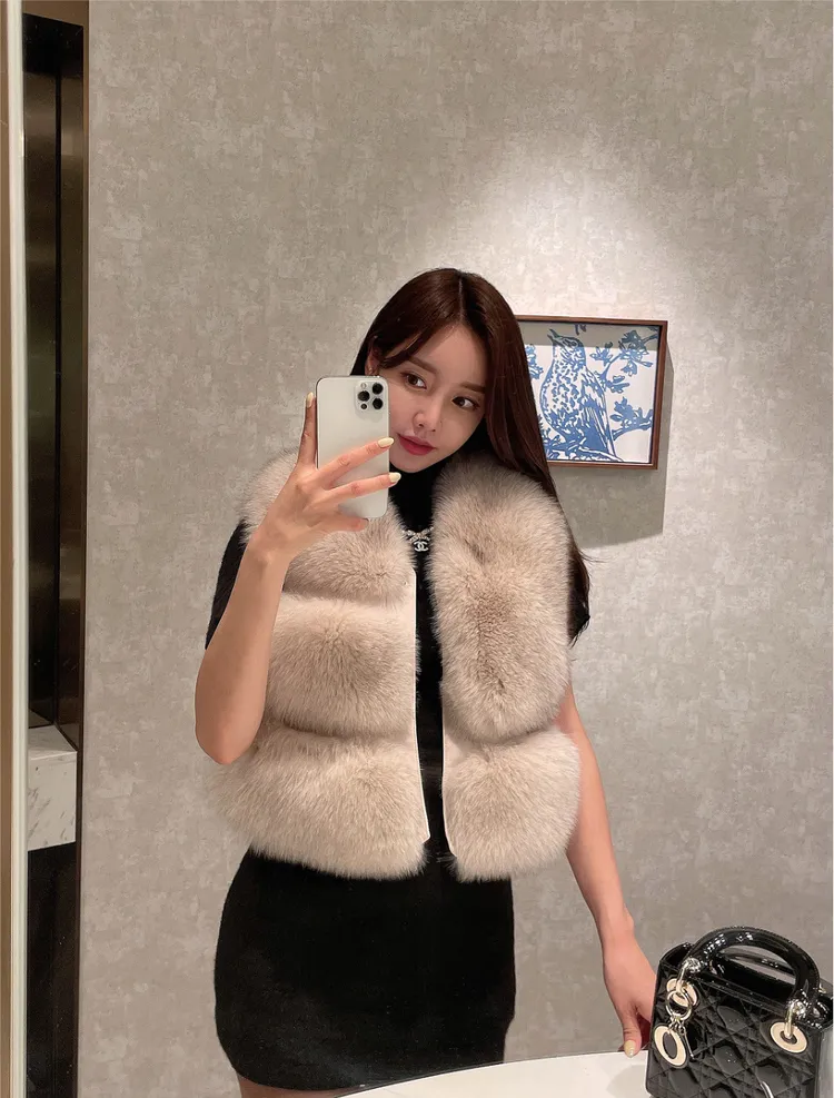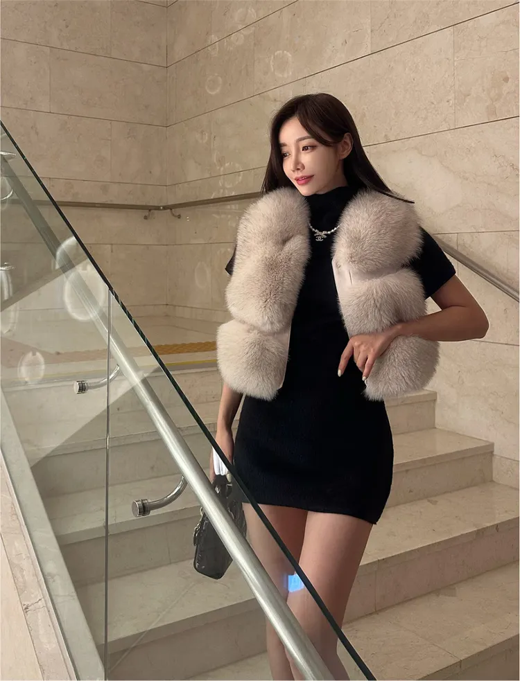 高級重磅名媛奢華Unbal 狐狸毛100%背心皮草外套