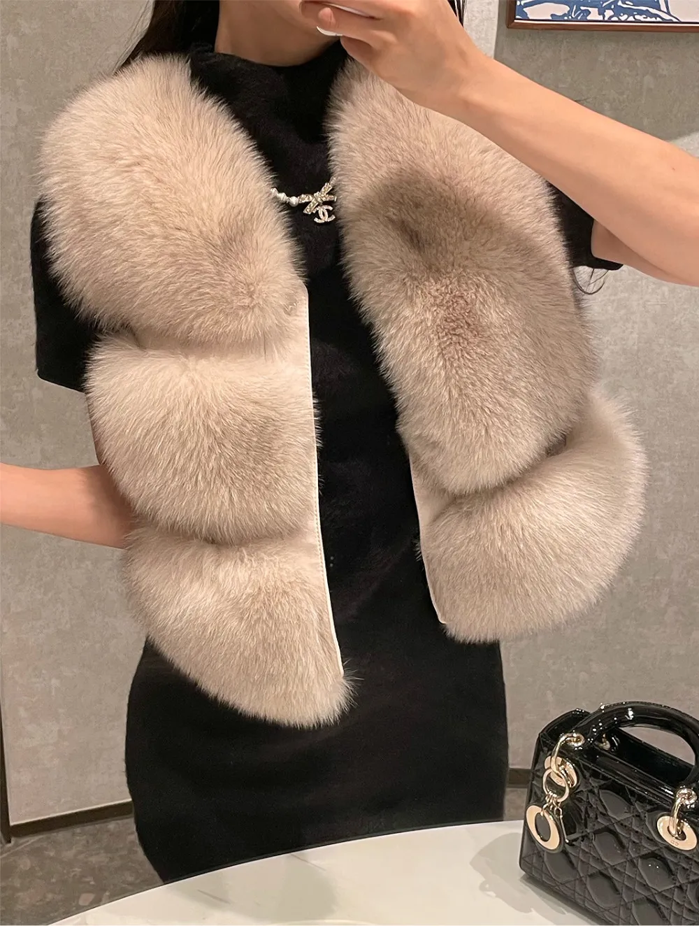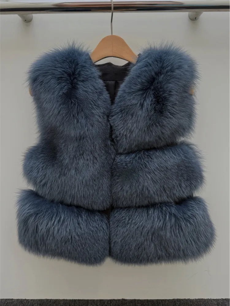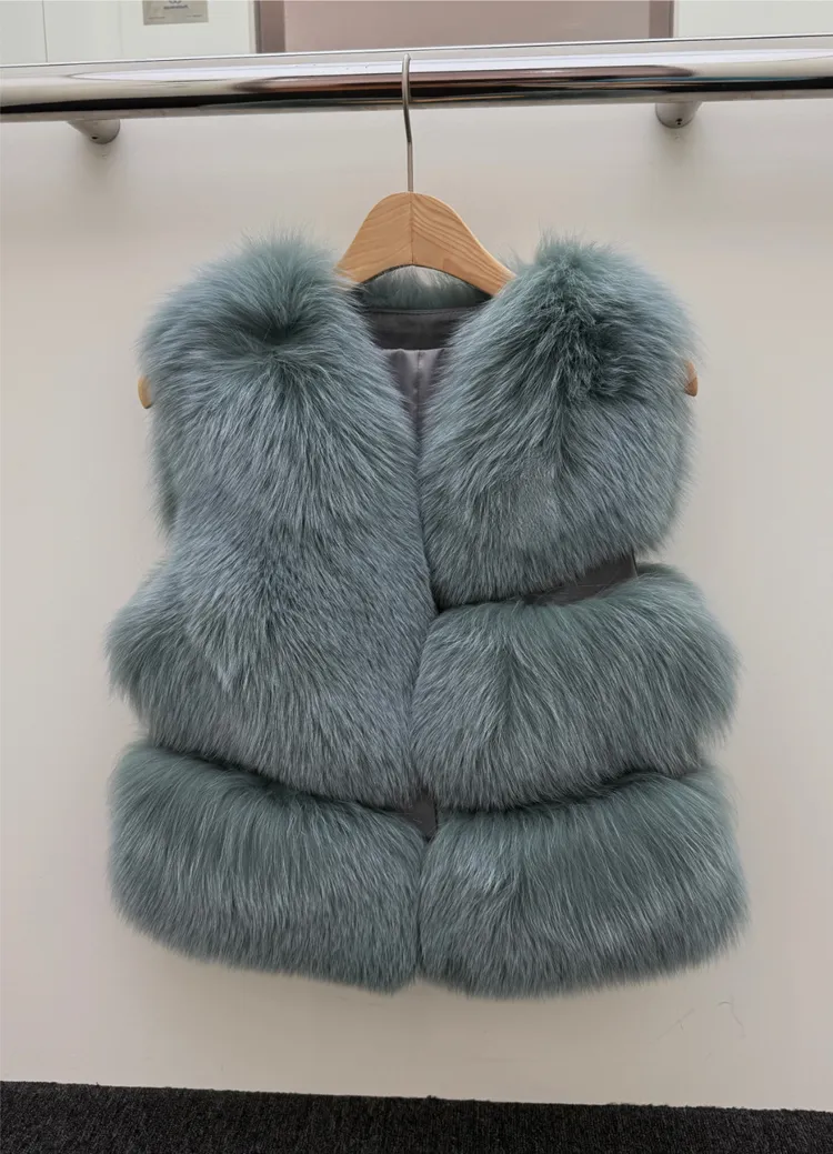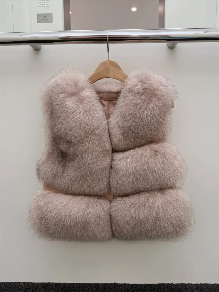 高級重磅名媛奢華Unbal 狐狸毛100%背心皮草外套