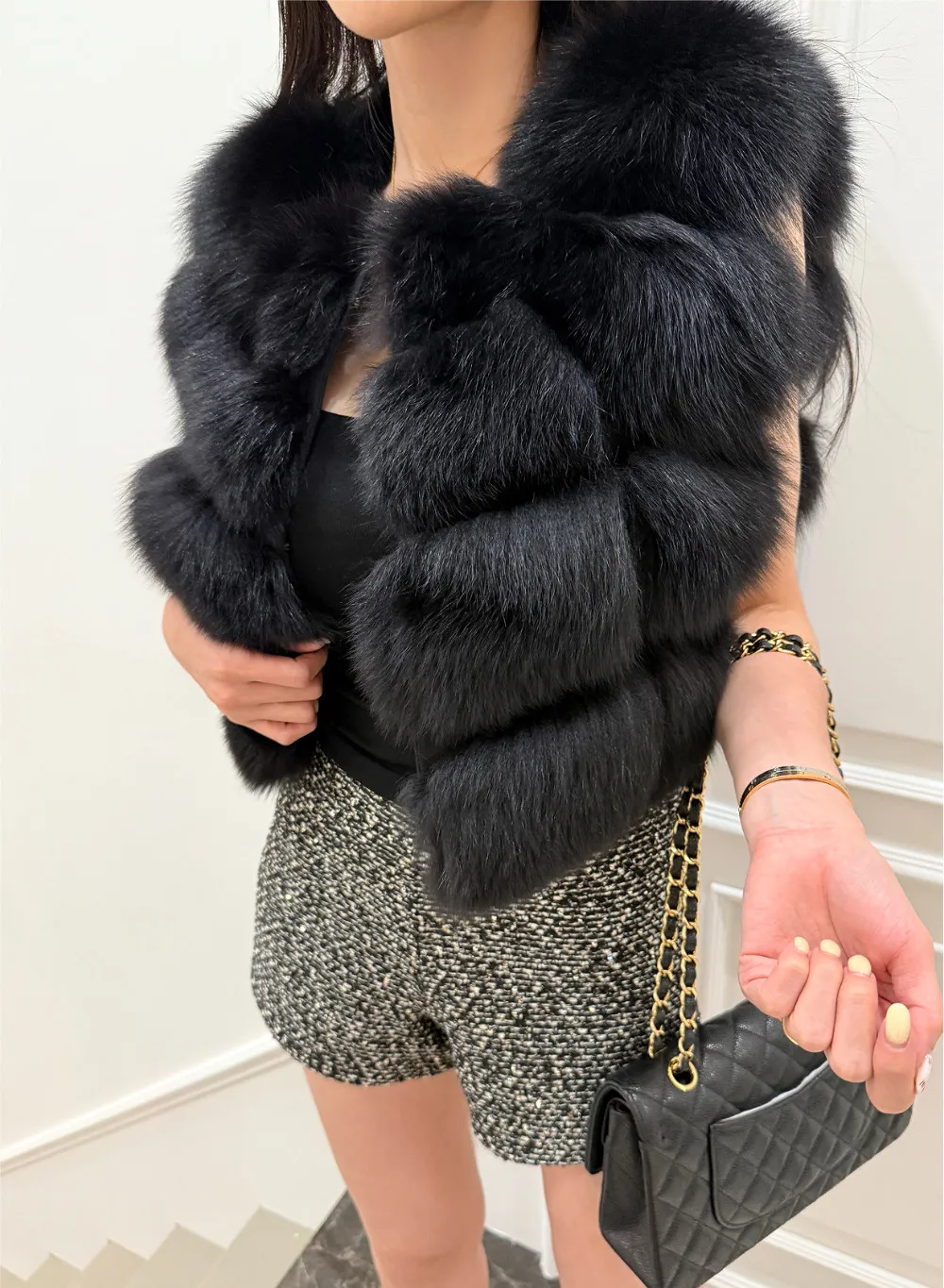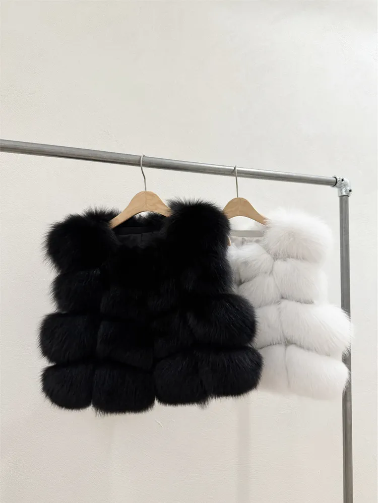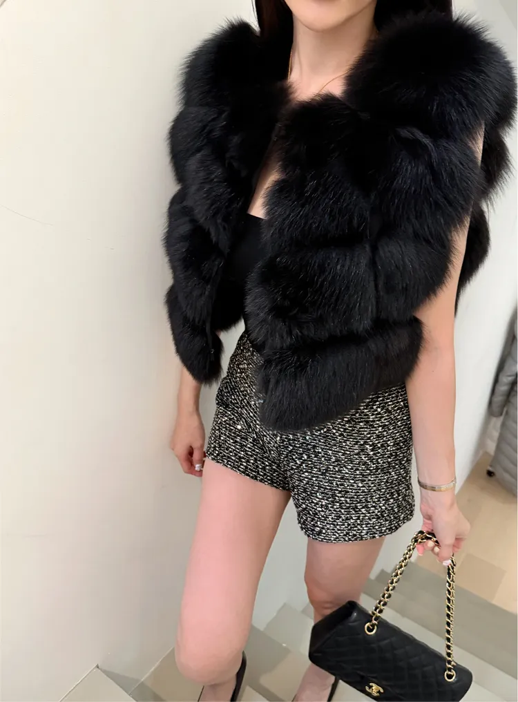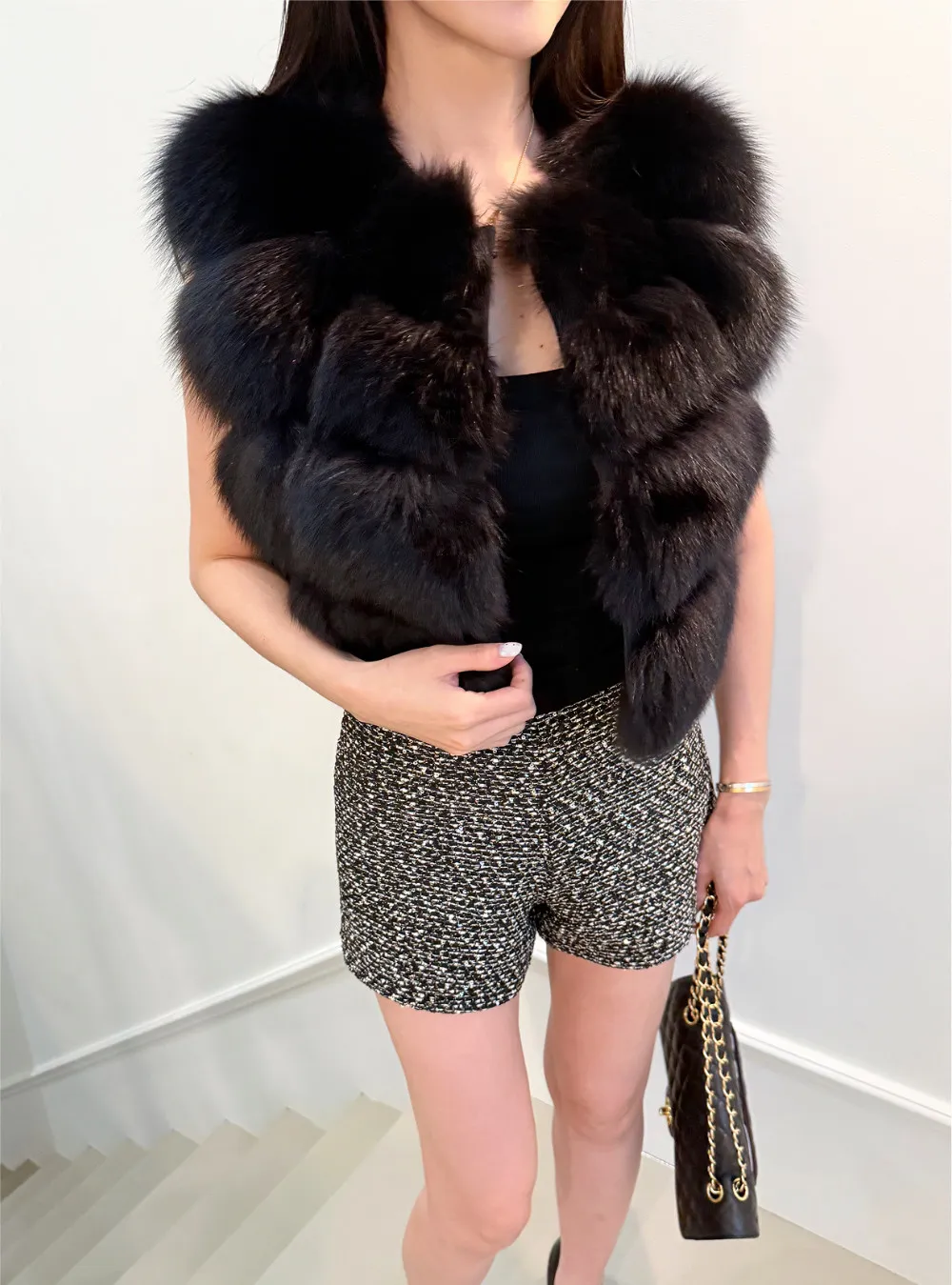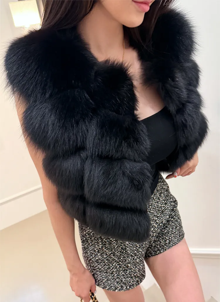 高級感奢華SAGA 狐狸毛100%暗影短版皮草背心