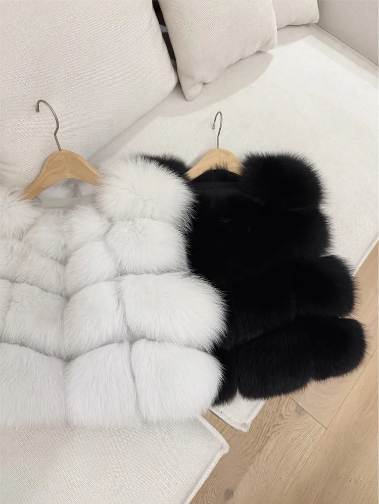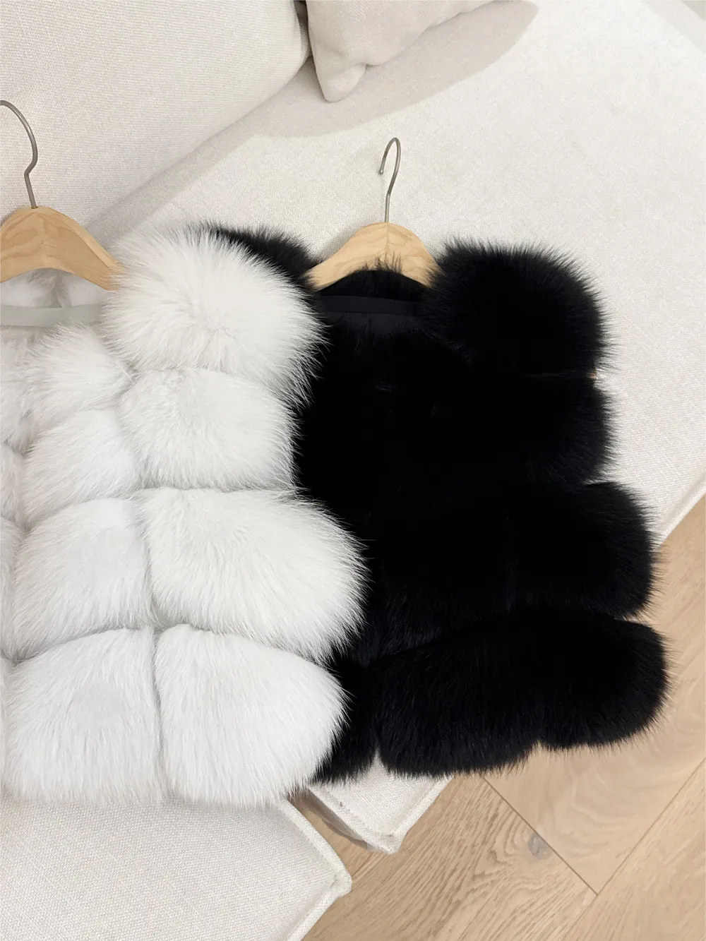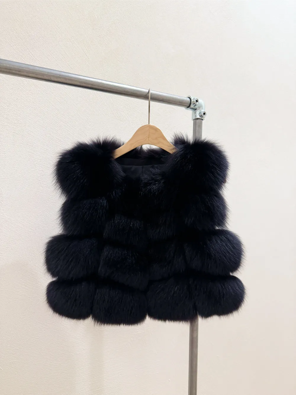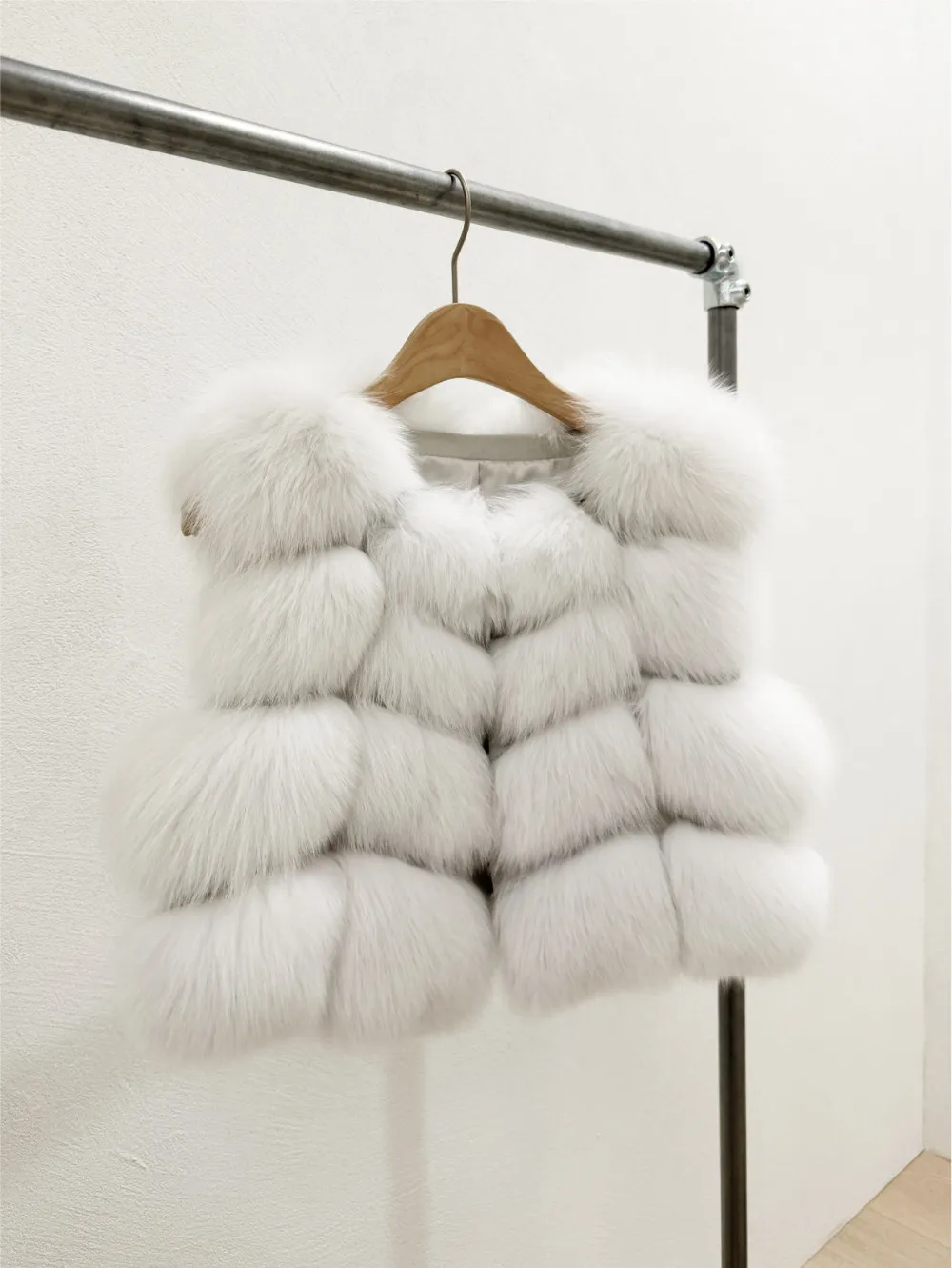 高級感奢華SAGA 狐狸毛100%暗影短版皮草背心