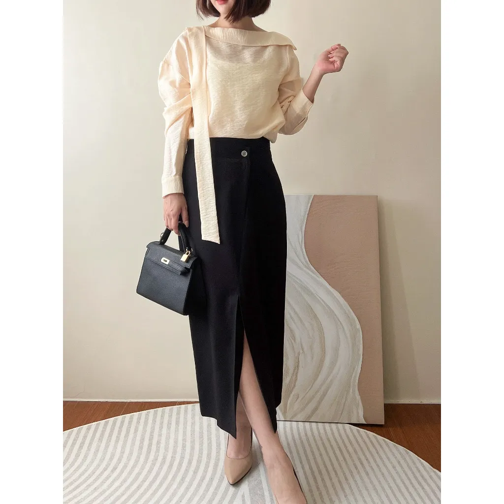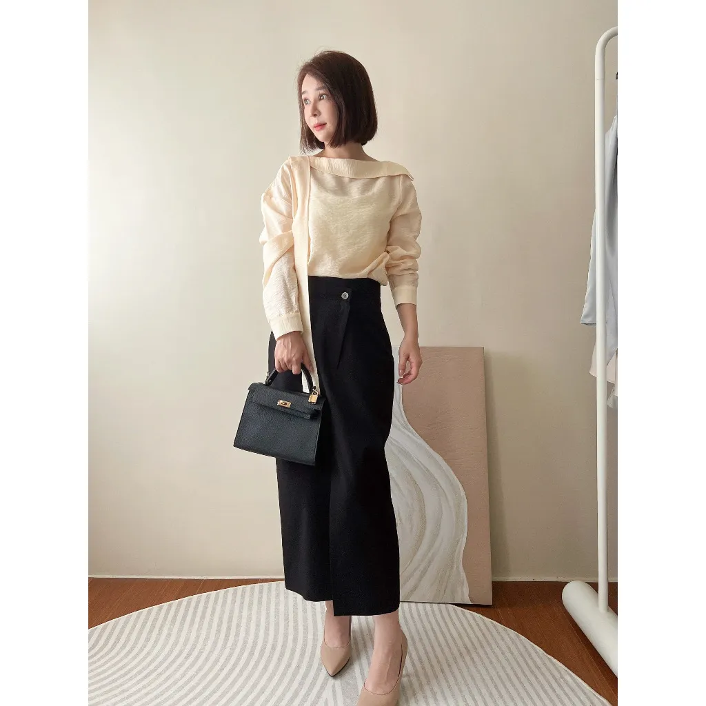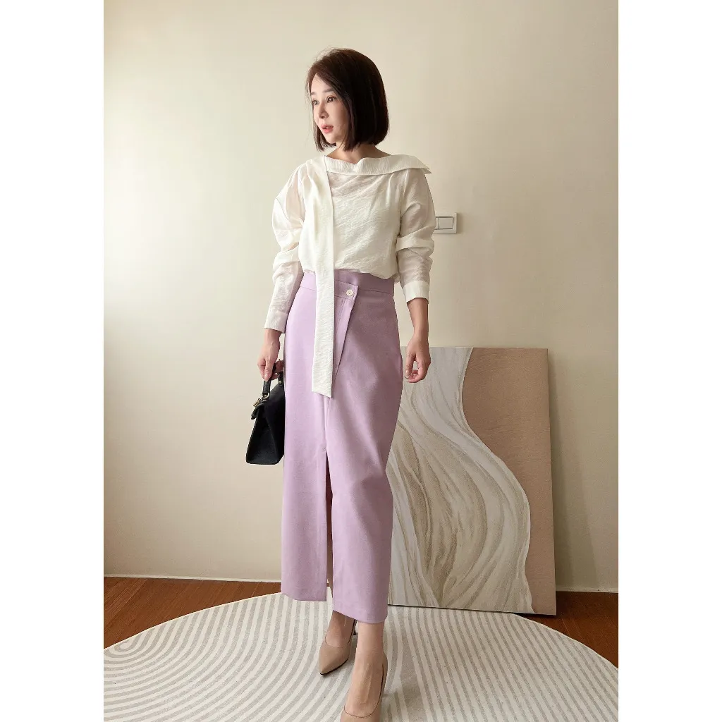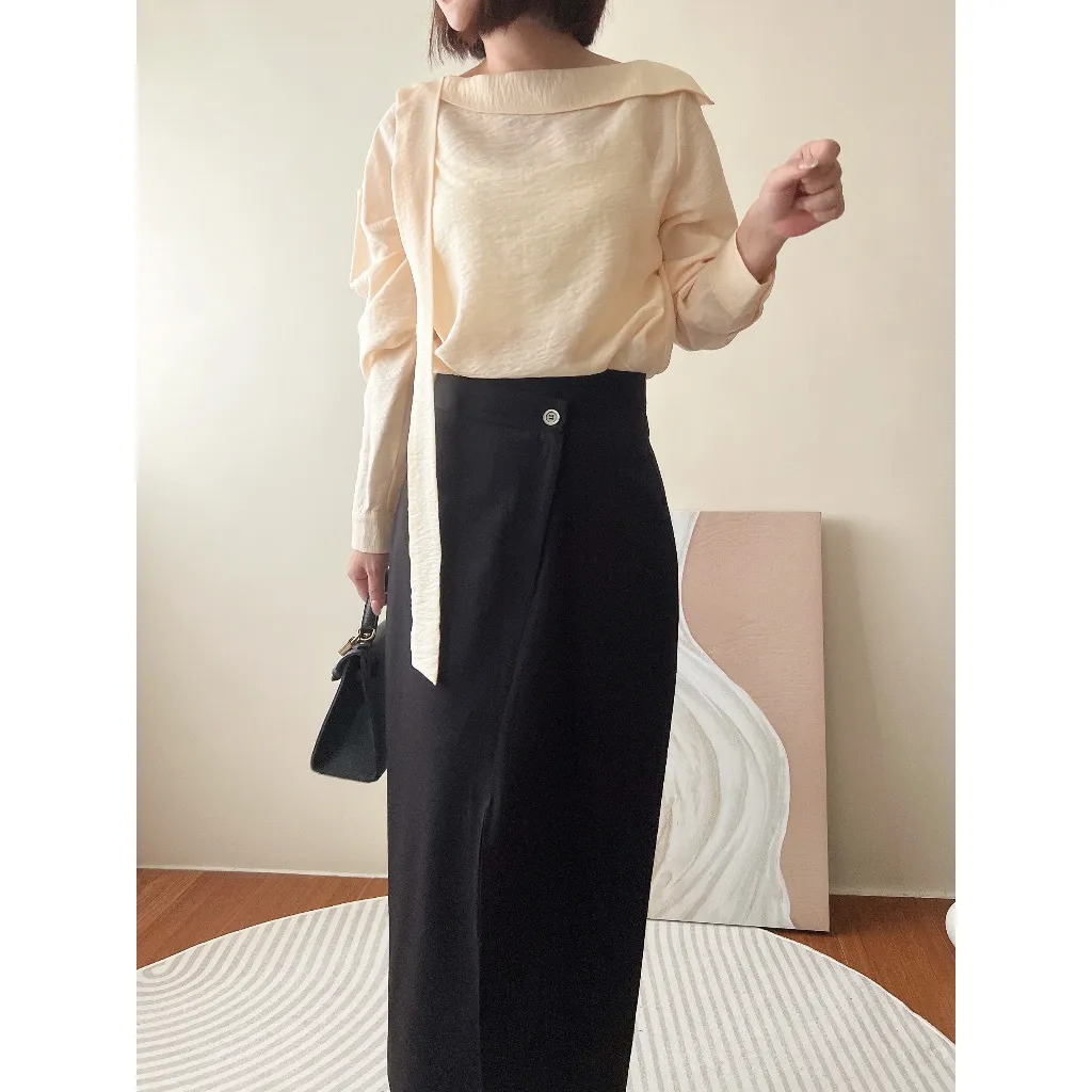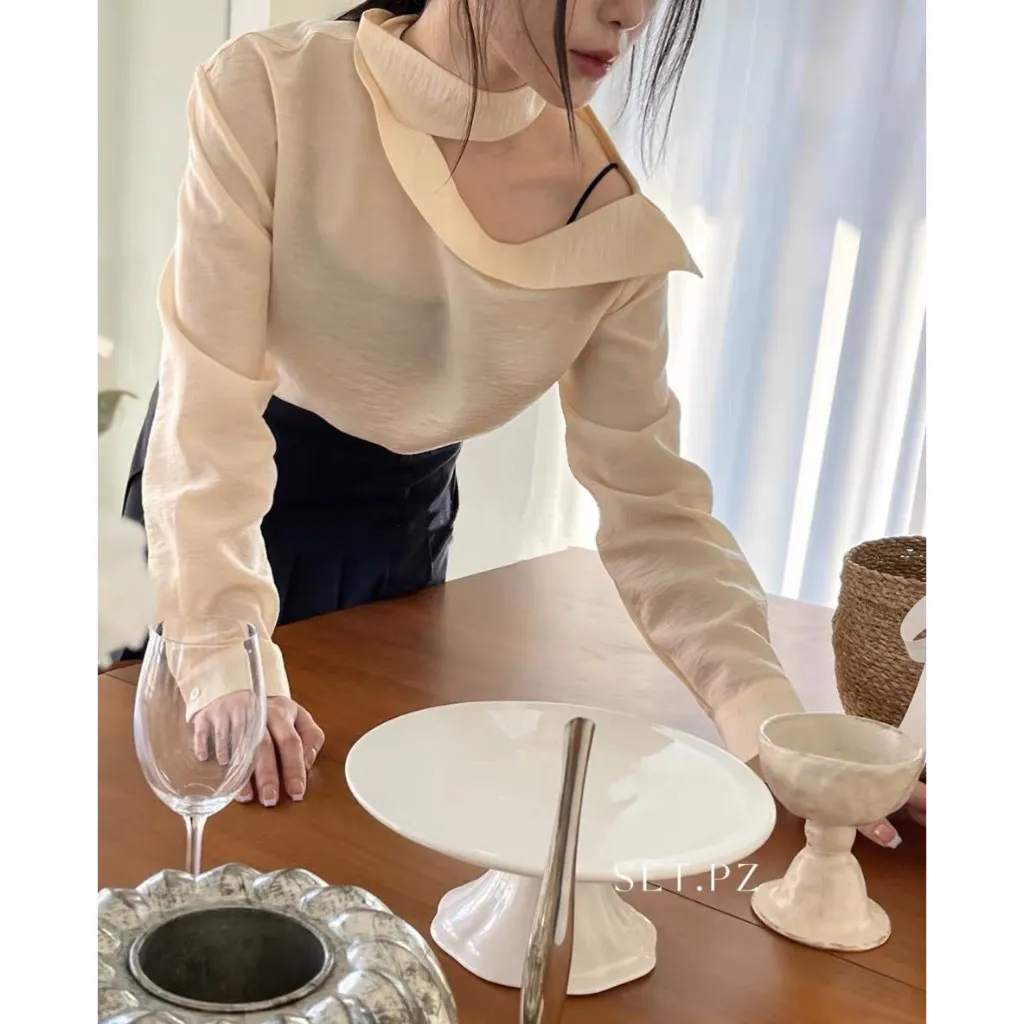 天絲棉金秘書氣質設計感斜肩襯衫 OL通勤必備💕