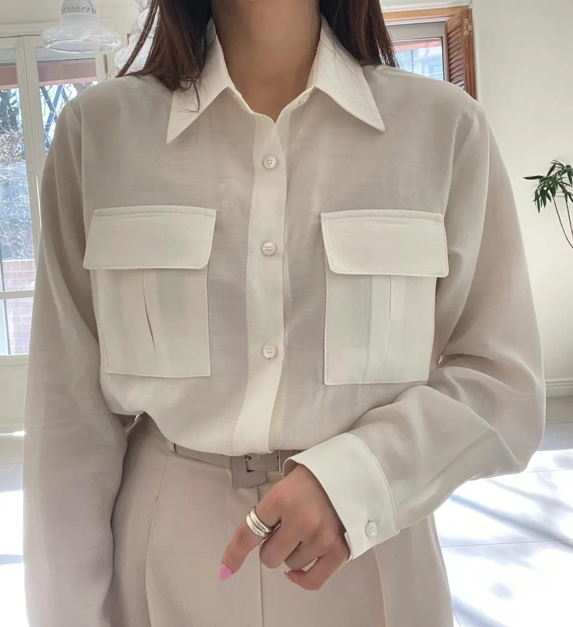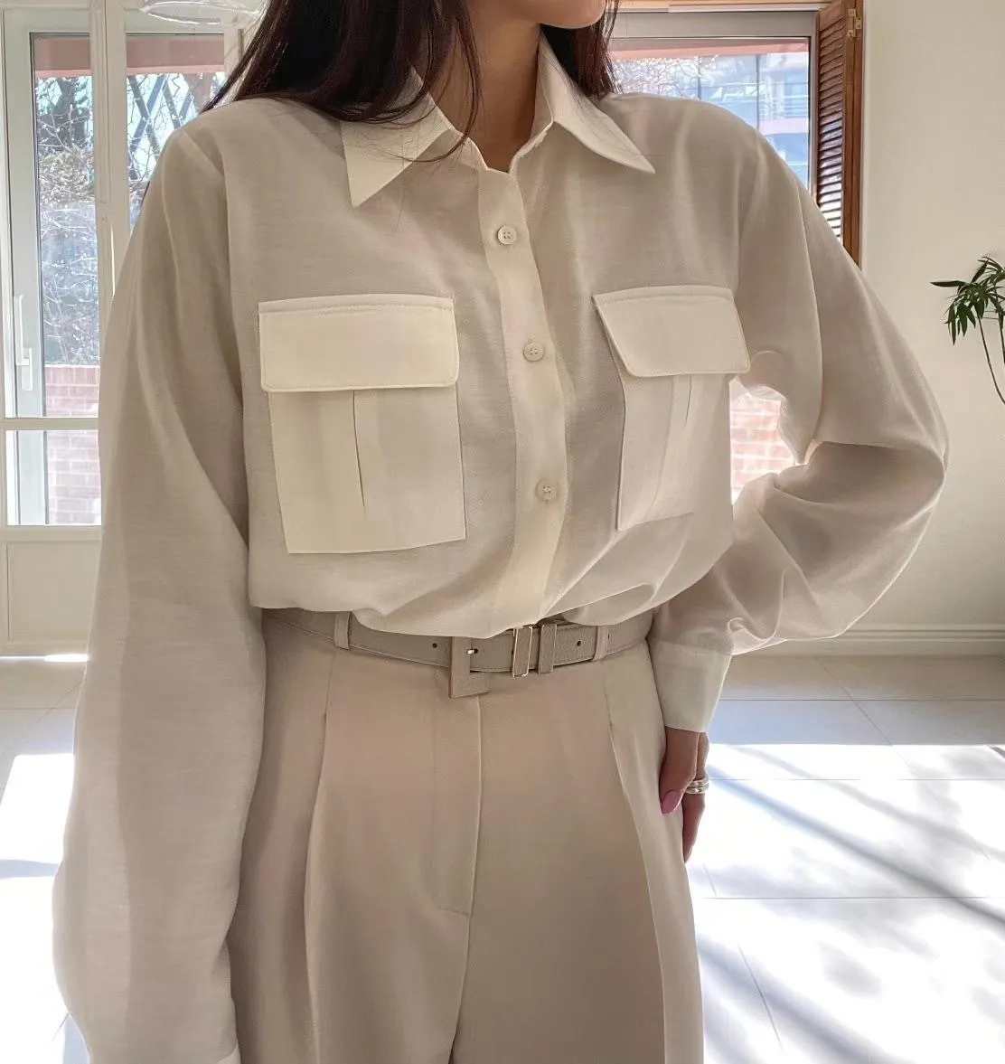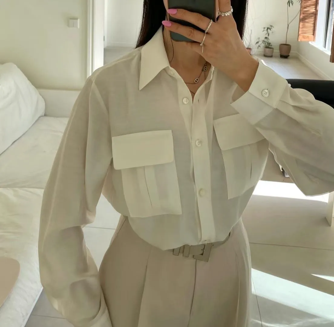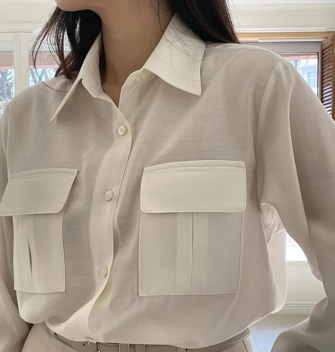 設計款OL氣質雙口袋襯衫 輕薄透氣 上班通勤必備