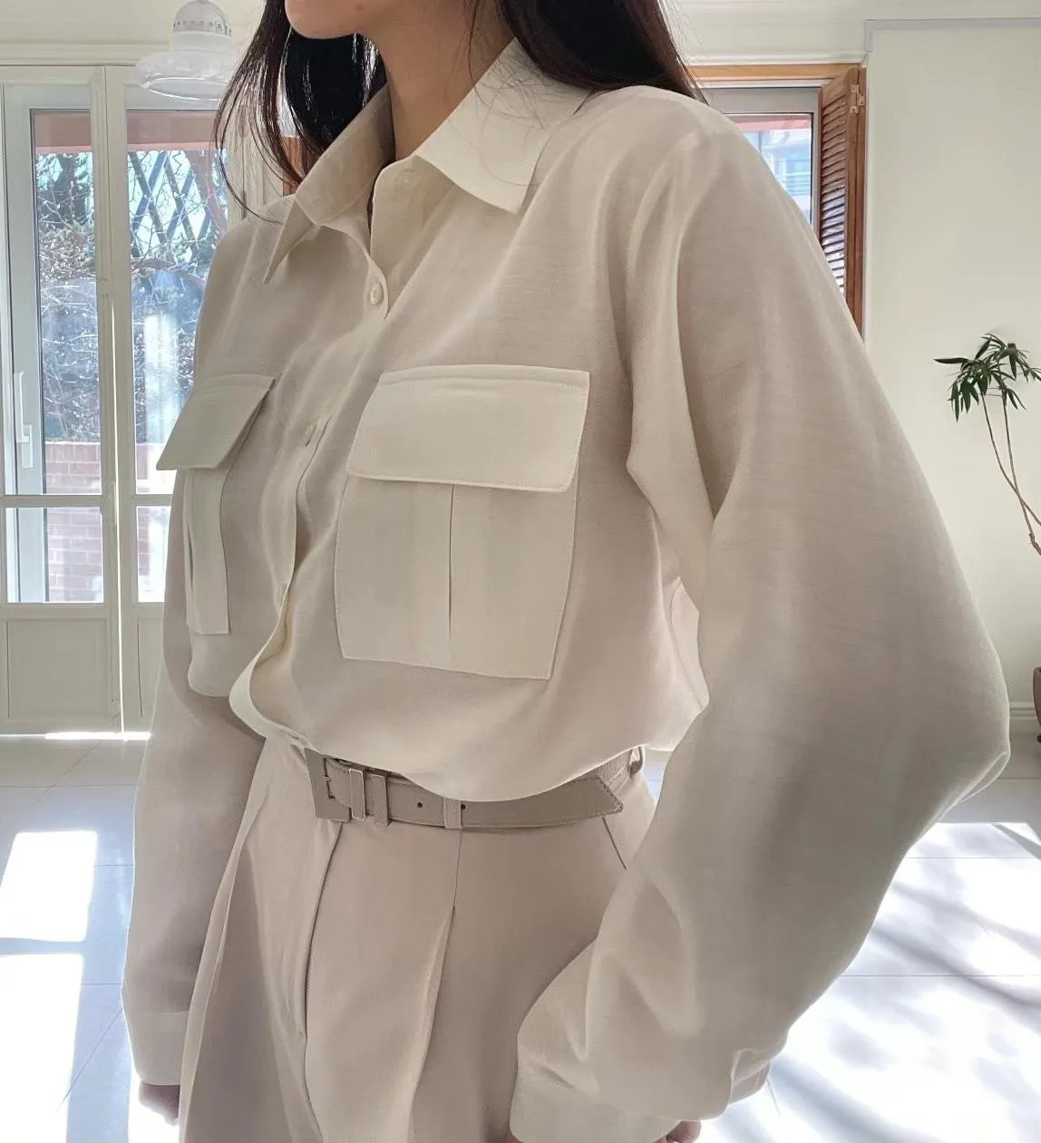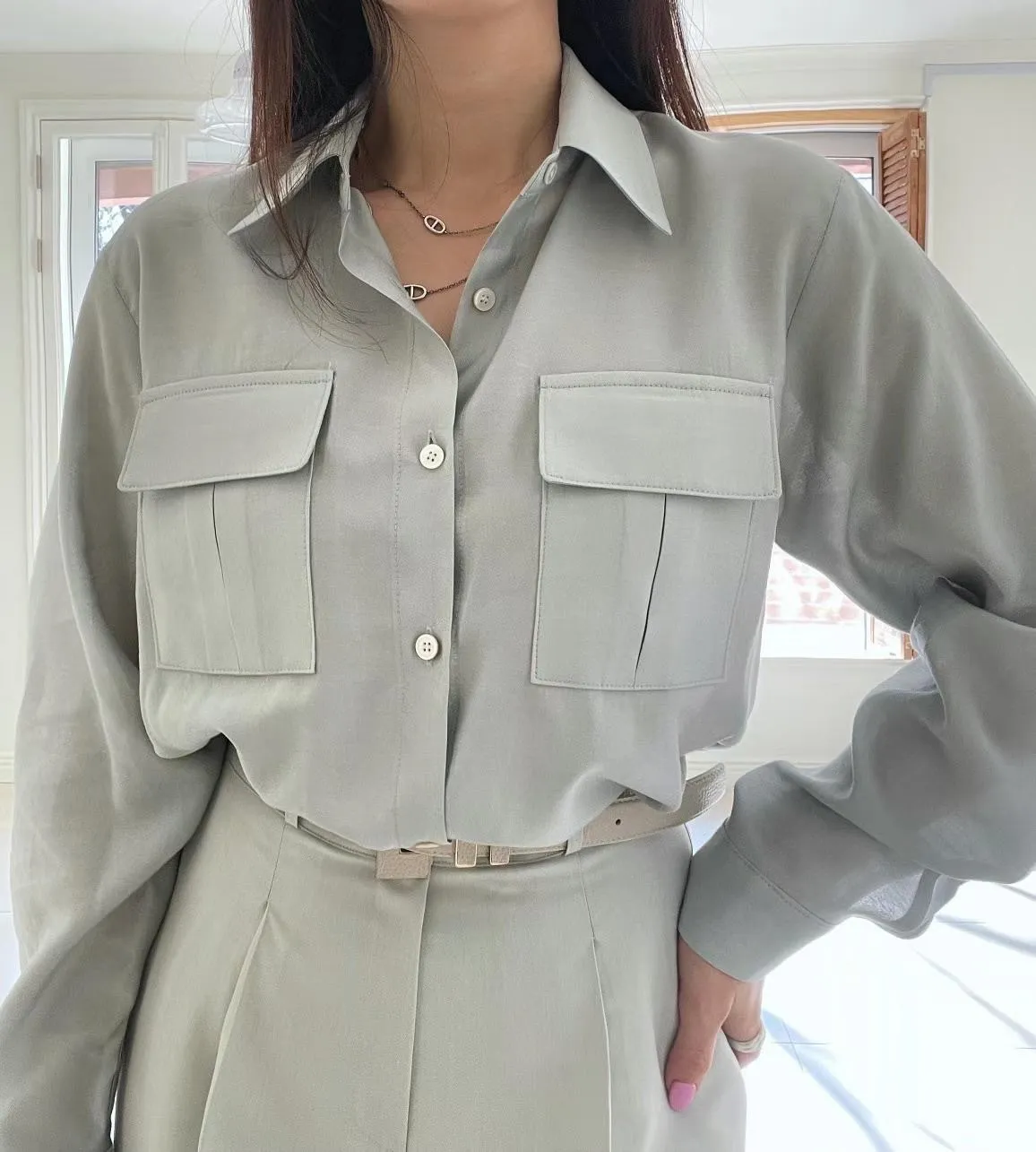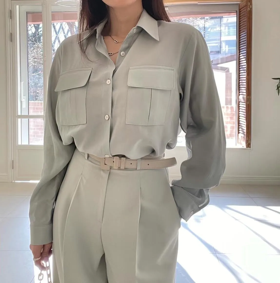 設計款OL氣質雙口袋襯衫 輕薄透氣 上班通勤必備
