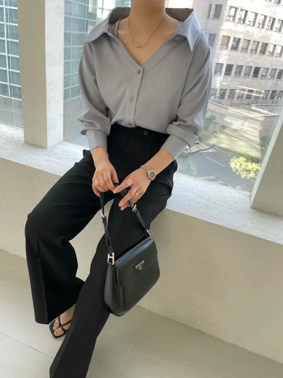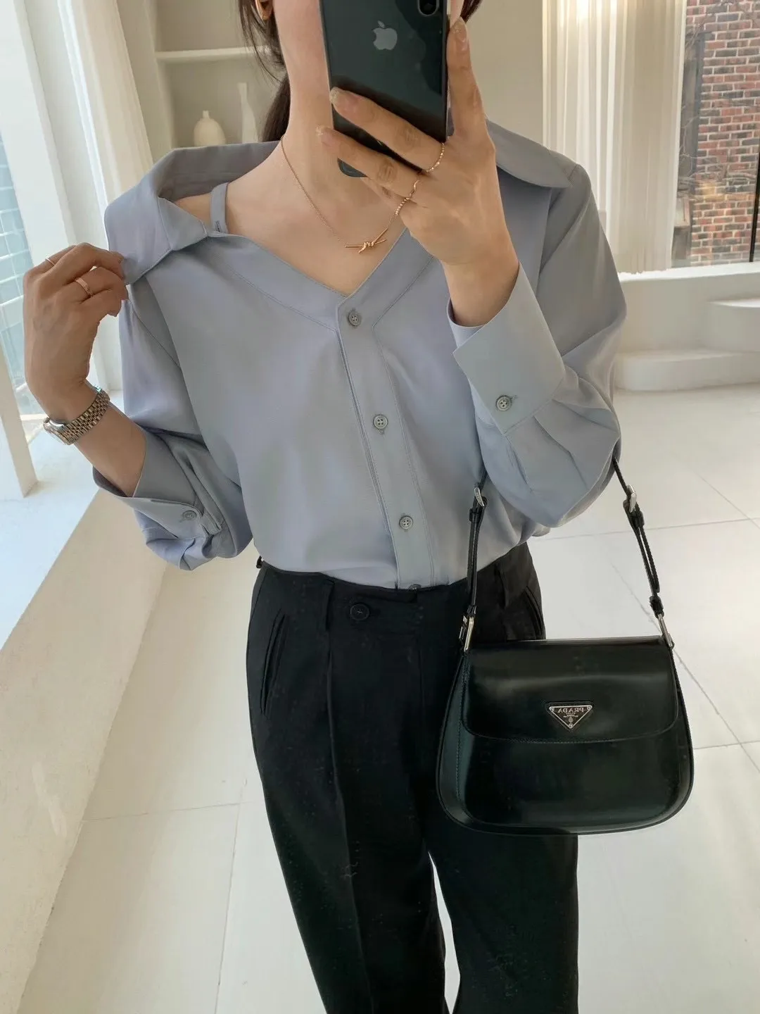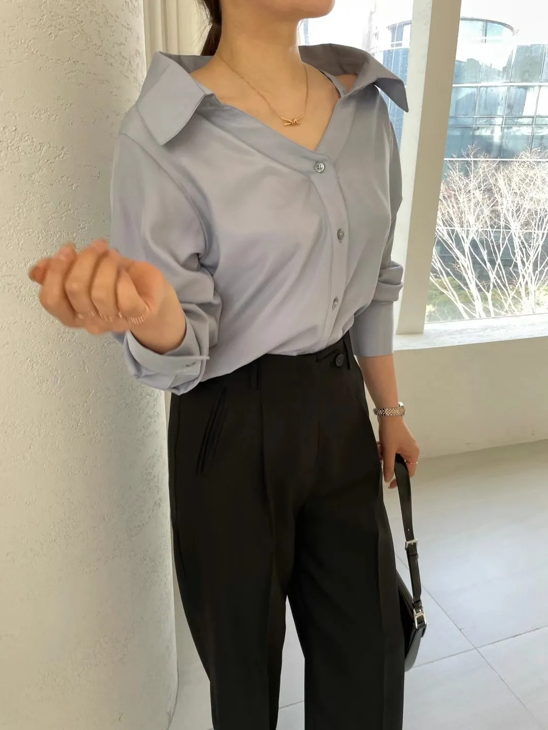 很有設計感的襯衫,肩帶可以調的有設計洞