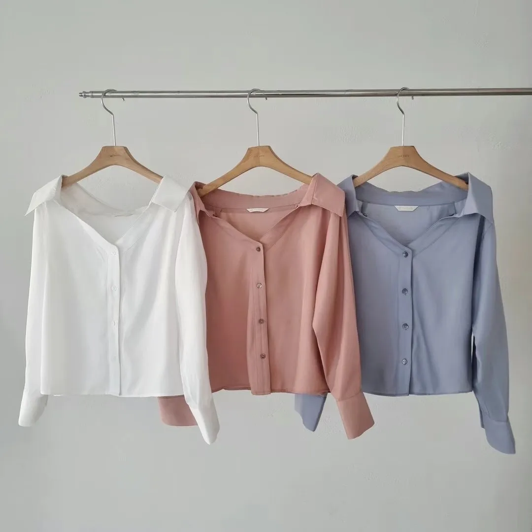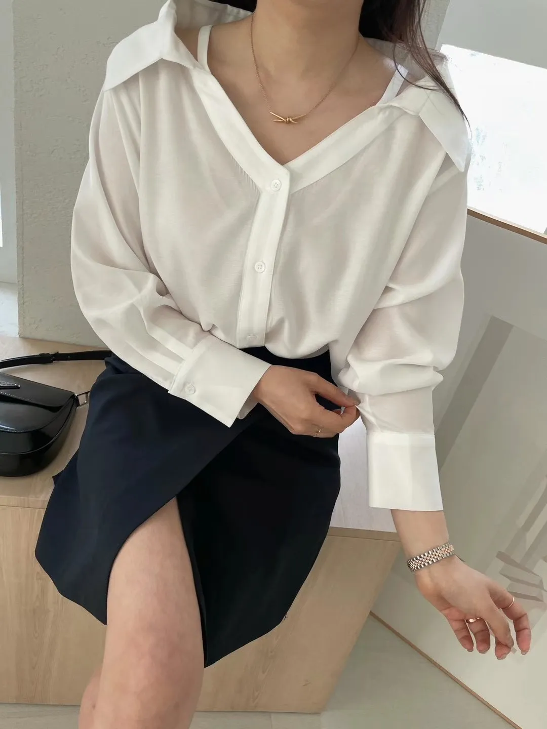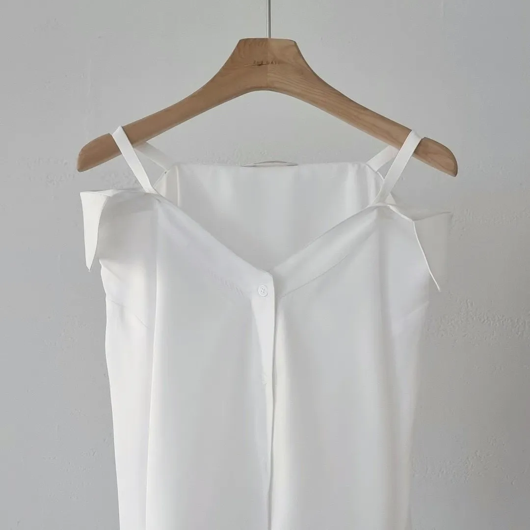 四季可穿高質感露肩一字肩吊帶設計感襯衫 肩帶可調