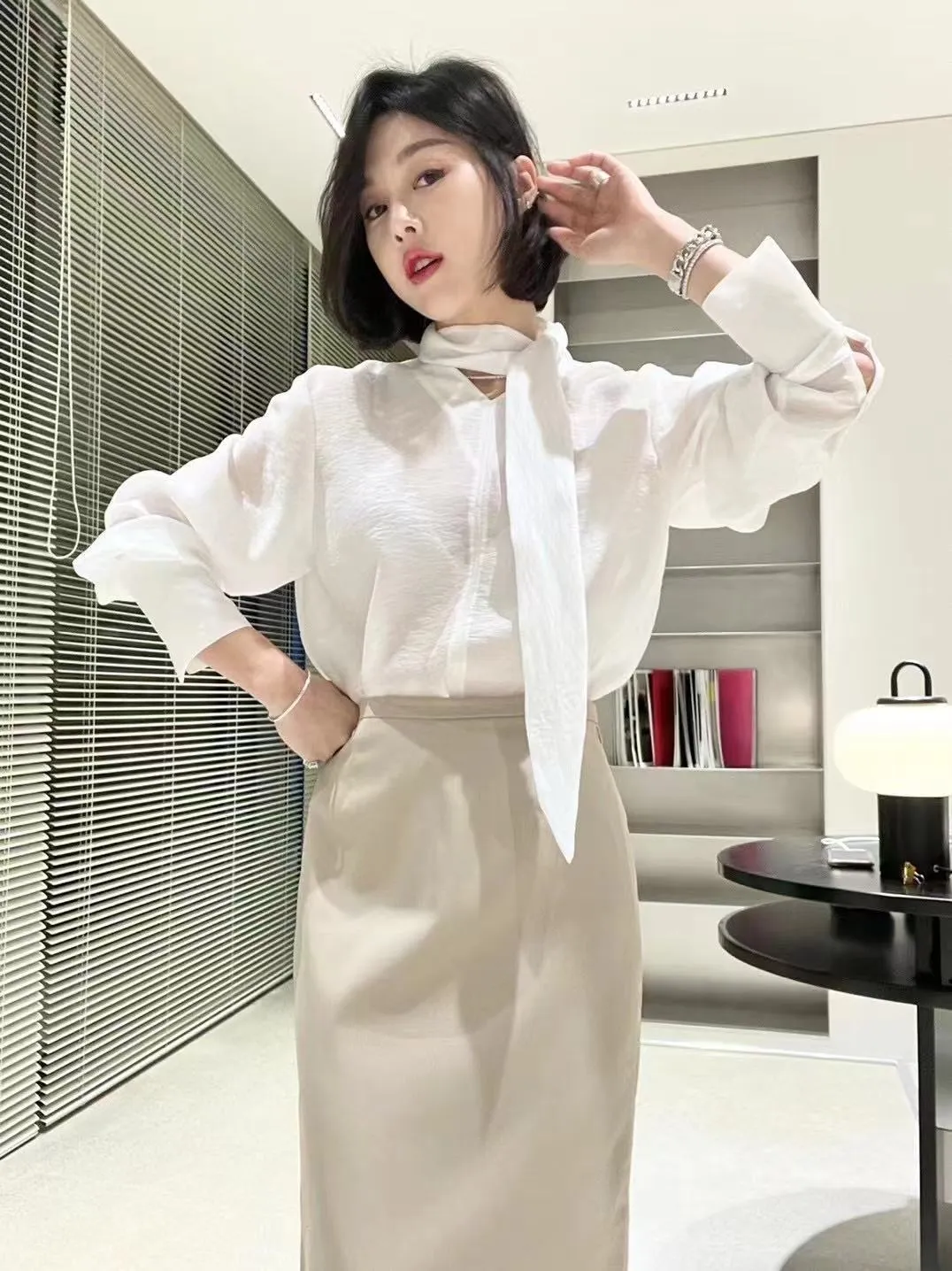 MAINSTAY絕版🔥設計感金秘書領帶氣質襯衫
