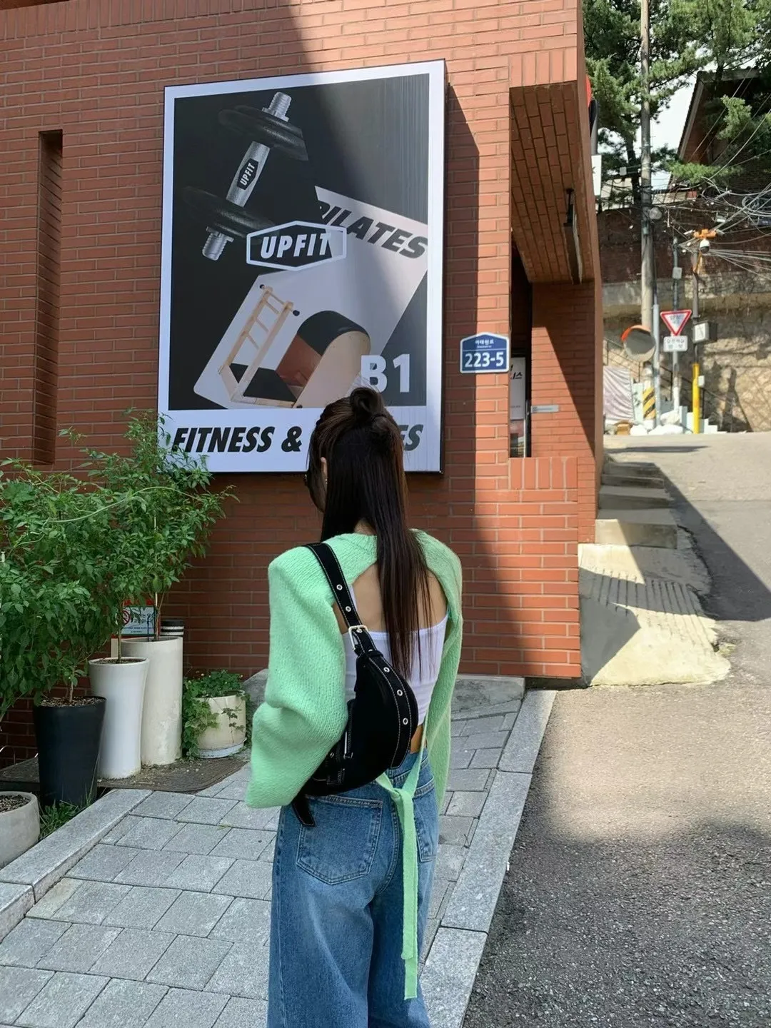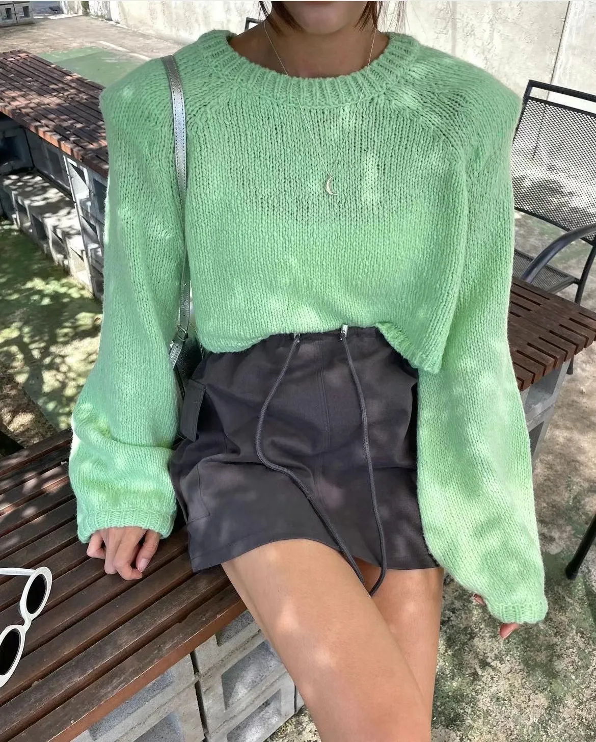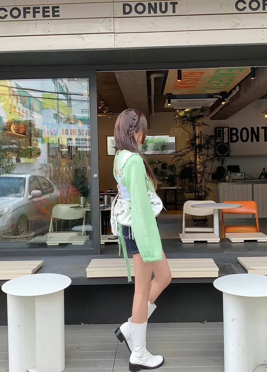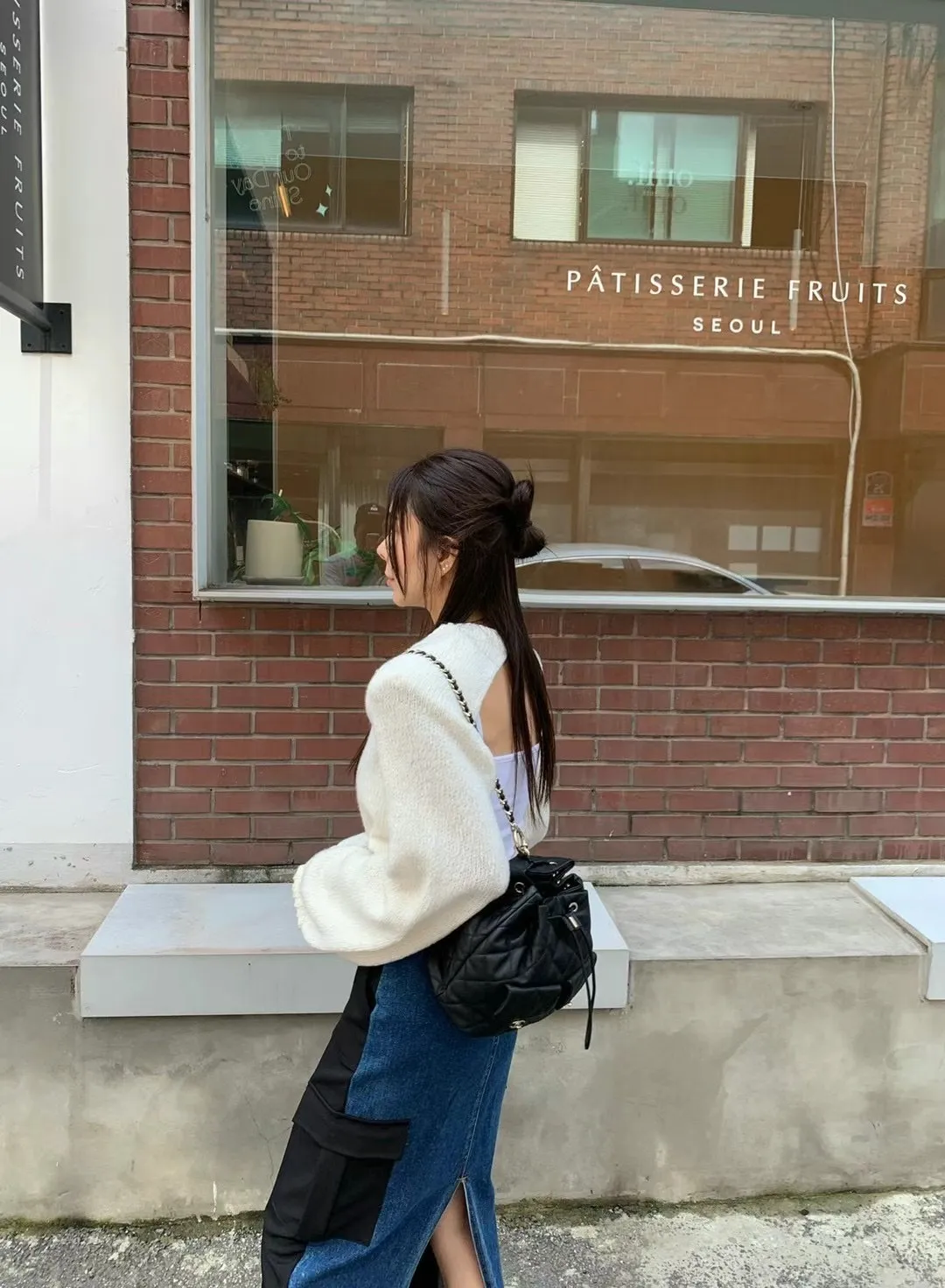 兩面穿設計 綁帶寬袖針織上衣外套 四色 短版上衣 外罩