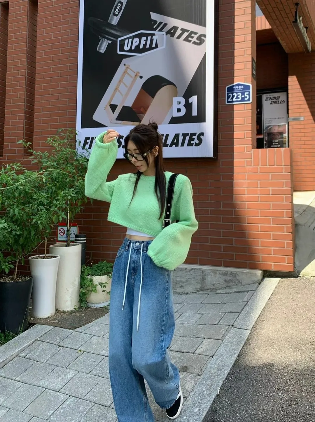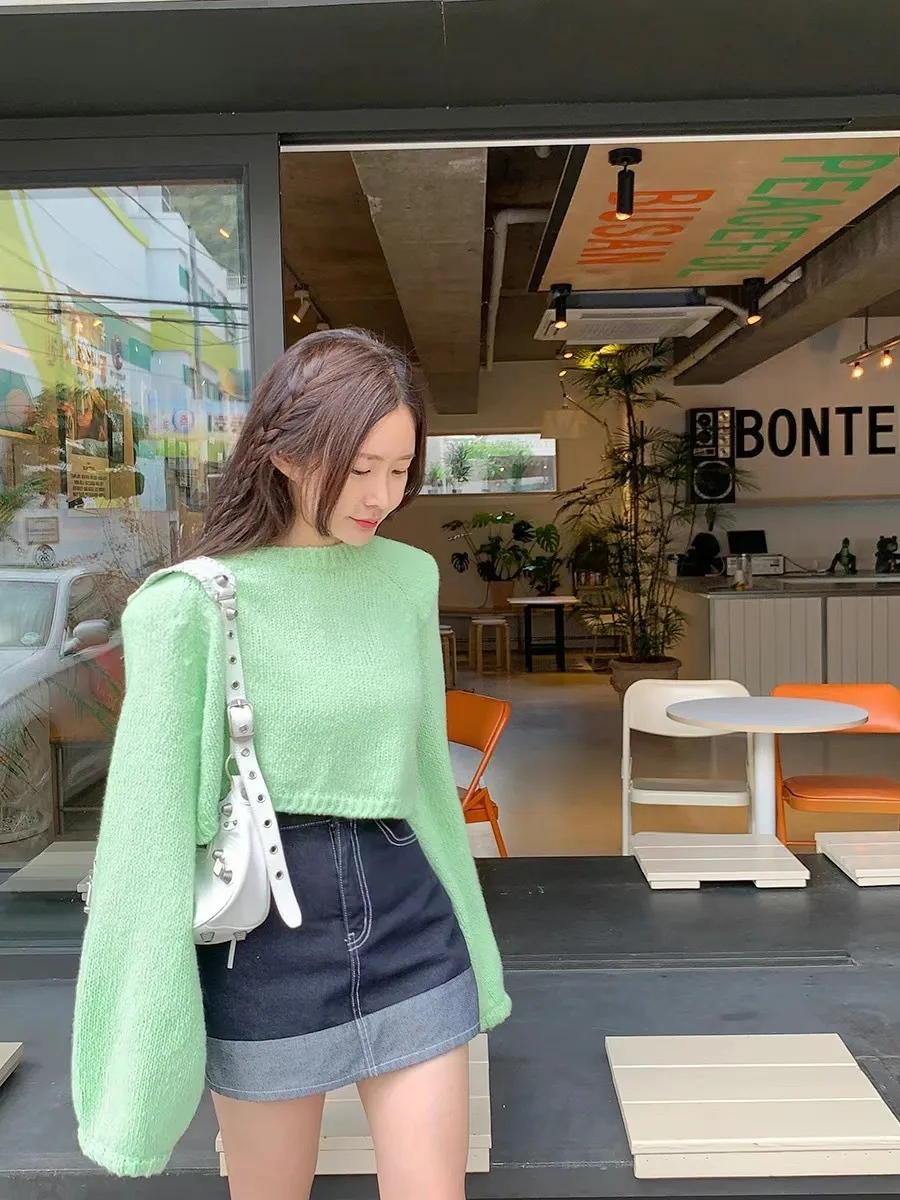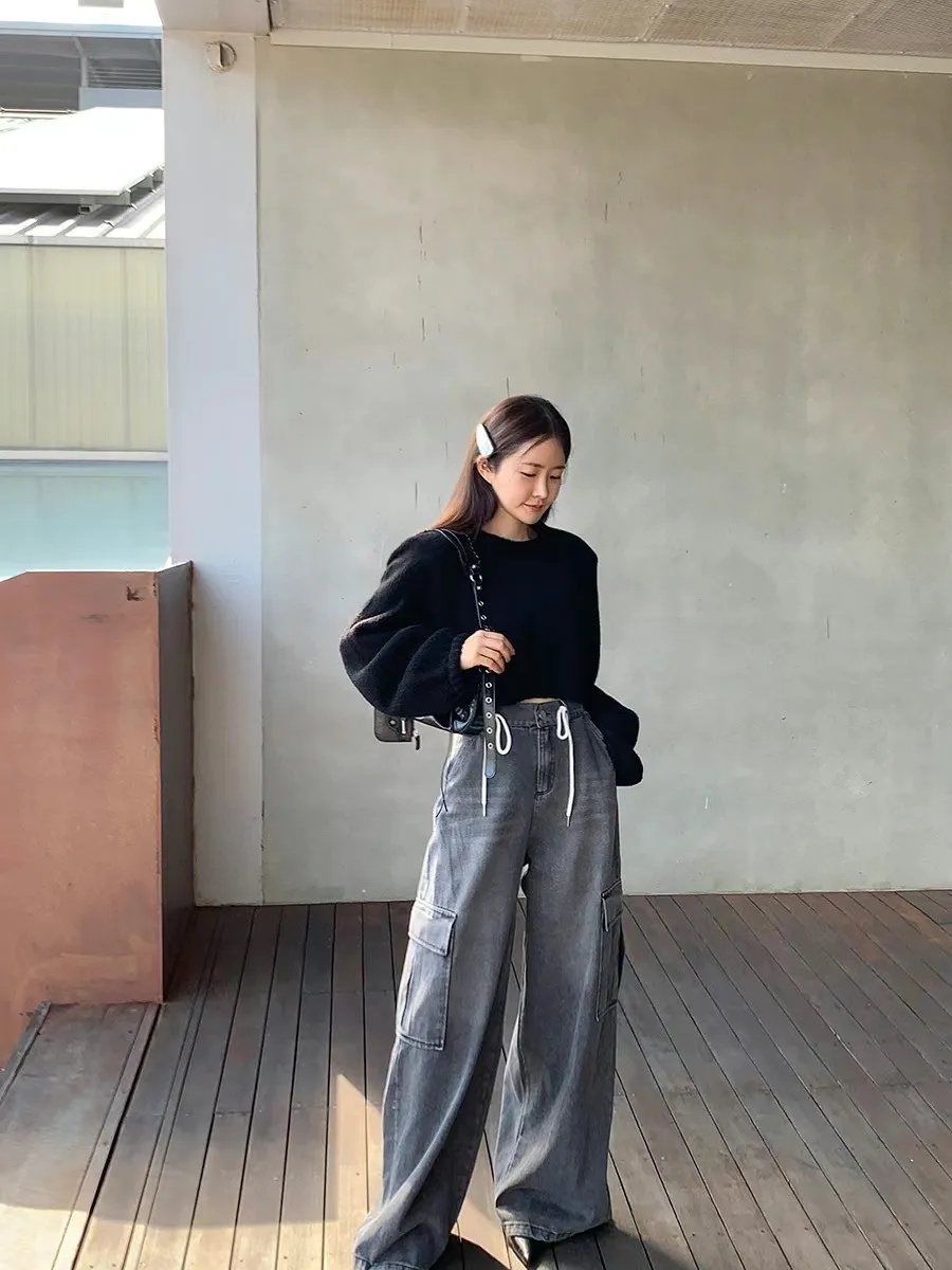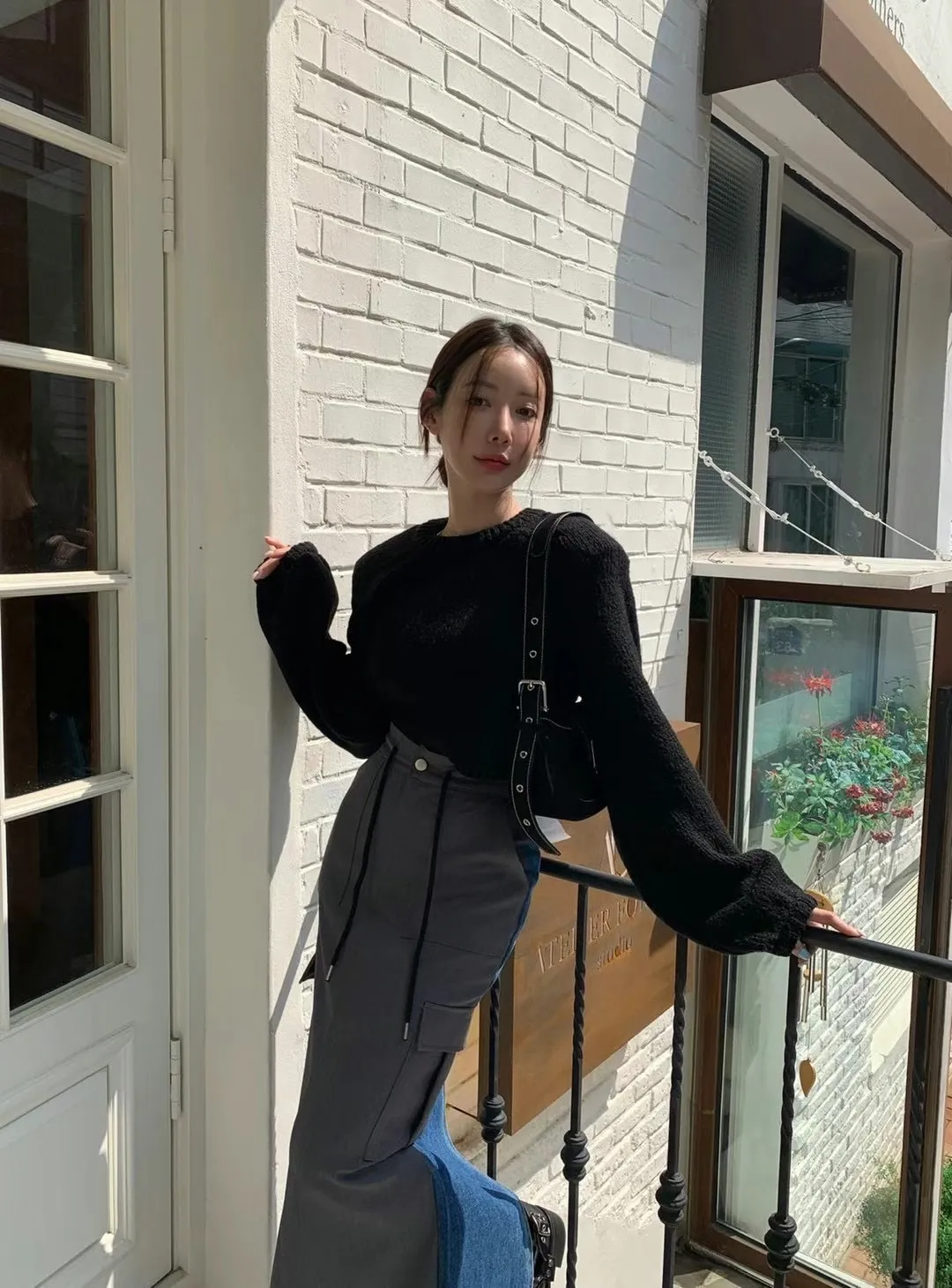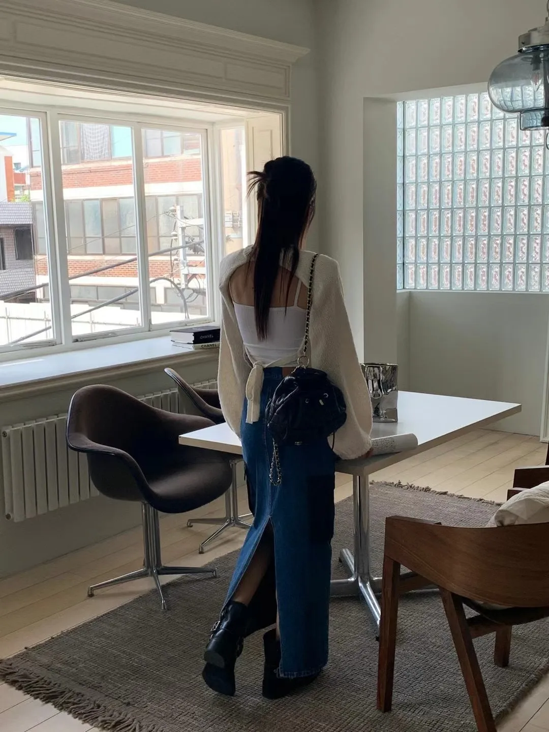 兩面穿設計 綁帶寬袖針織上衣外套 四色 短版上衣 外罩