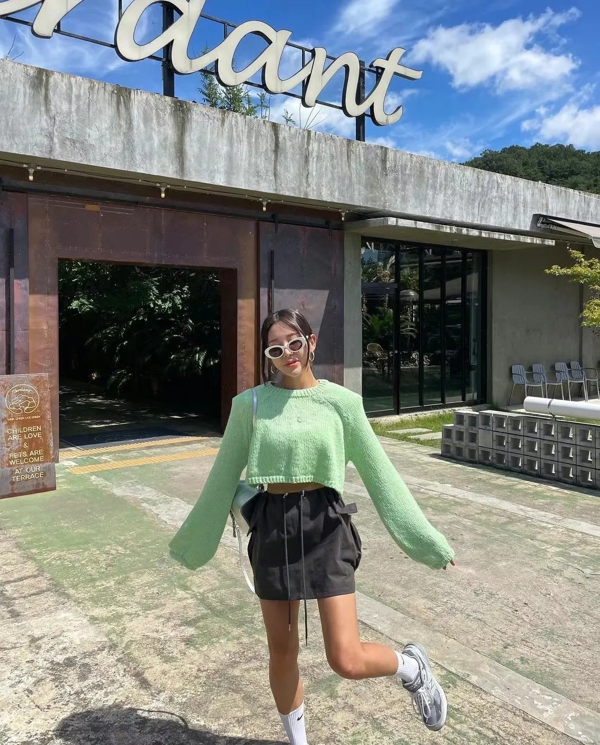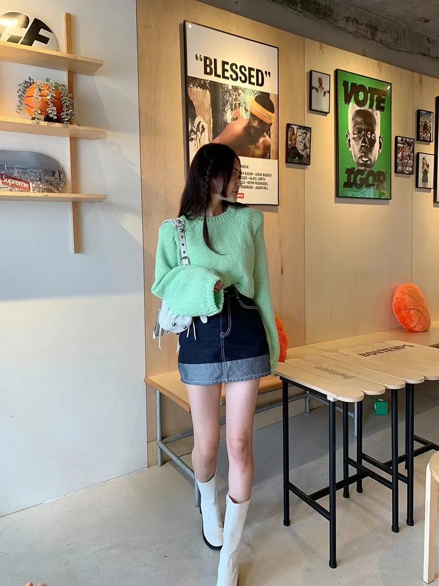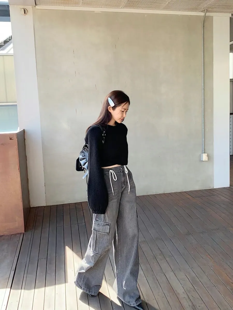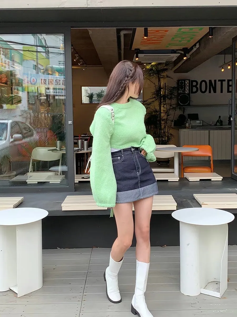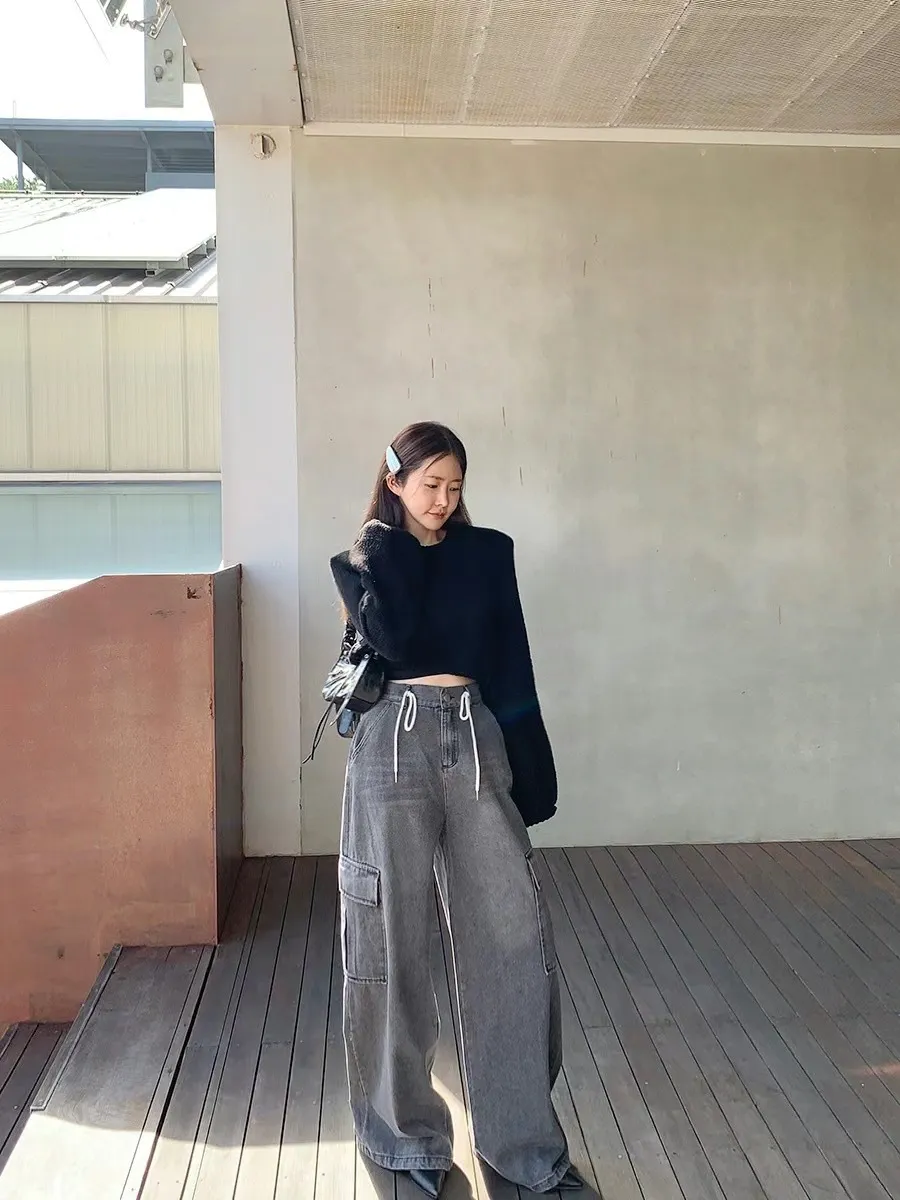 兩面穿設計 綁帶寬袖針織上衣外套 四色 短版上衣 外罩
