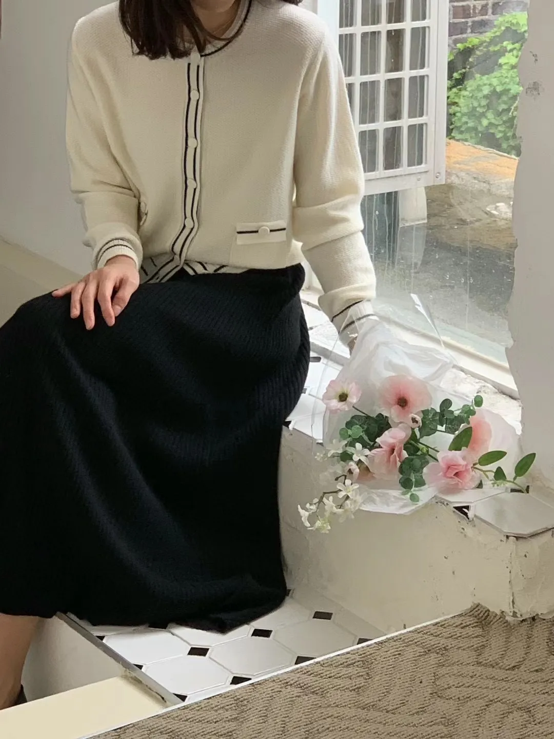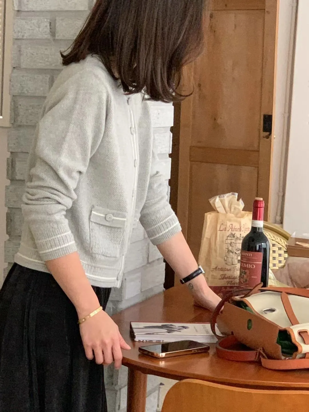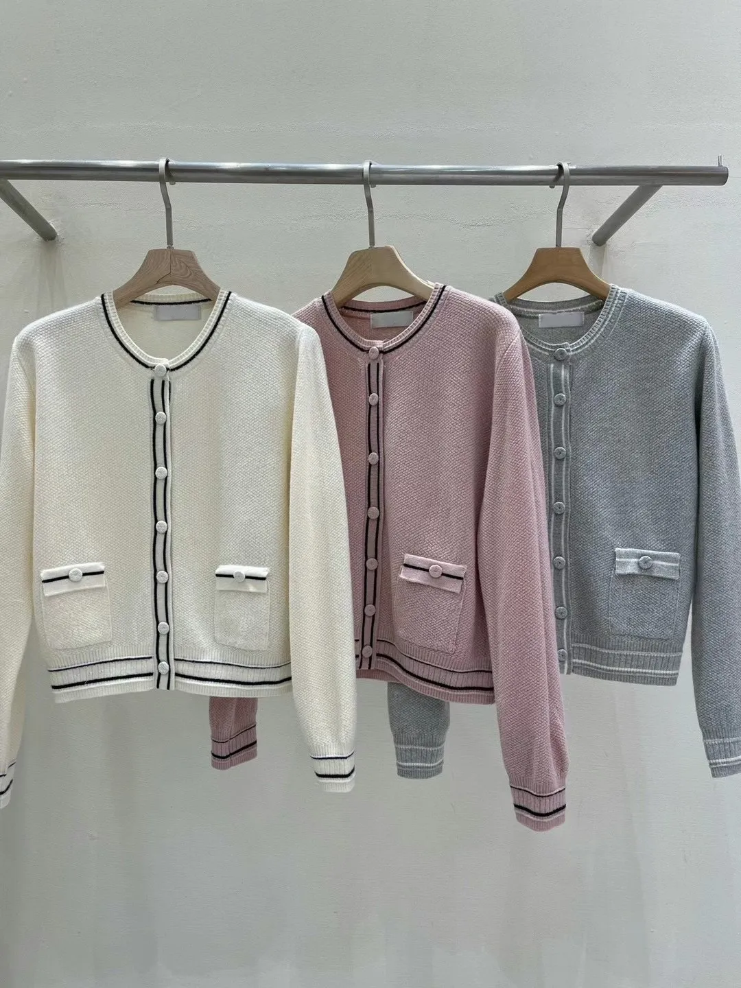 氣質歐膩家 小香風 拼色滾邊羊毛100針織開衫上衣