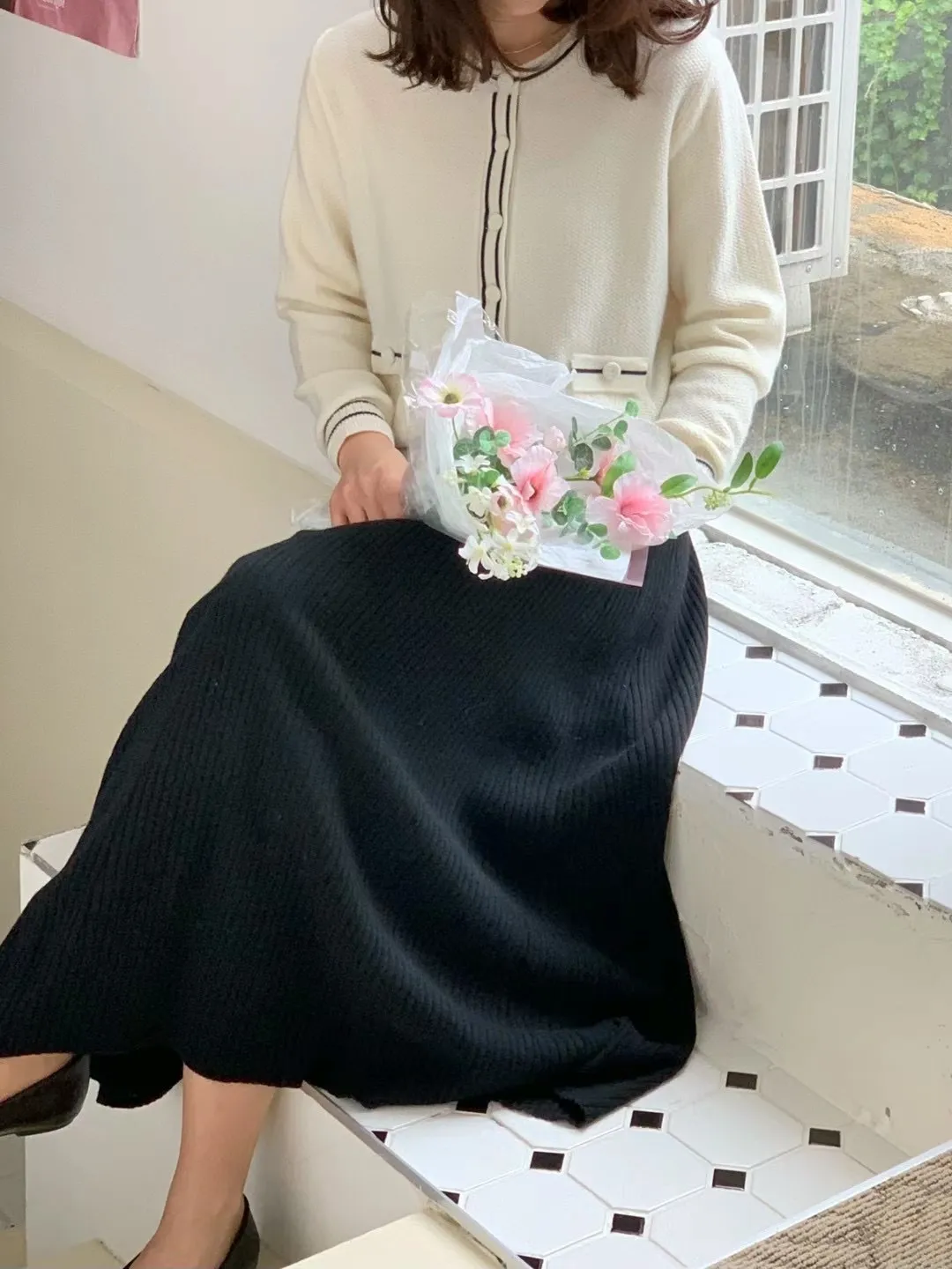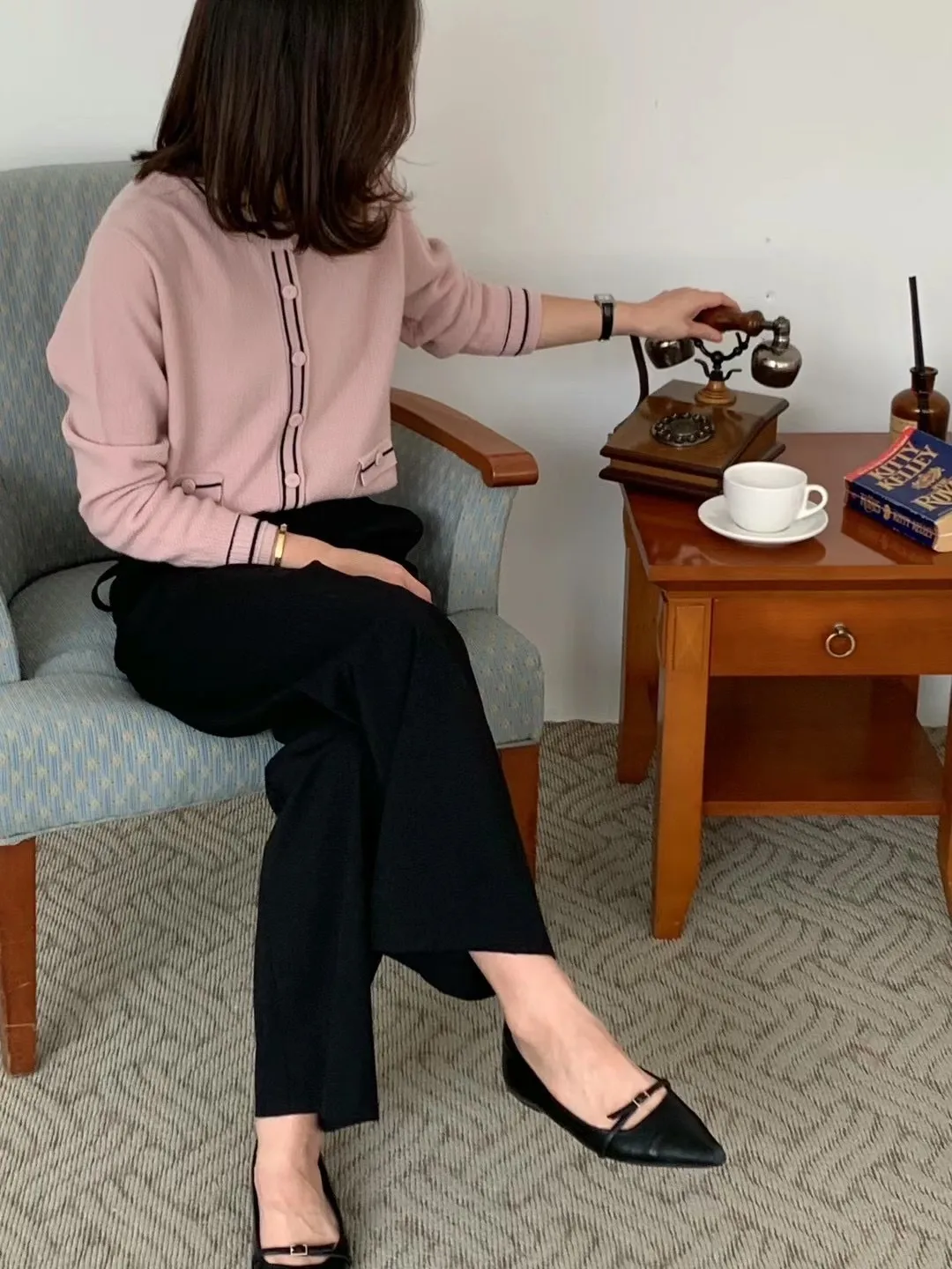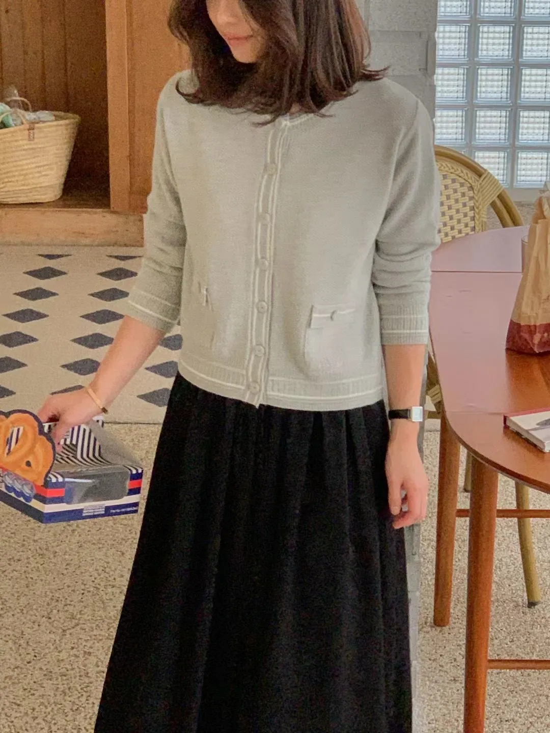 氣質歐膩家 小香風 拼色滾邊羊毛100針織開衫上衣