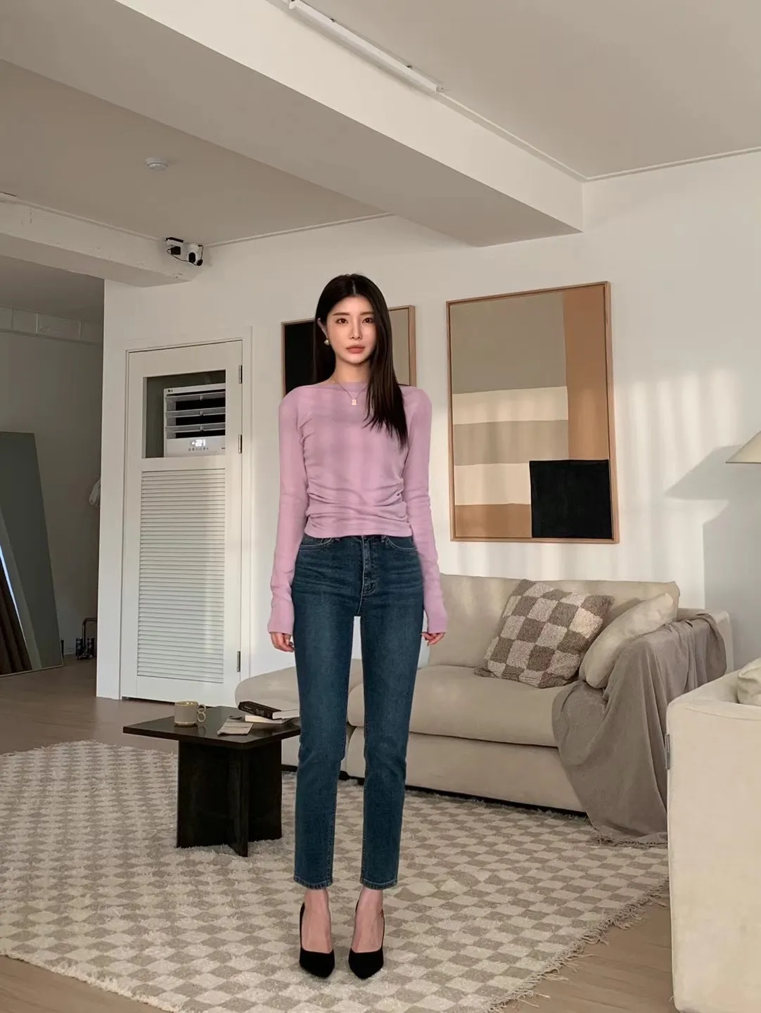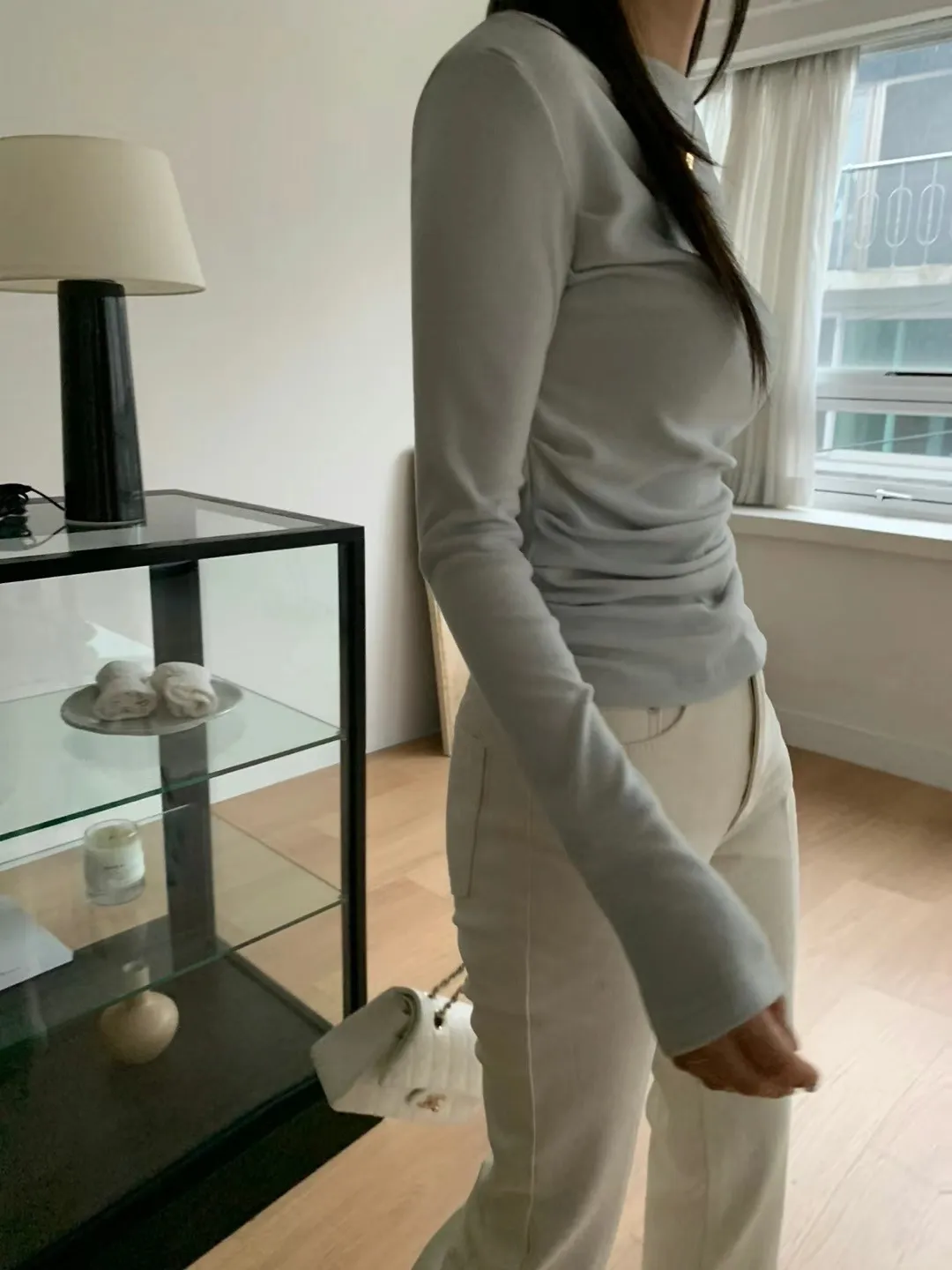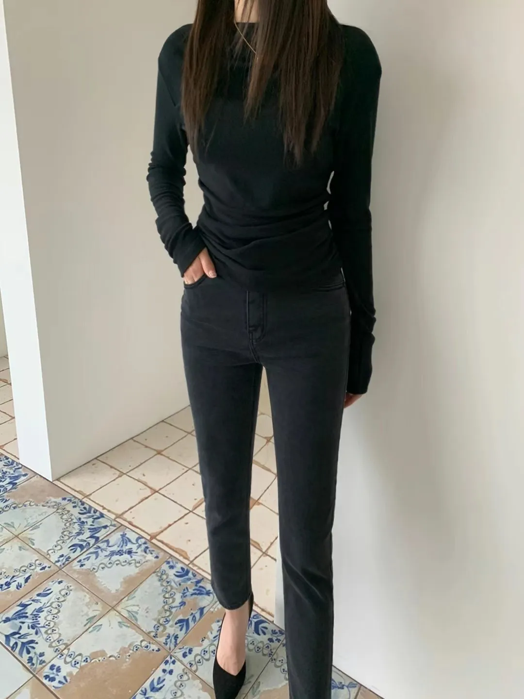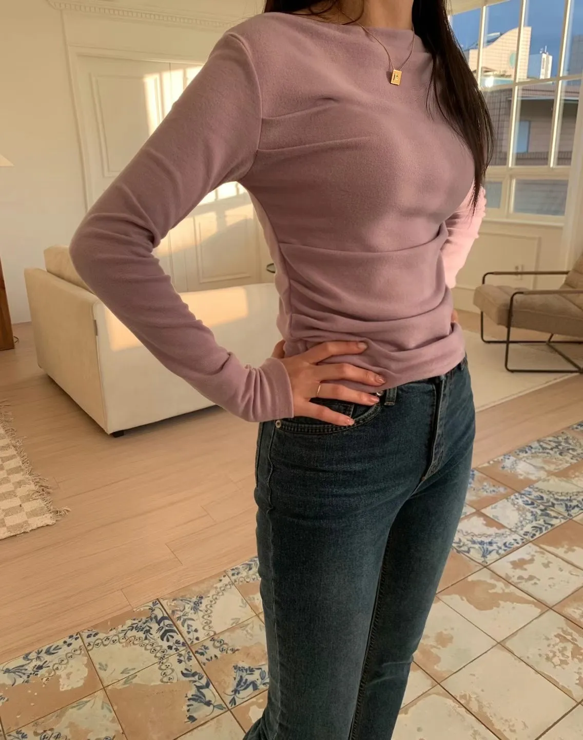 設計師款小性感一字領抓腰合身長袖T Q彈棉柔