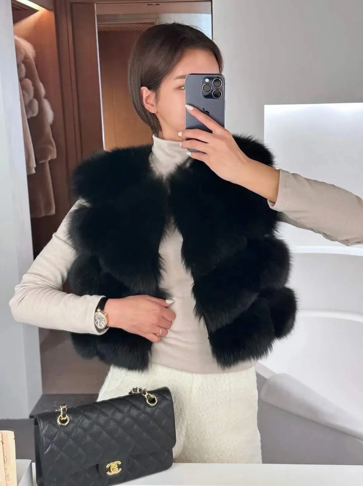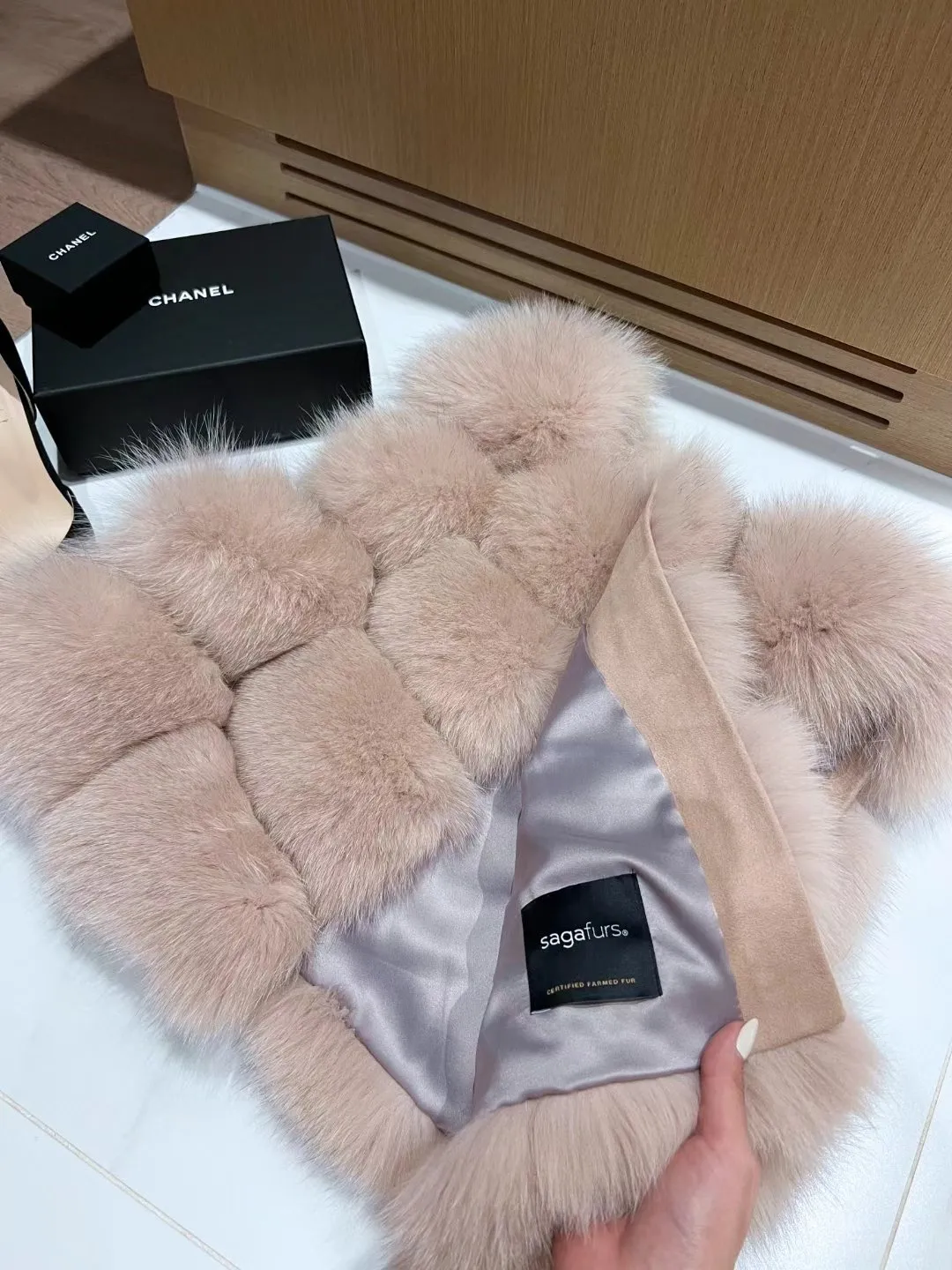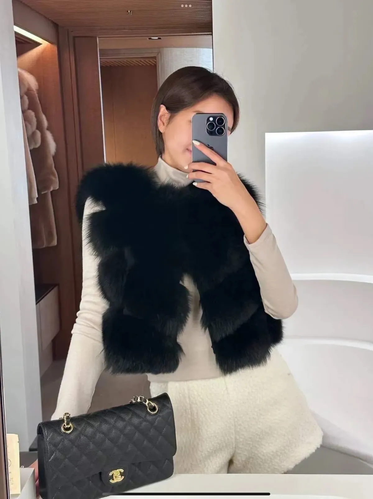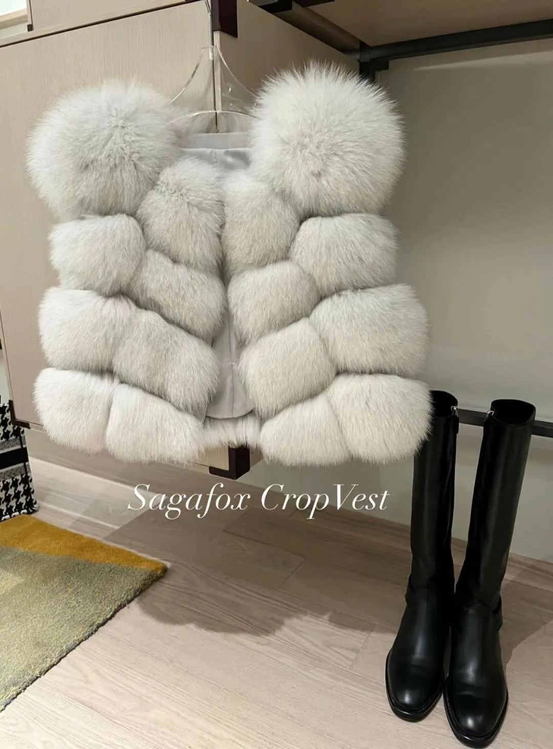 高級重磅輕奢名媛 sagafox狐狸毛100%皮草背心 短版精品馬甲皮草背心