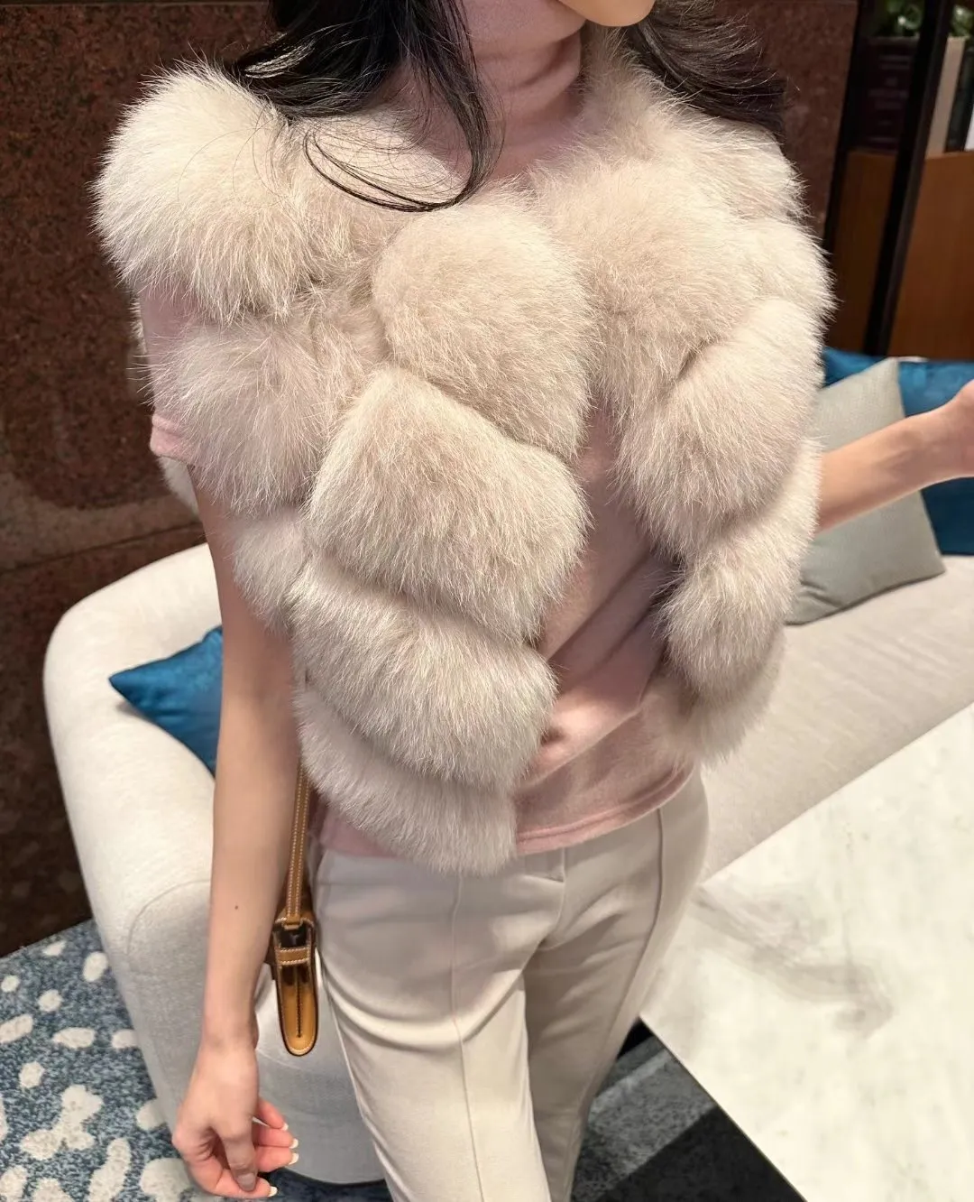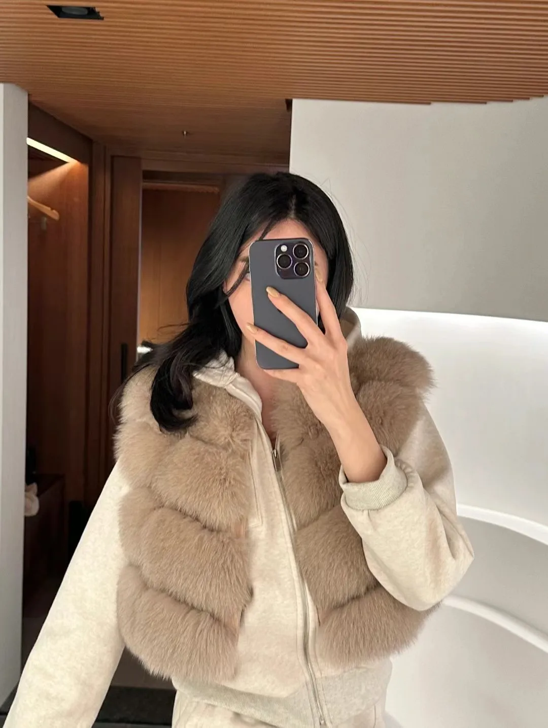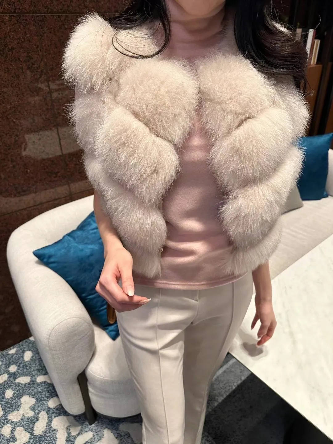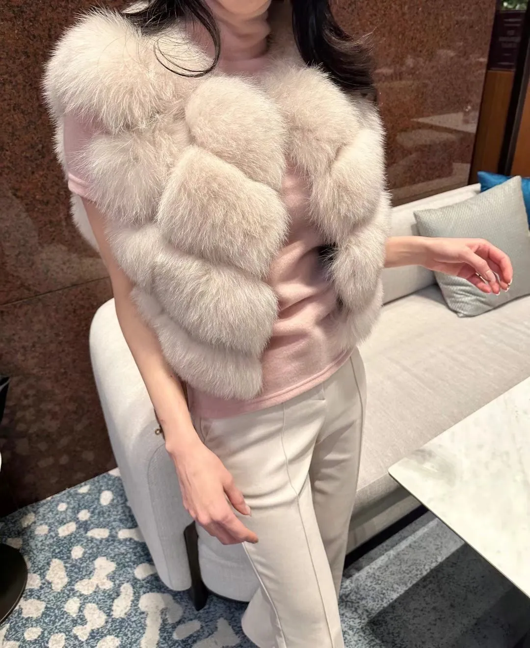 高級重磅輕奢名媛 sagafox狐狸毛100%皮草背心 短版精品馬甲皮草背心