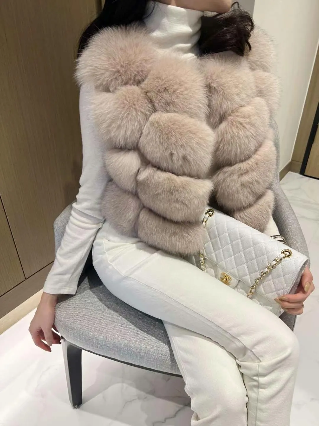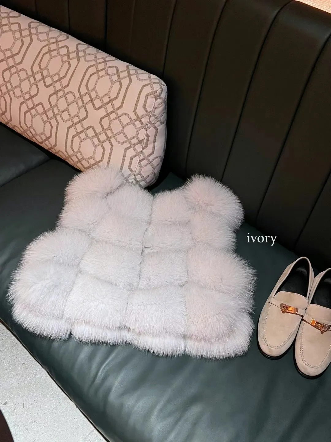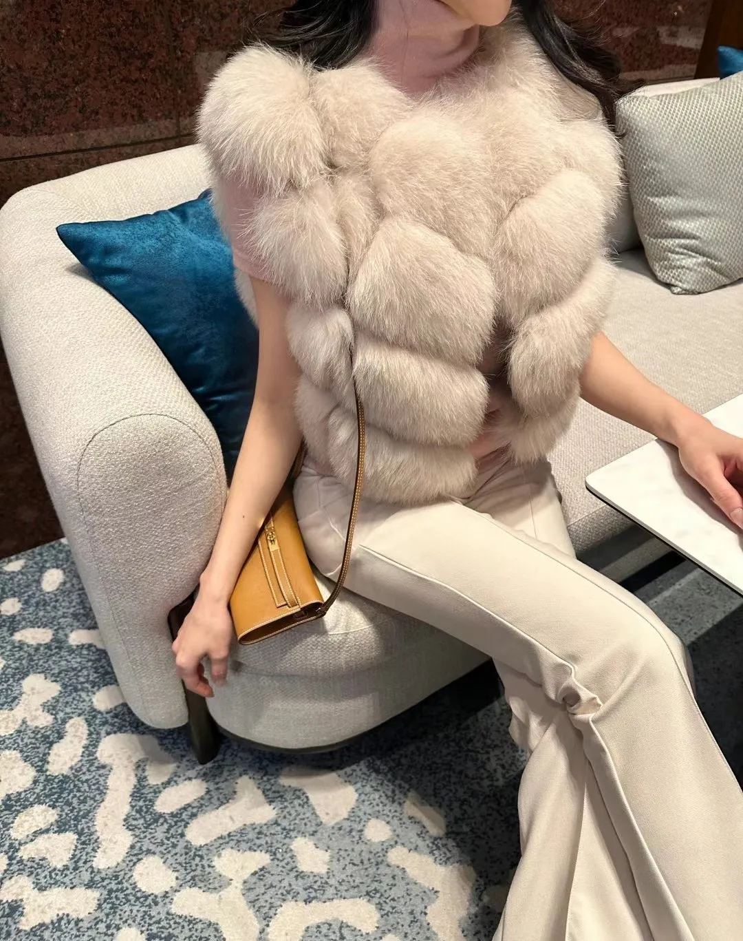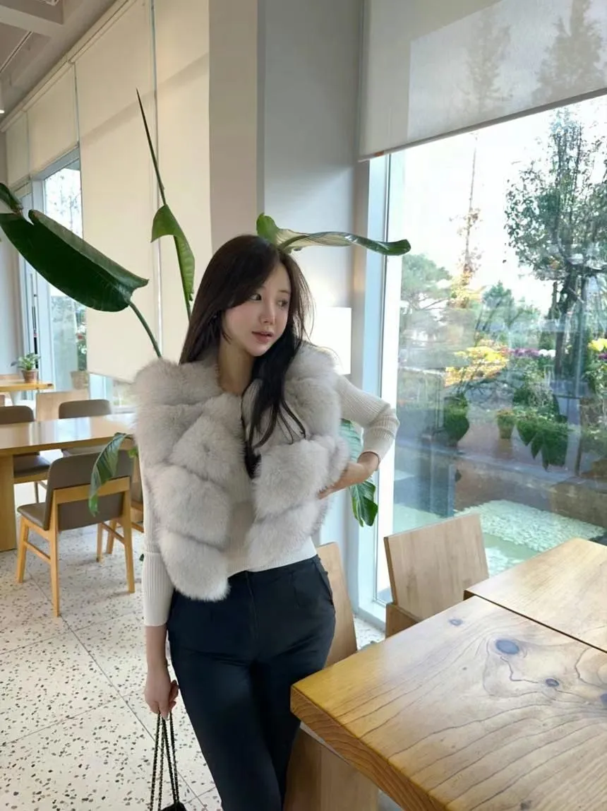 高級重磅輕奢名媛 sagafox狐狸毛100%皮草背心 短版精品馬甲皮草背心
