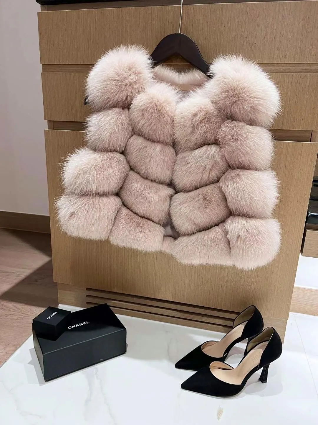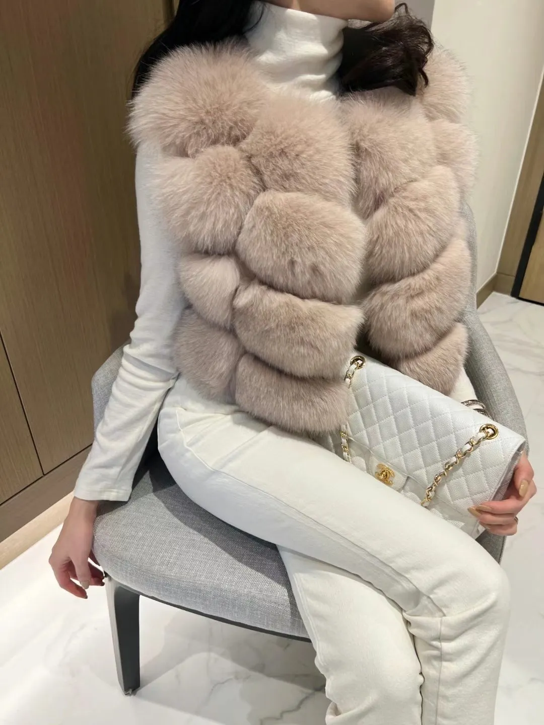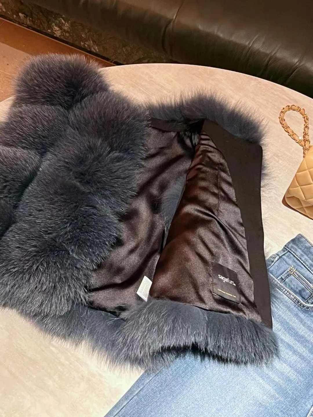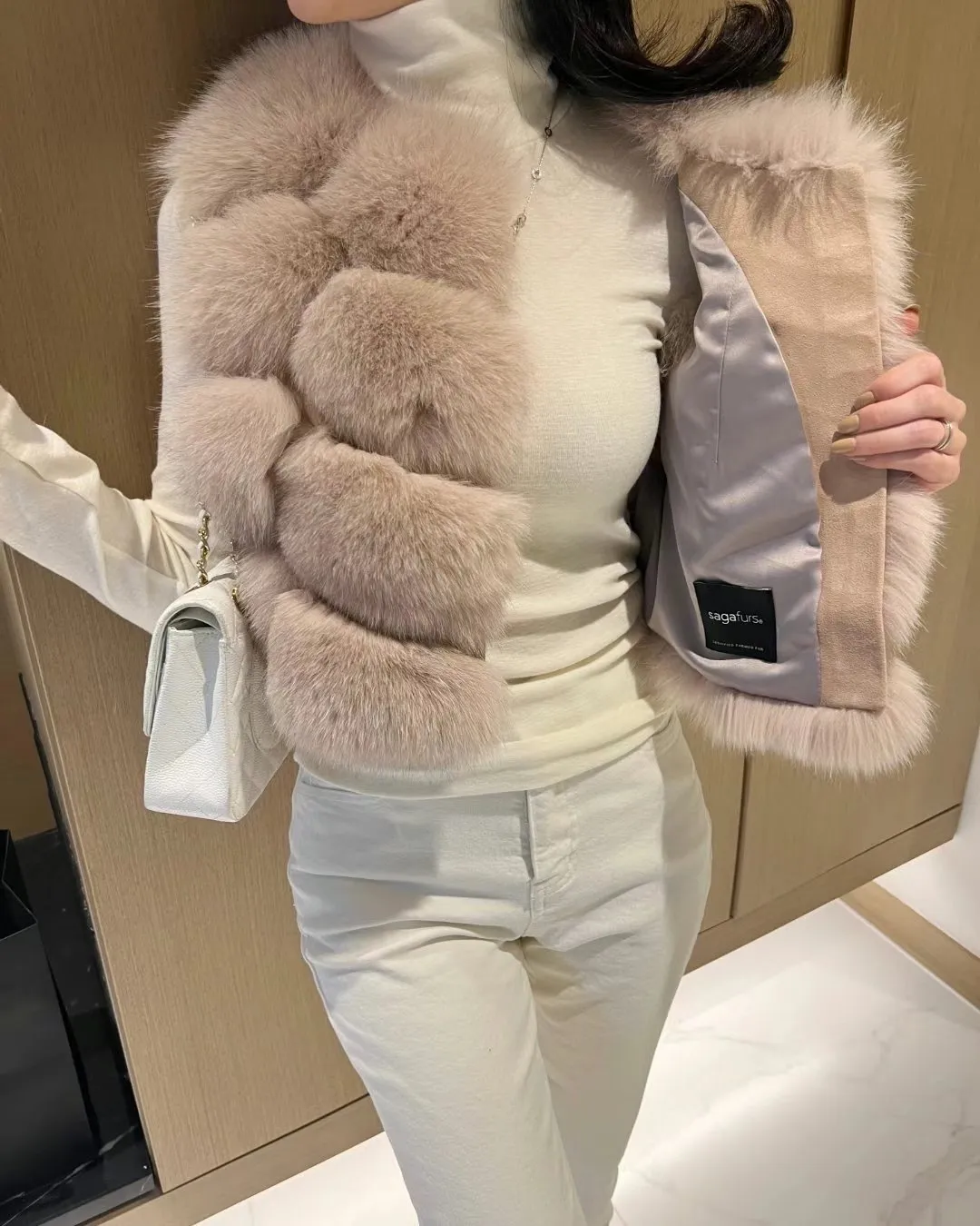 高級重磅輕奢名媛 sagafox狐狸毛100%皮草背心 短版精品馬甲皮草背心