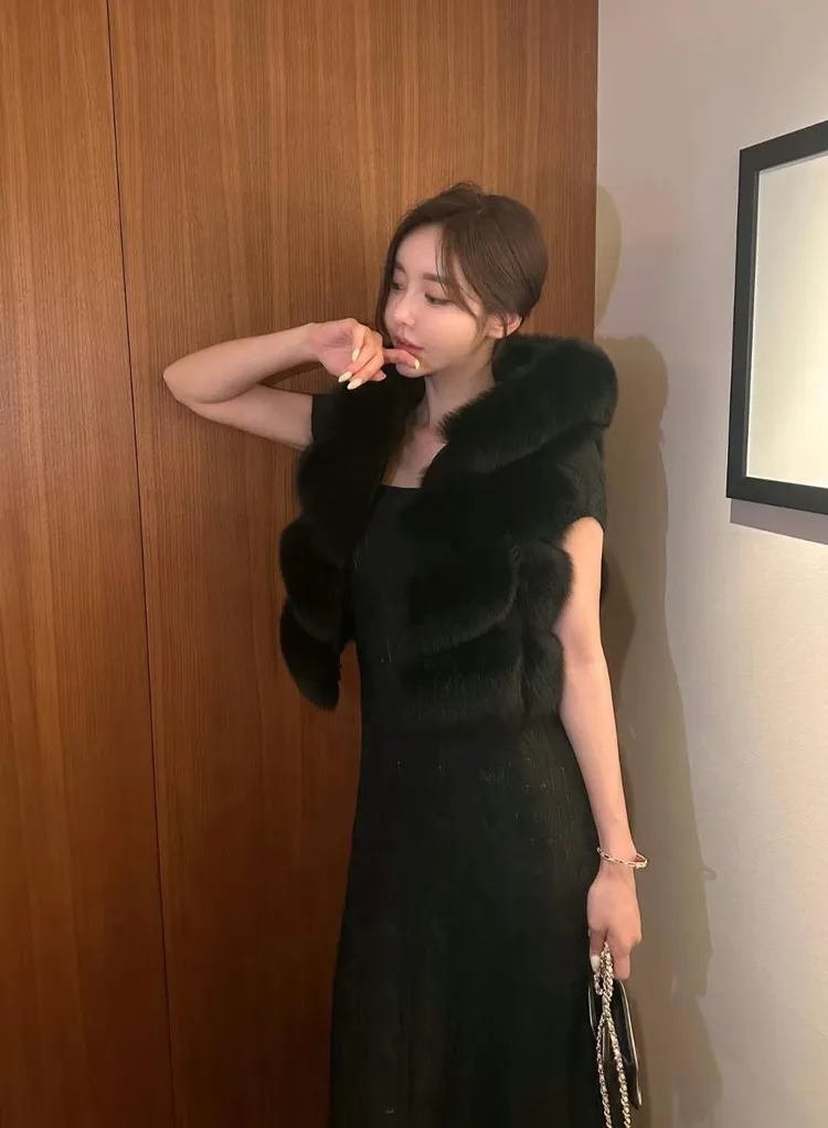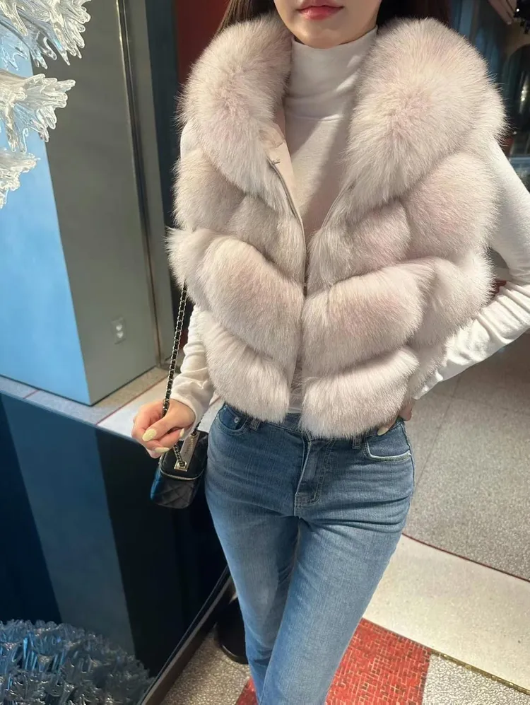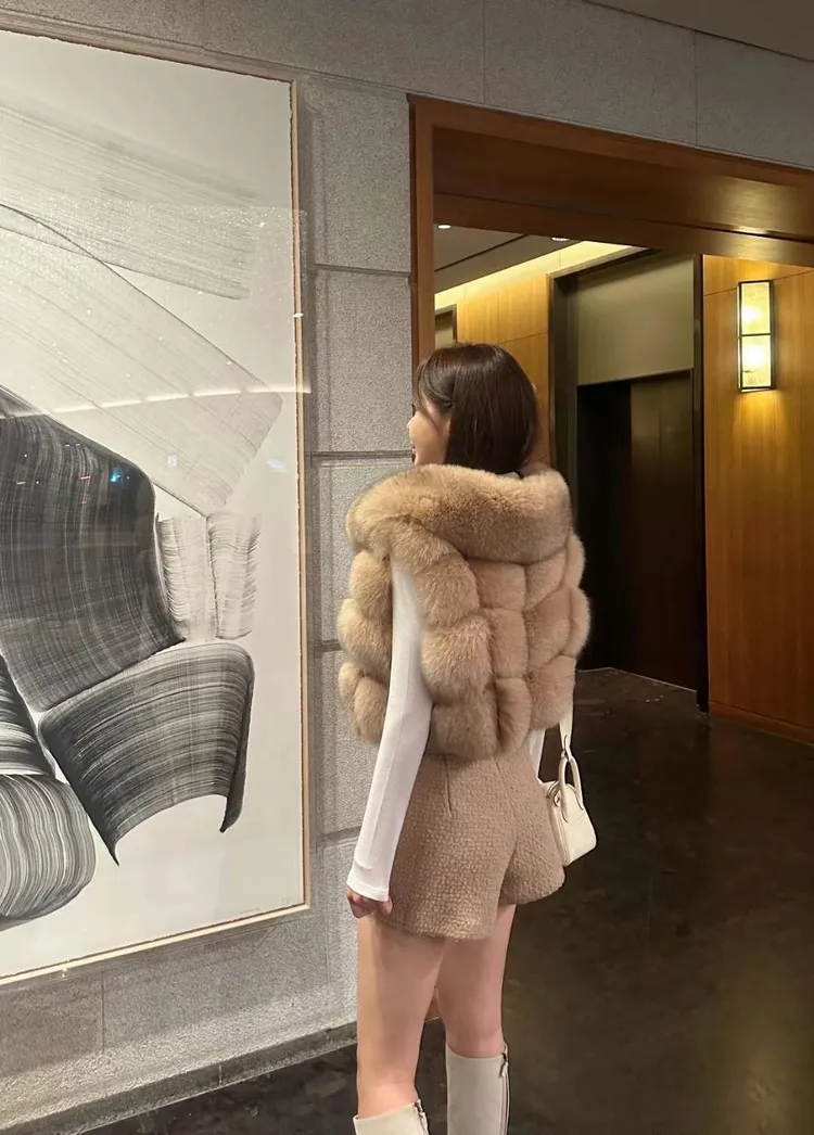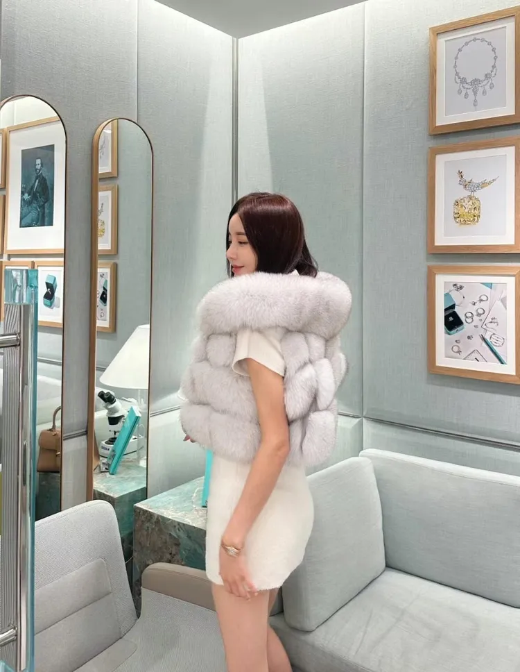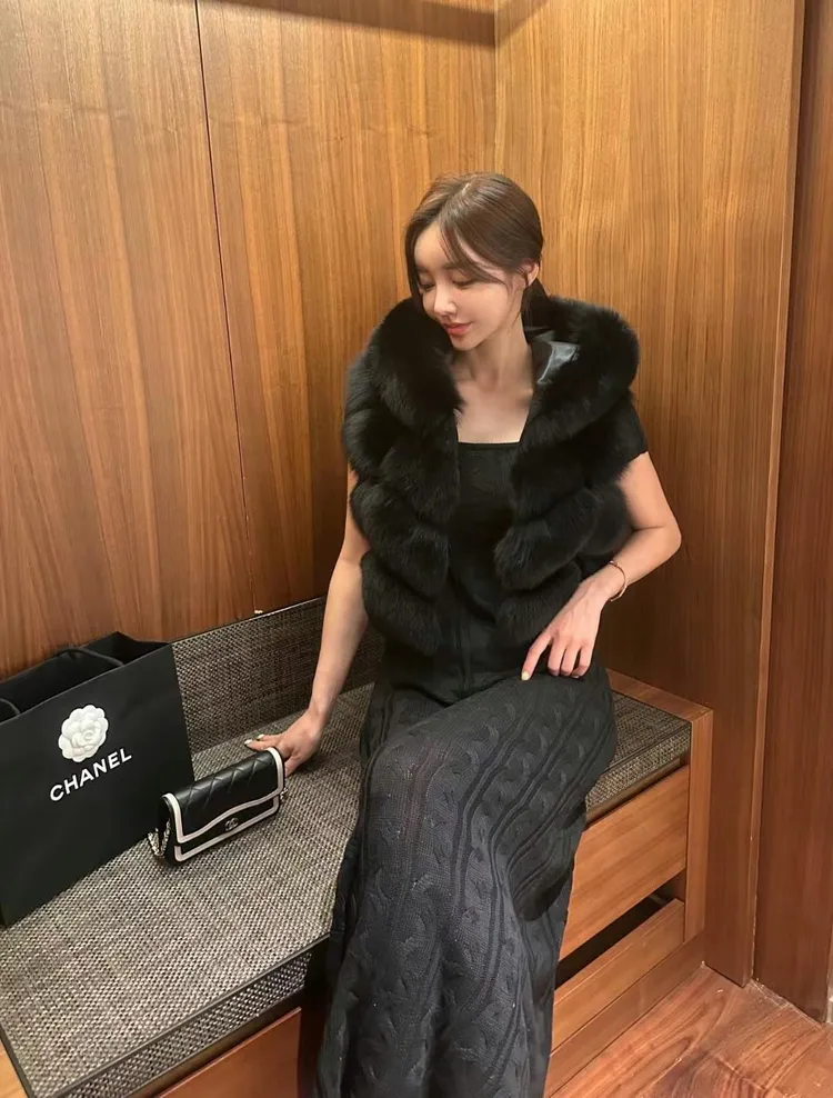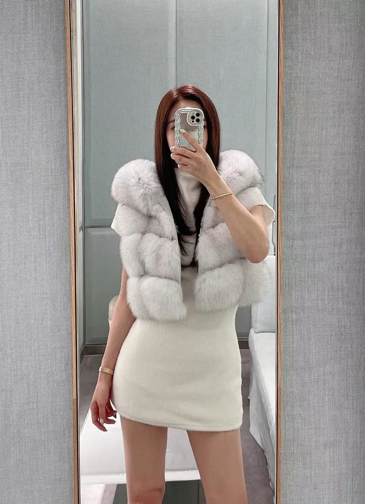 高級重磅輕奢超澎華麗皮草sagafox狐狸毛100%馬甲皮草背心