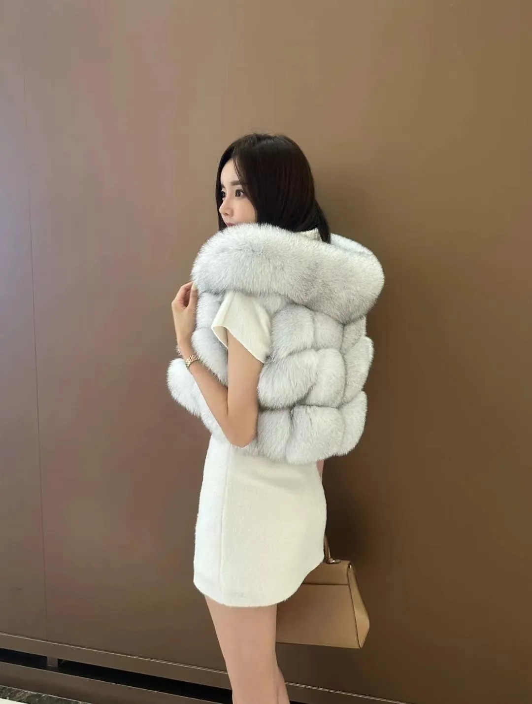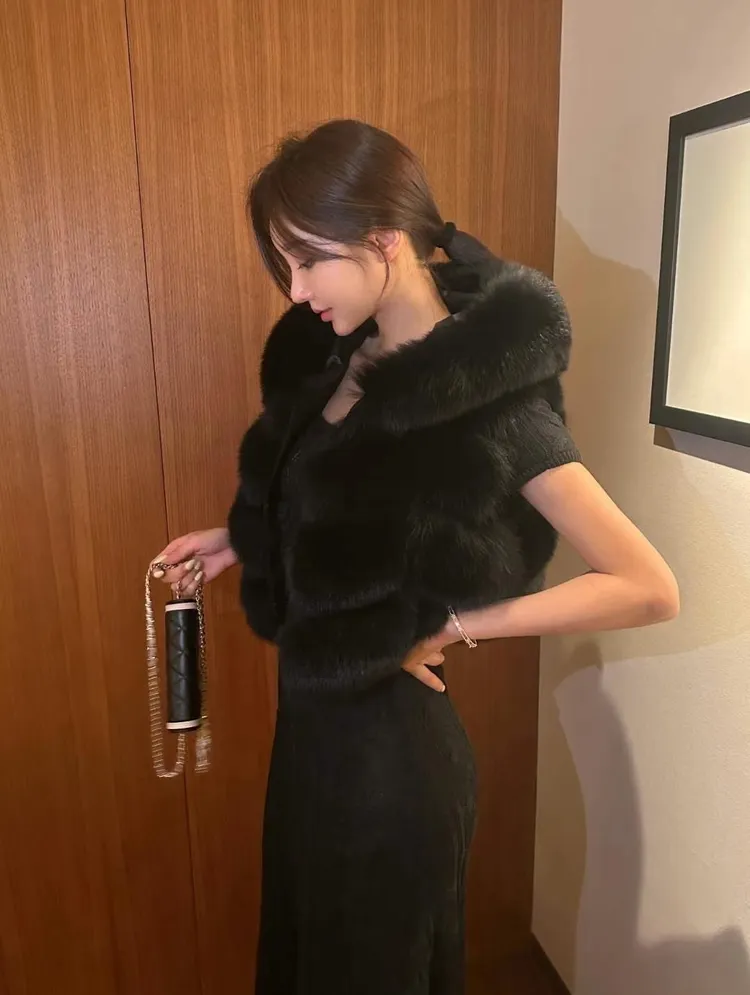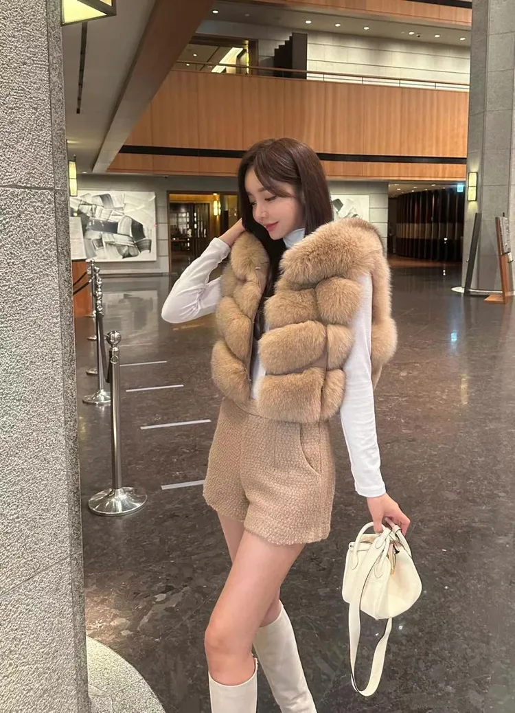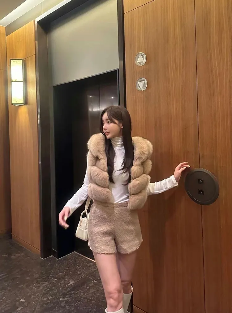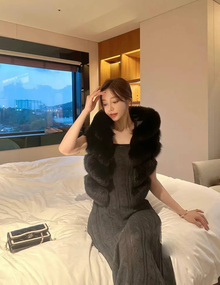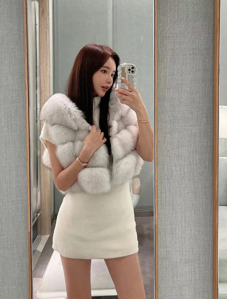 高級重磅輕奢超澎華麗皮草sagafox狐狸毛100%馬甲皮草背心