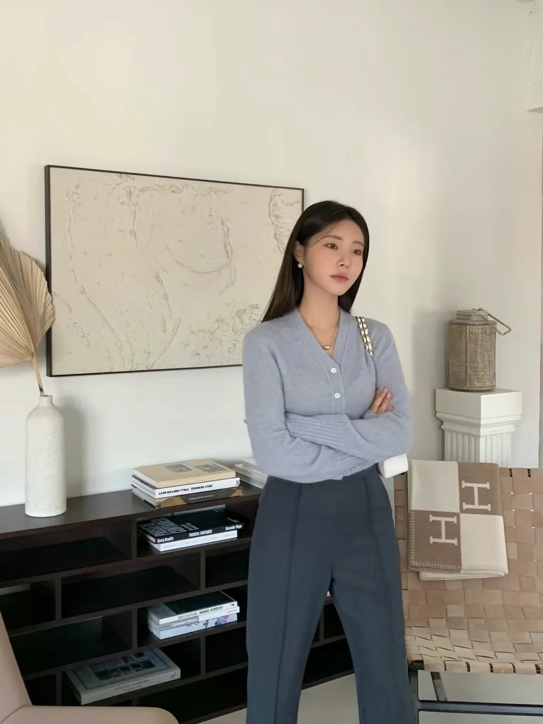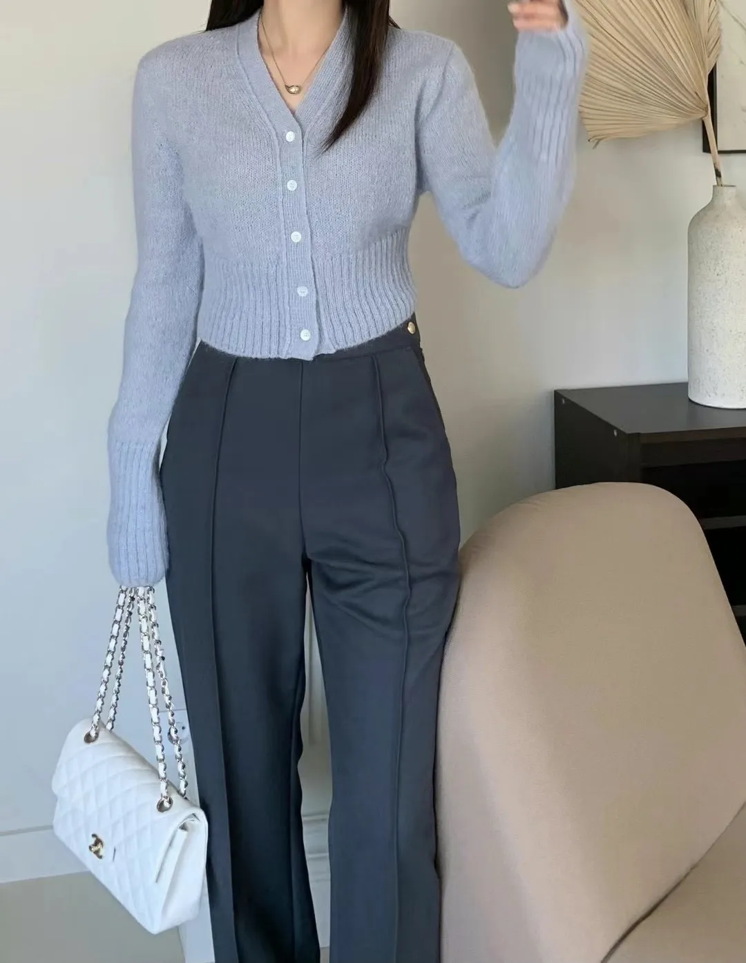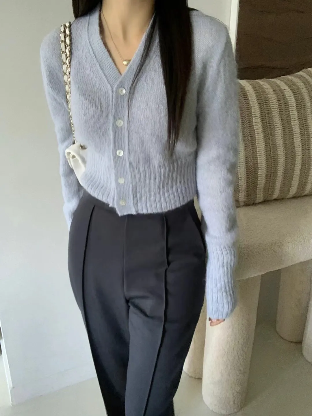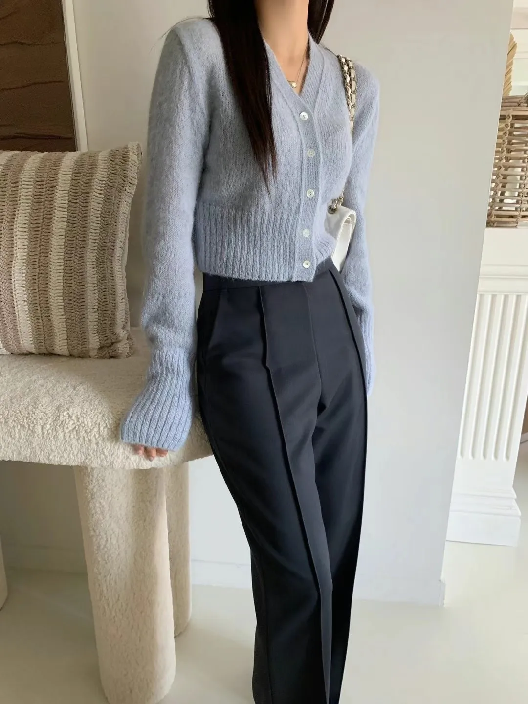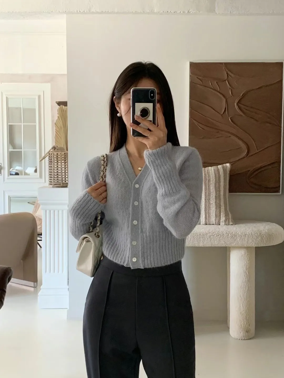 設計師品牌 羊駝毛美麗諾羊毛短款針織開衫上衣外套