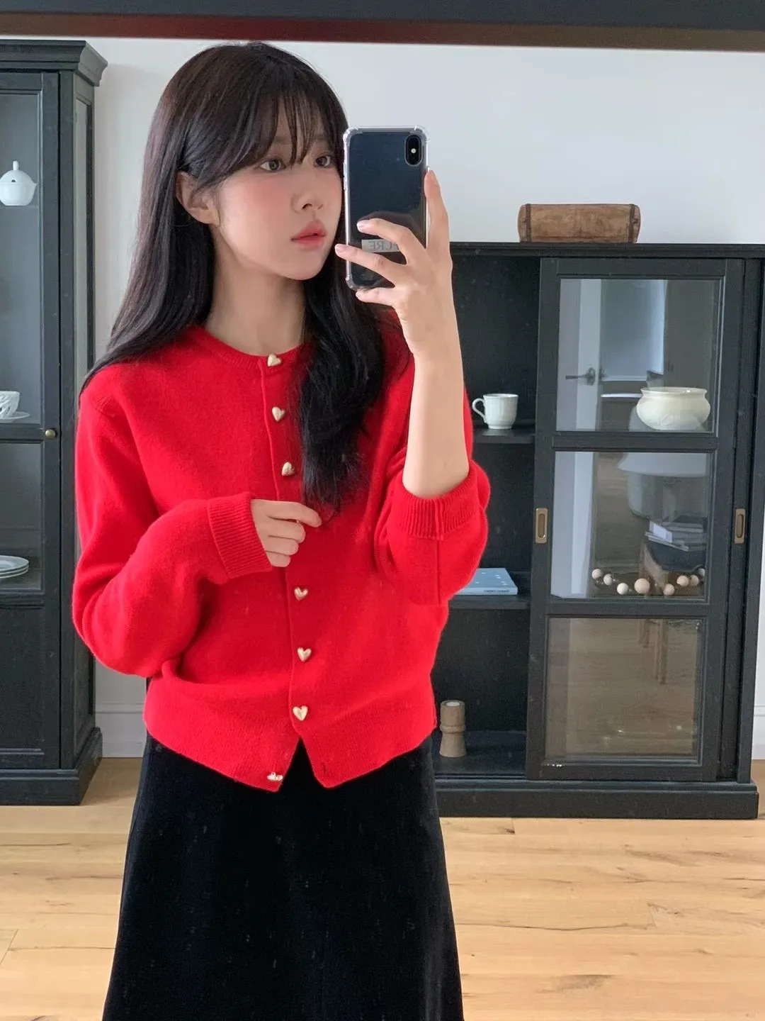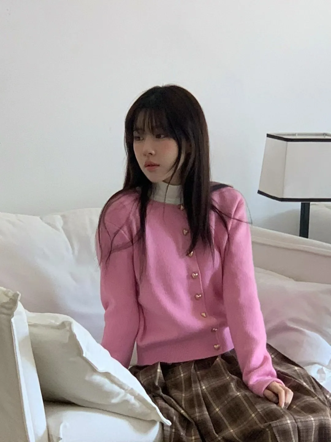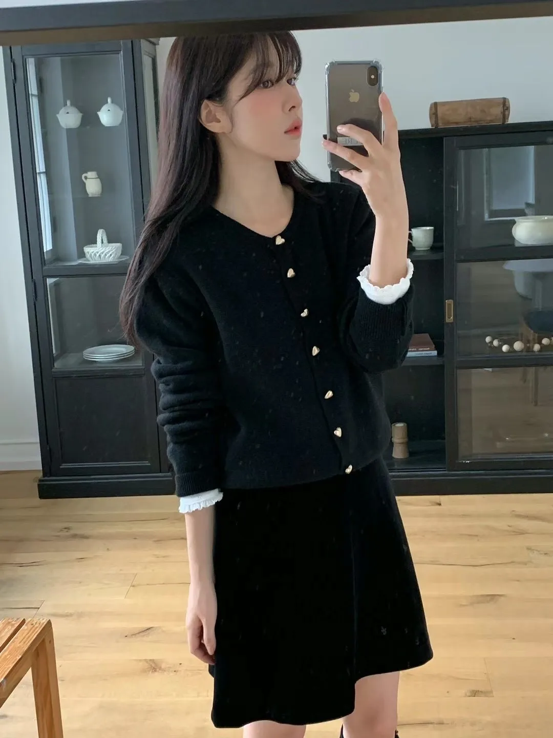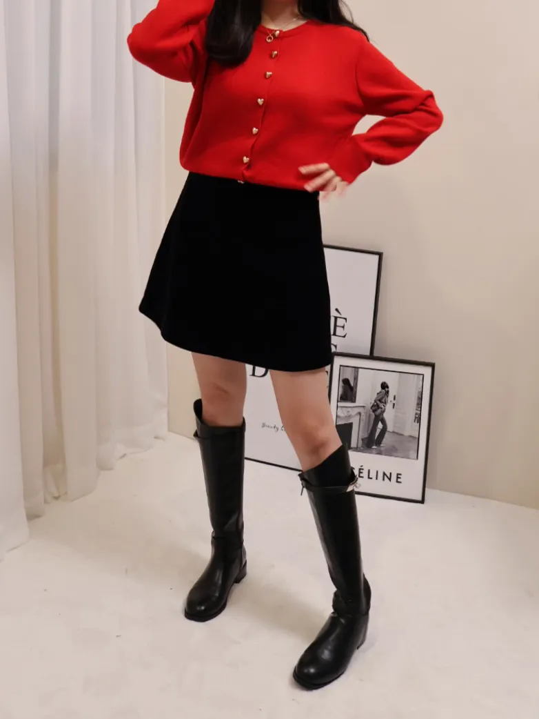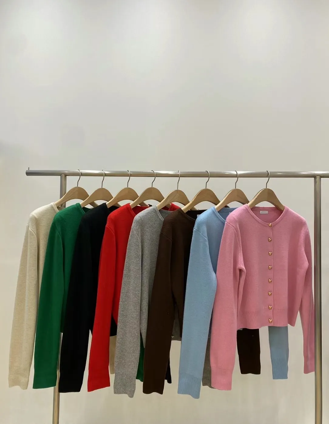 愛心金屬釦高品質親膚圓領簡約長袖針織衫
