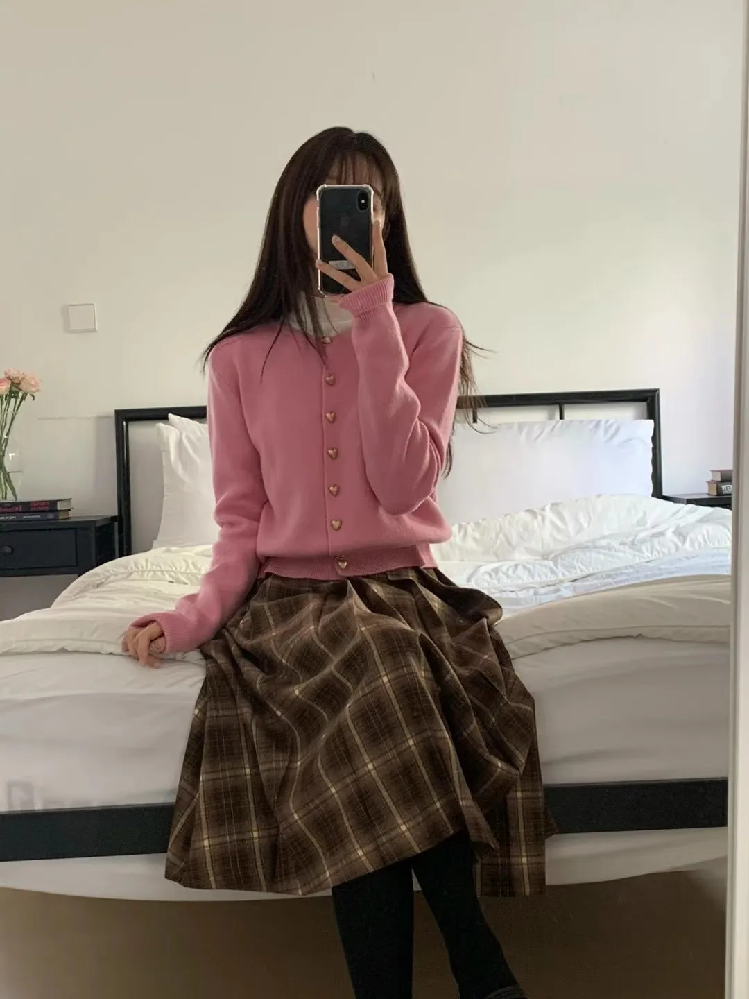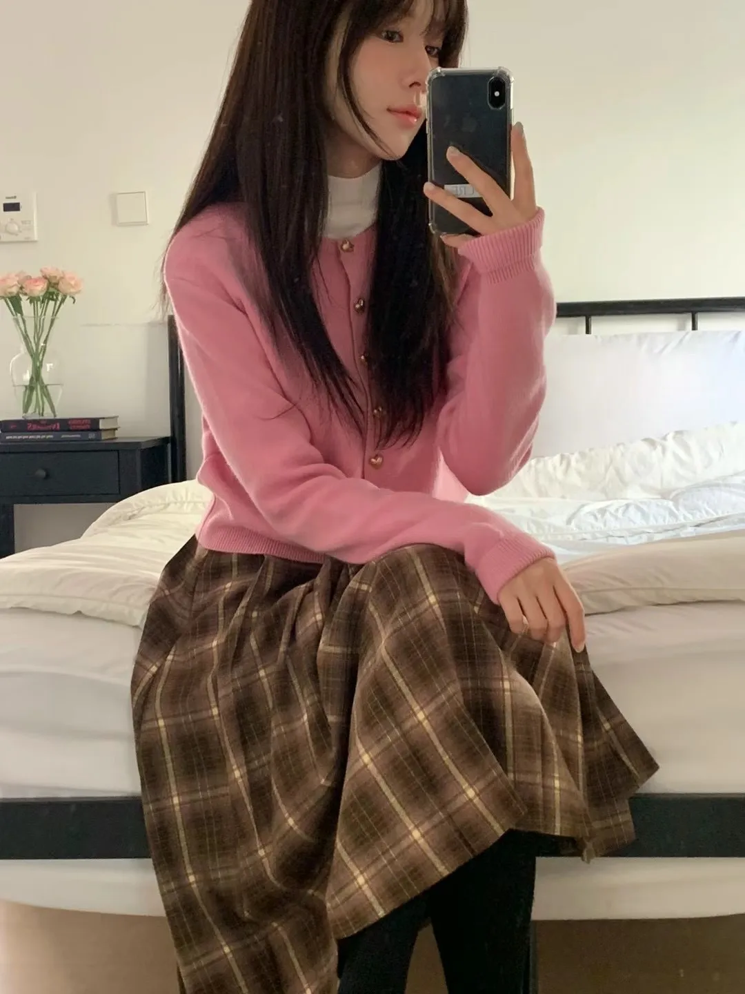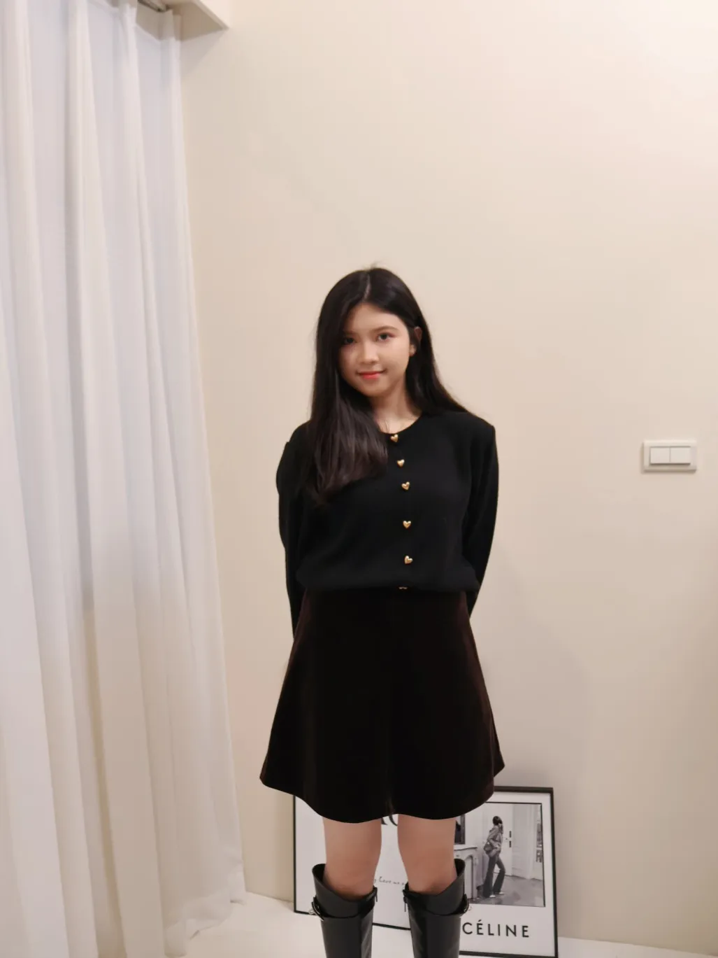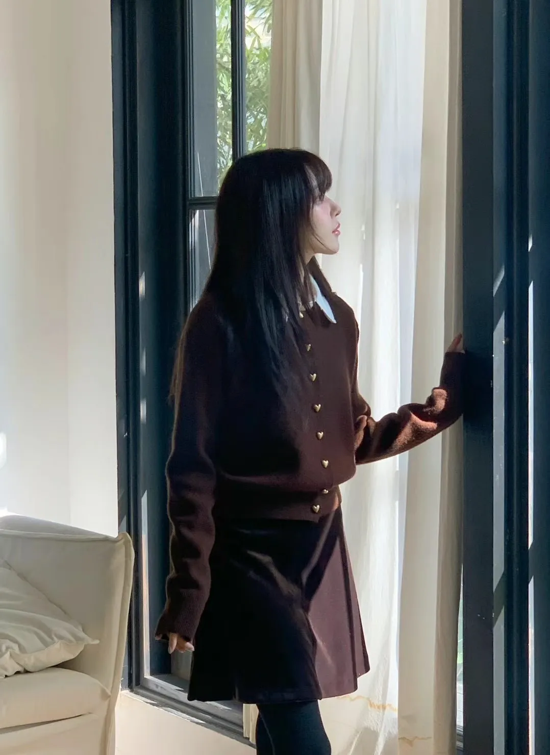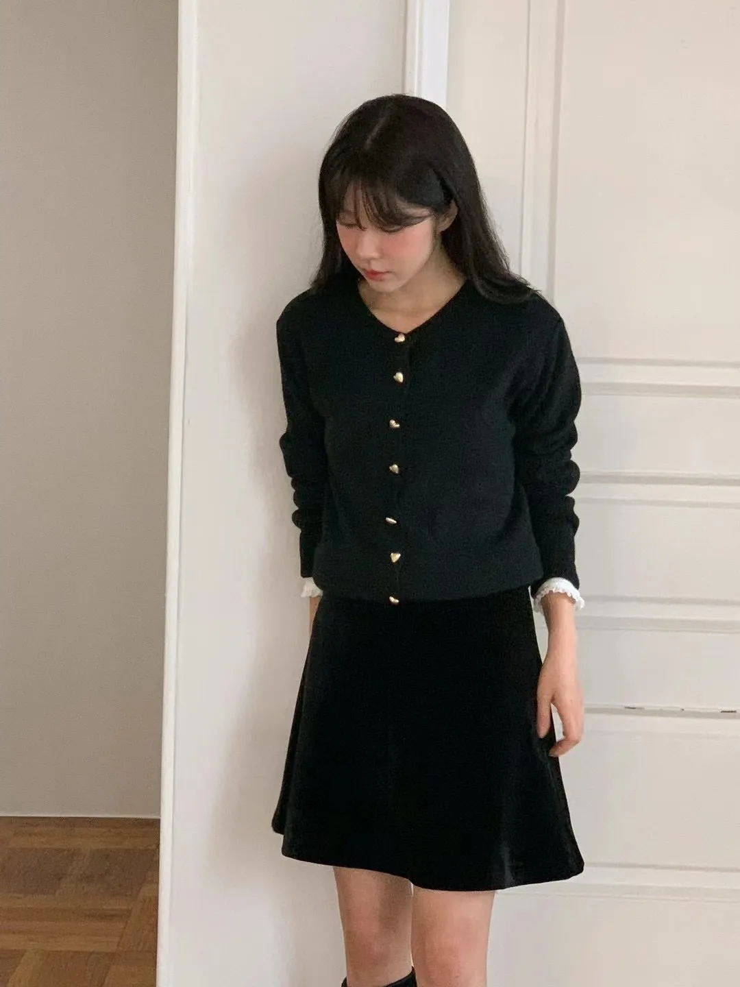 愛心金屬釦高品質親膚圓領簡約長袖針織衫