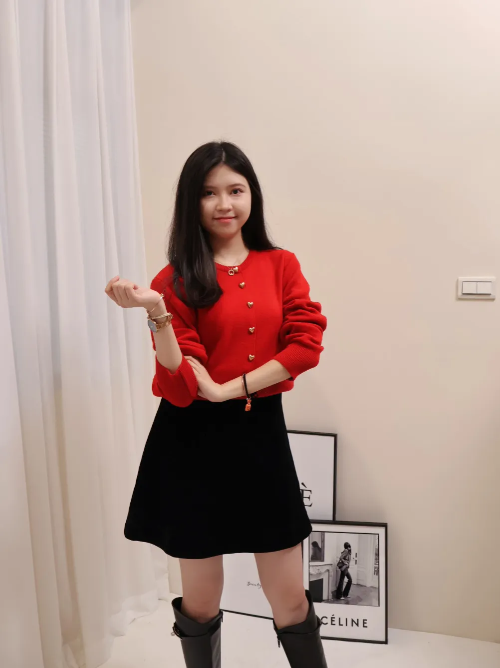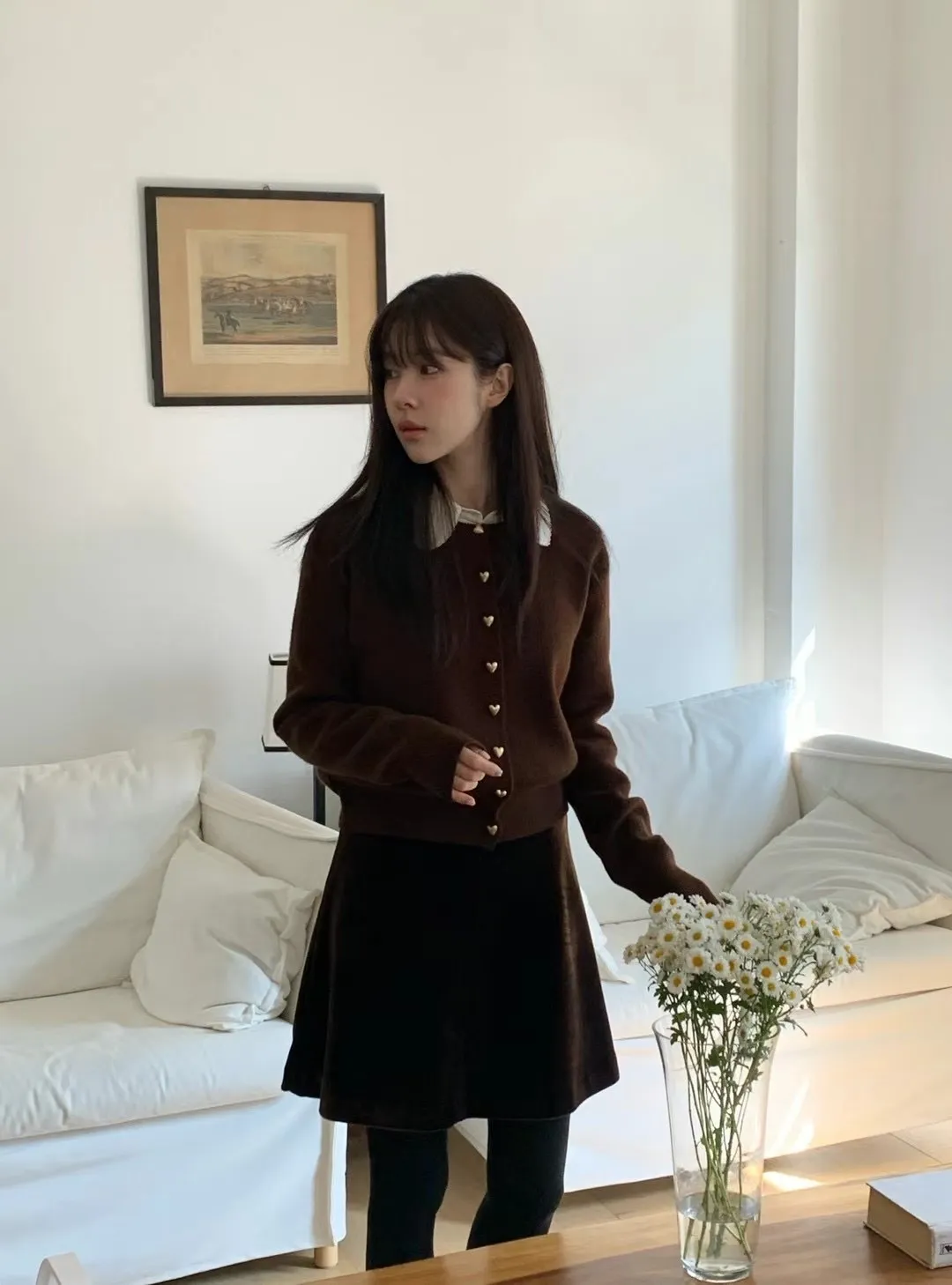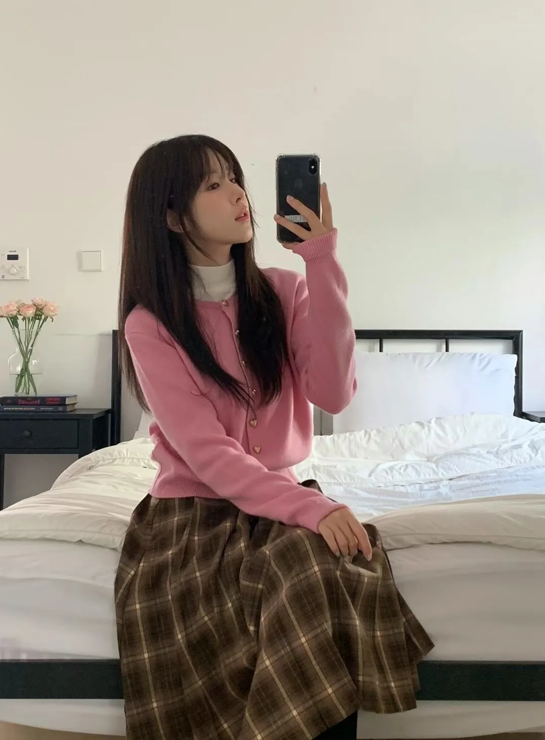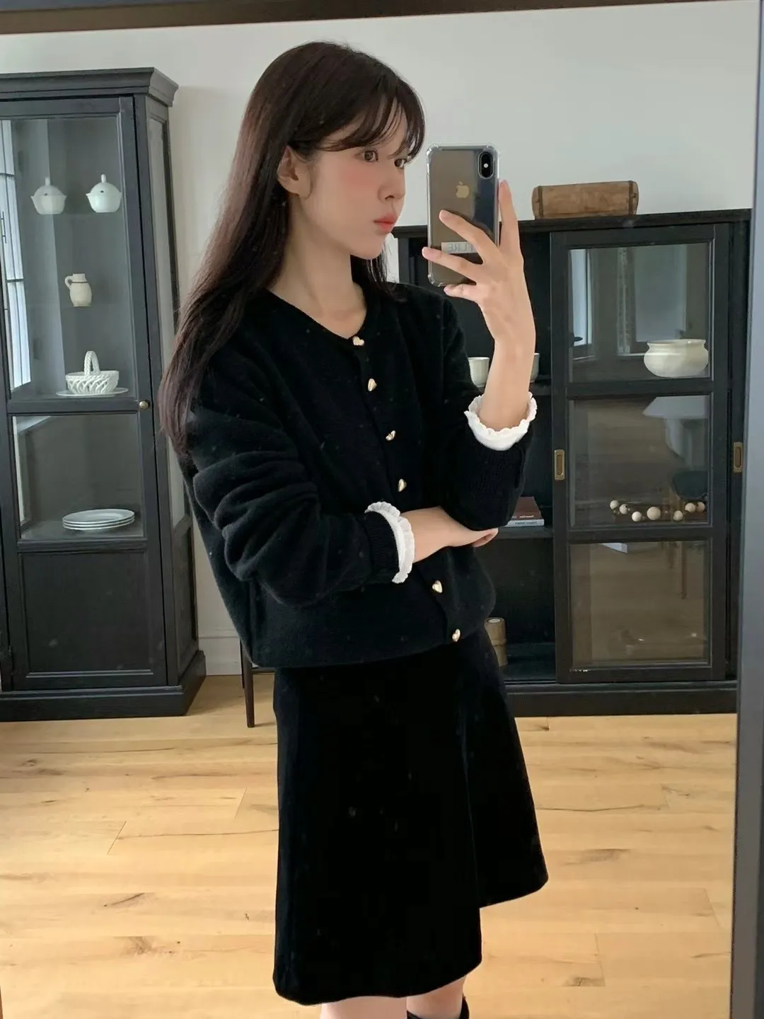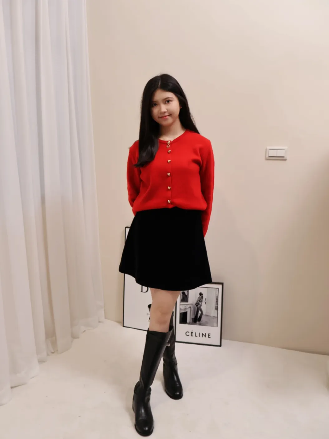 愛心金屬釦高品質親膚圓領簡約長袖針織衫