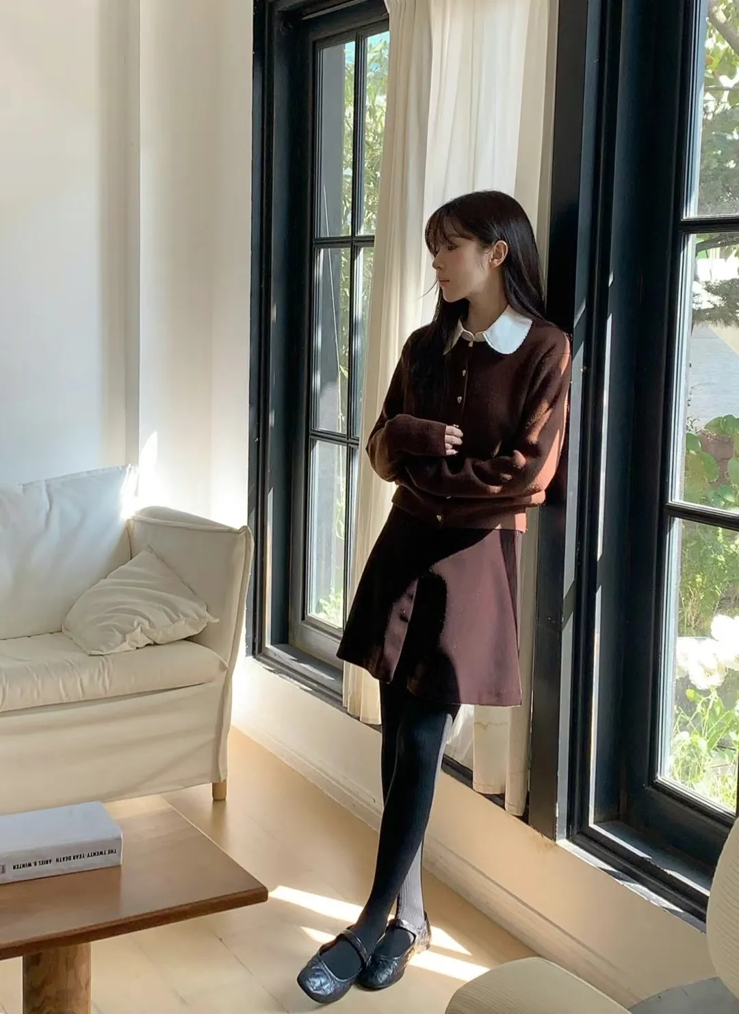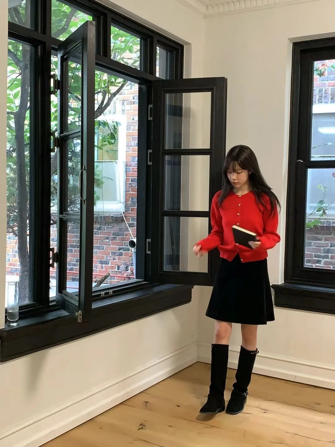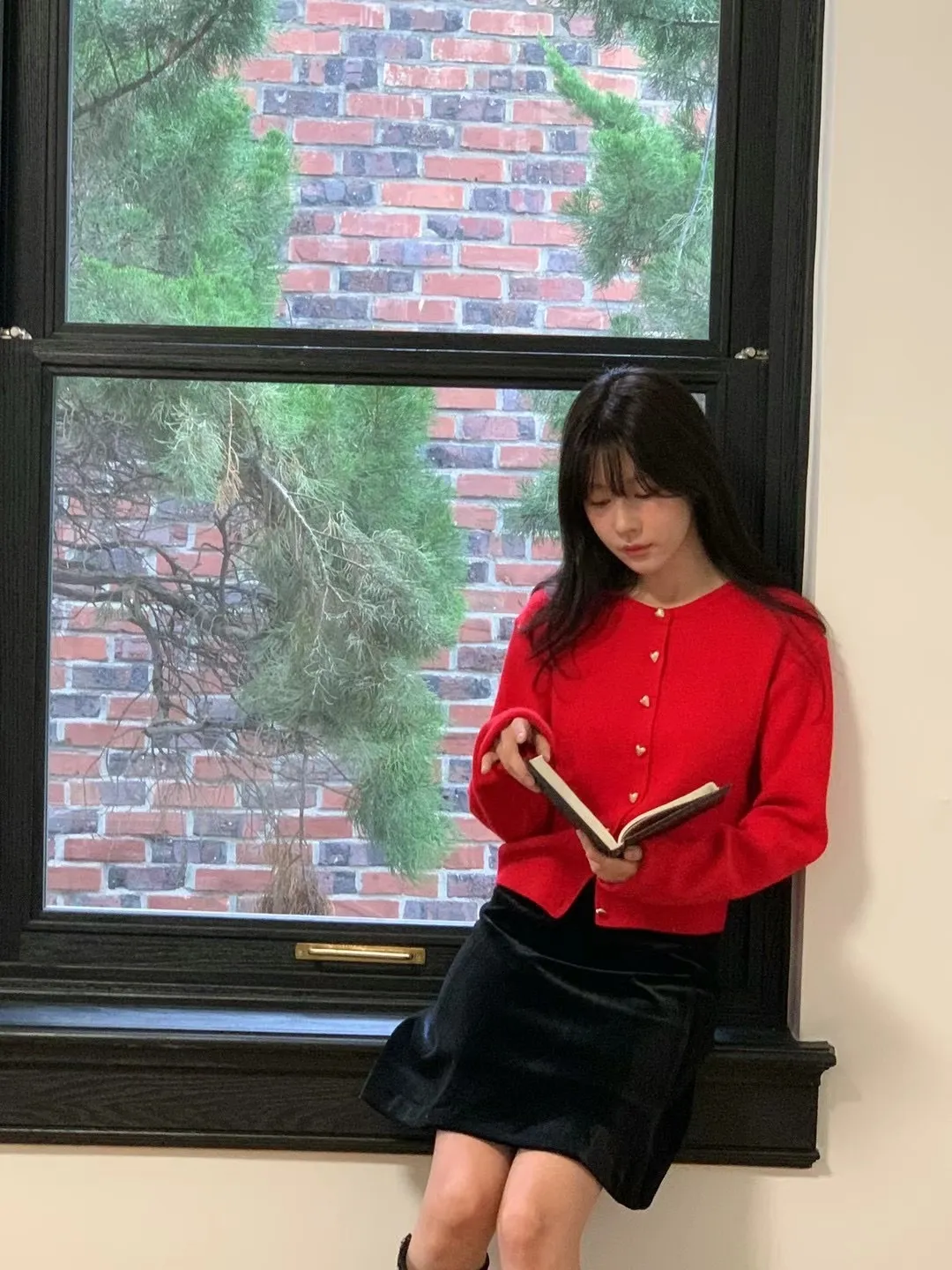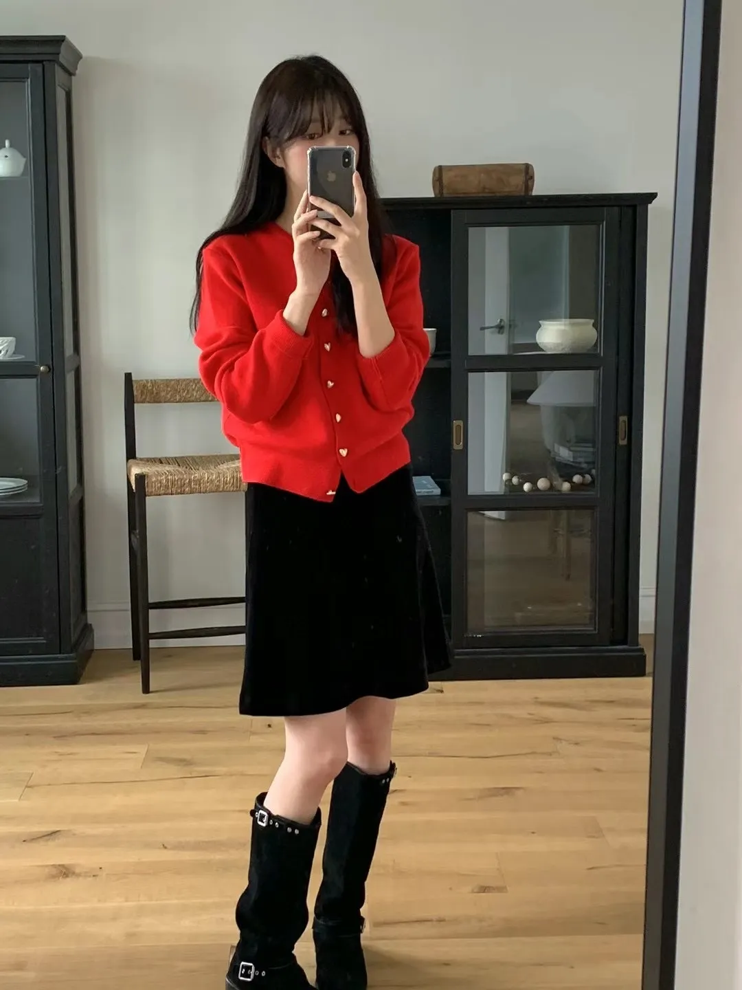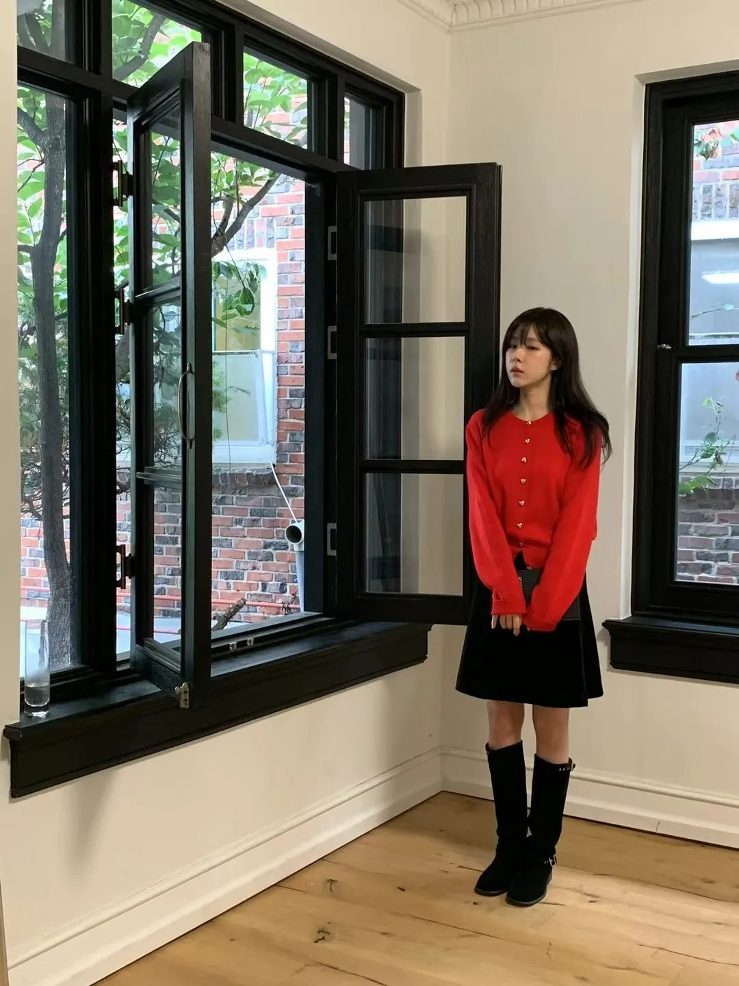 愛心金屬釦高品質親膚圓領簡約長袖針織衫
