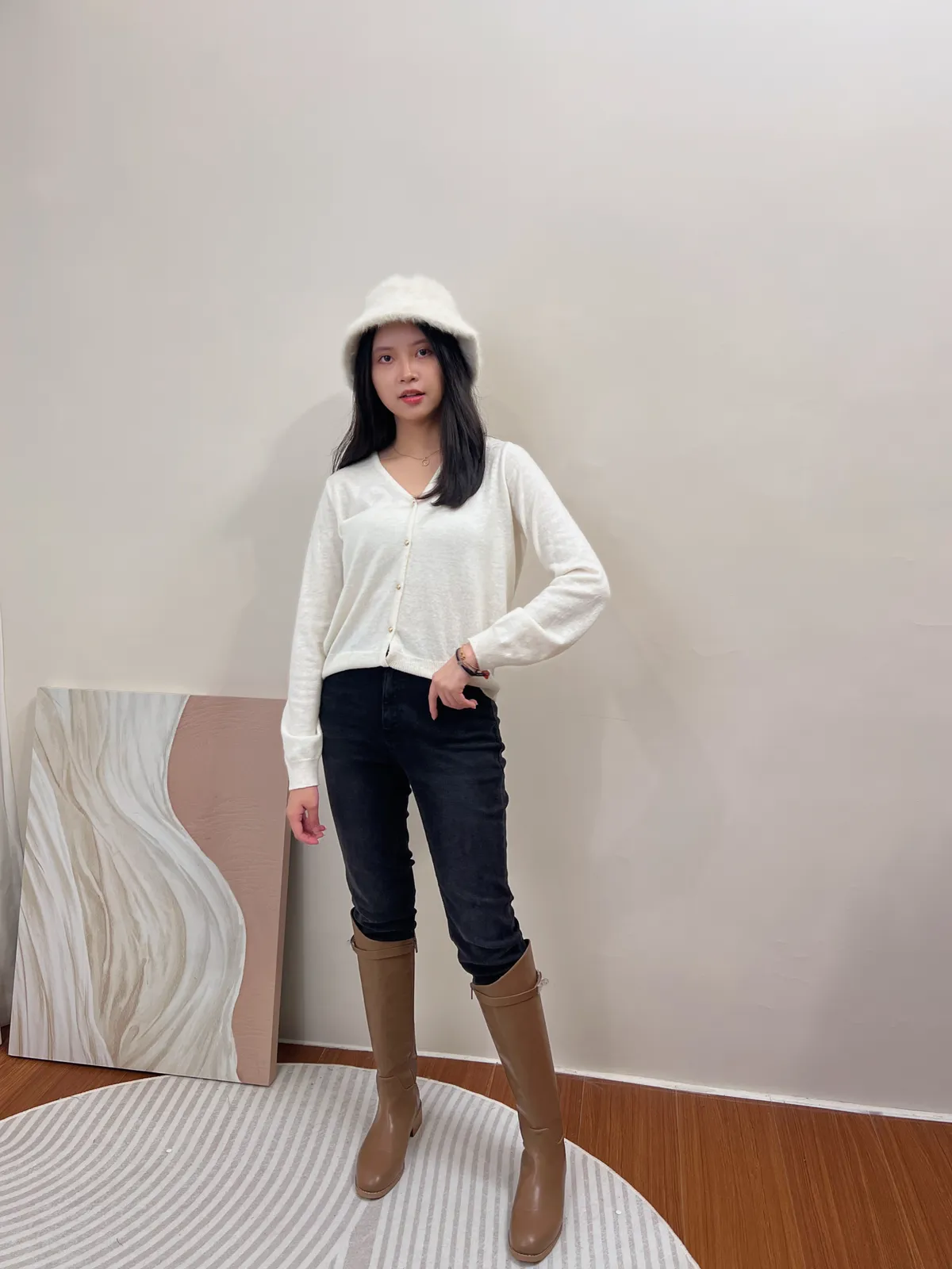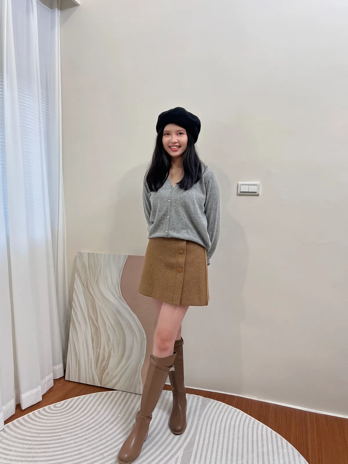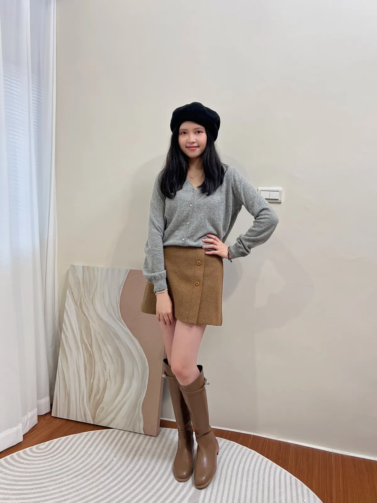 Cashmere羊毛親膚簡約清新金釦開襟針織衫