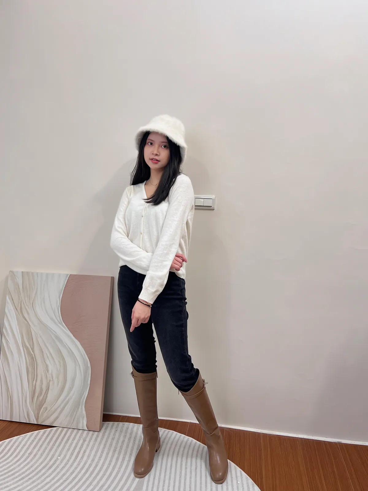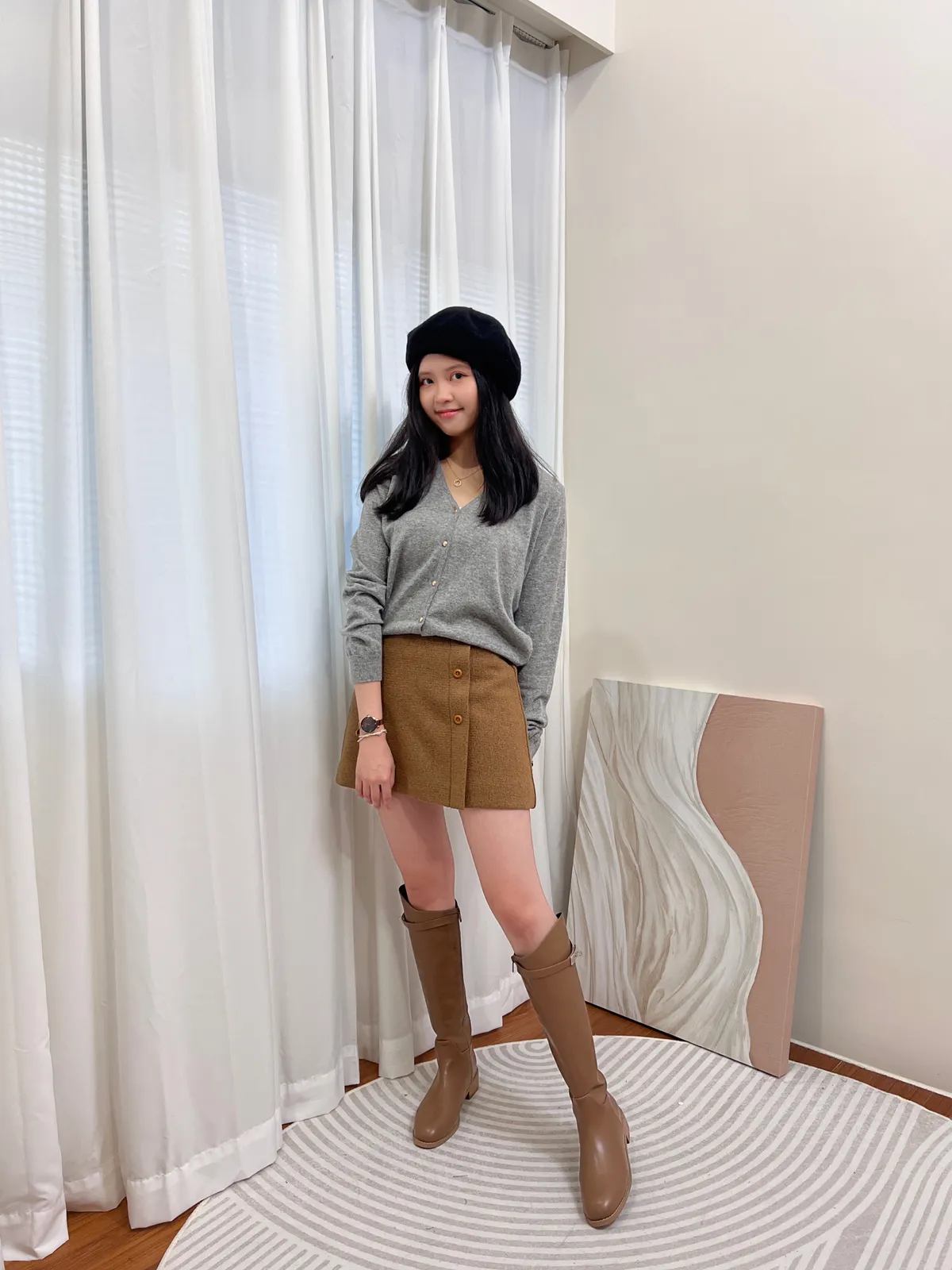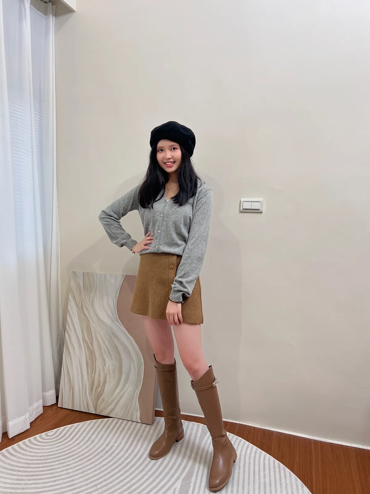 Cashmere羊毛親膚簡約清新金釦開襟針織衫