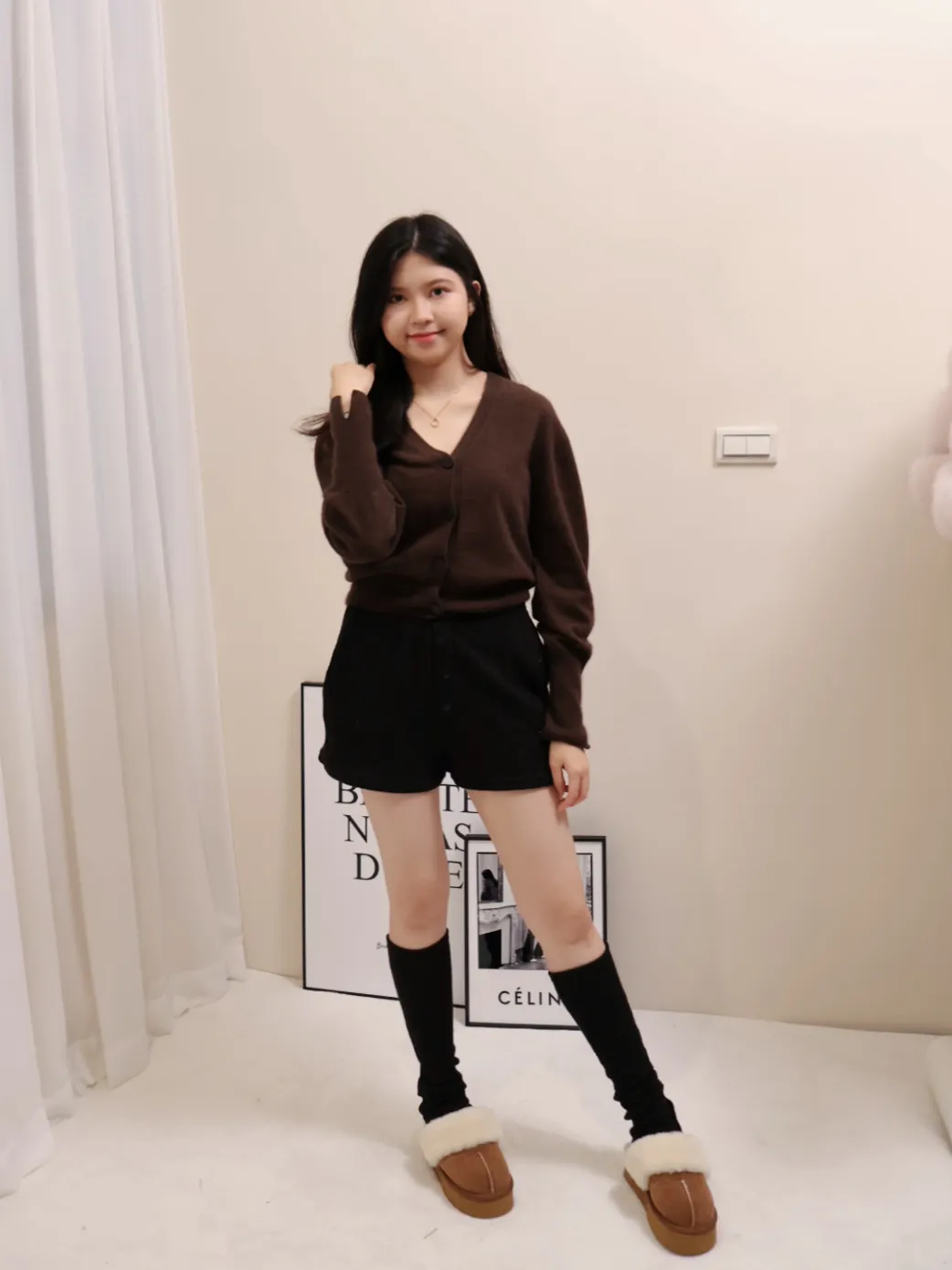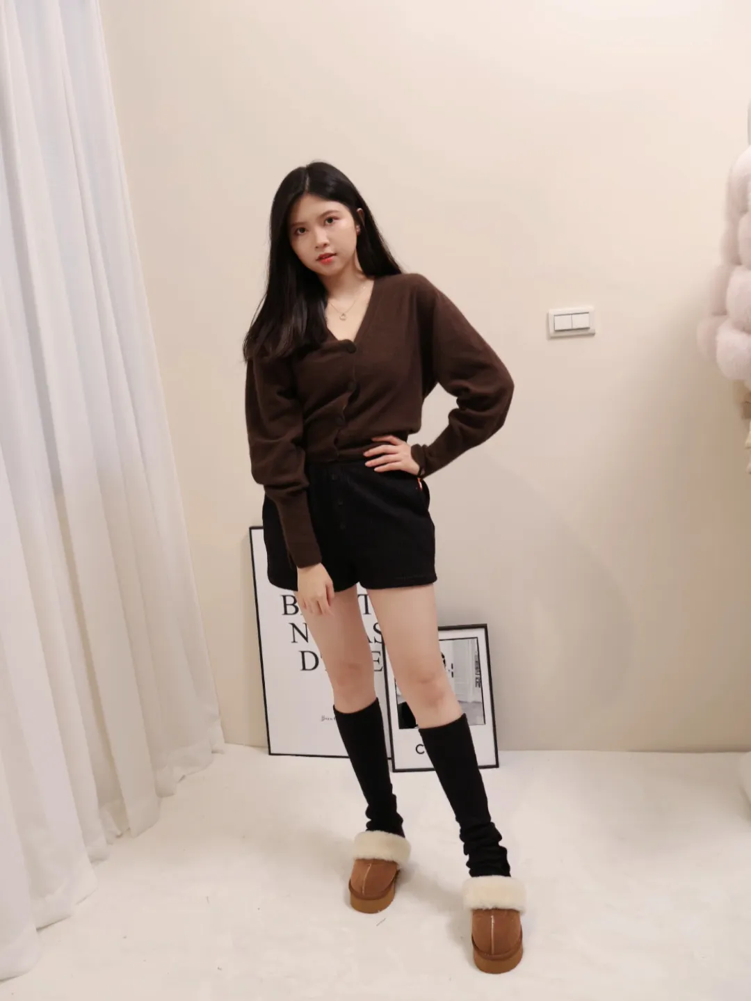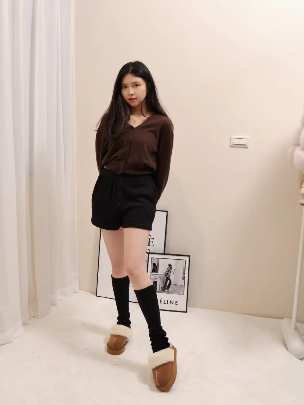 設計師品牌 浣熊毛針織開衫V領針織開衫上衣