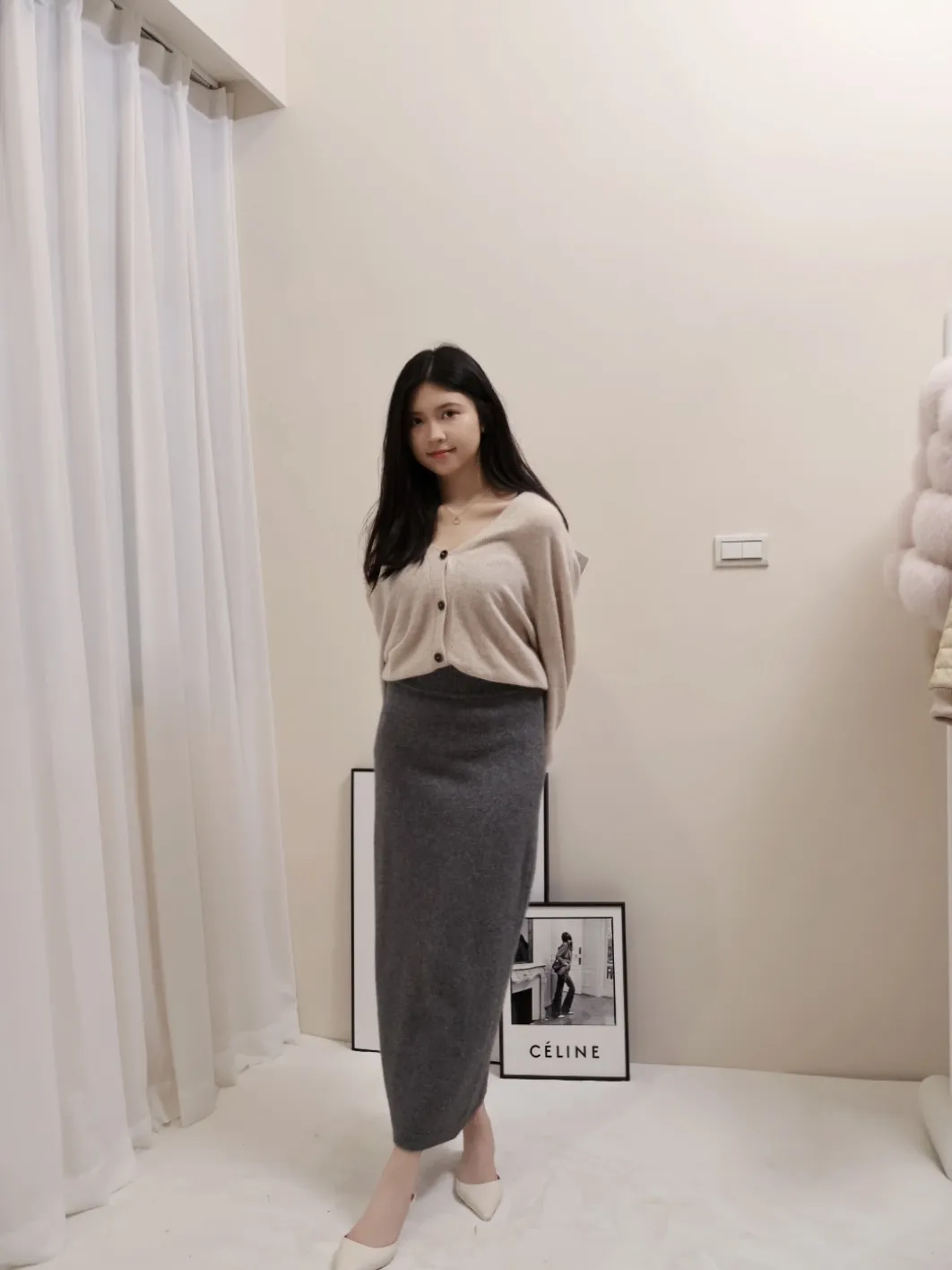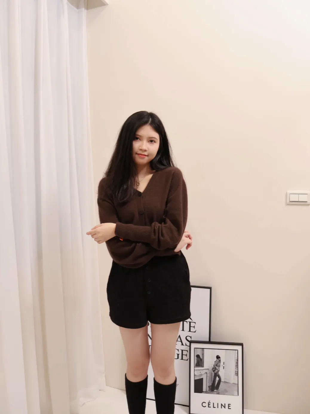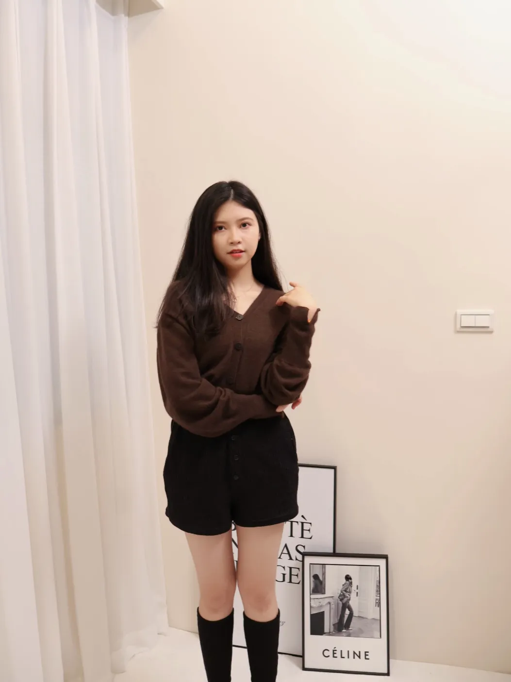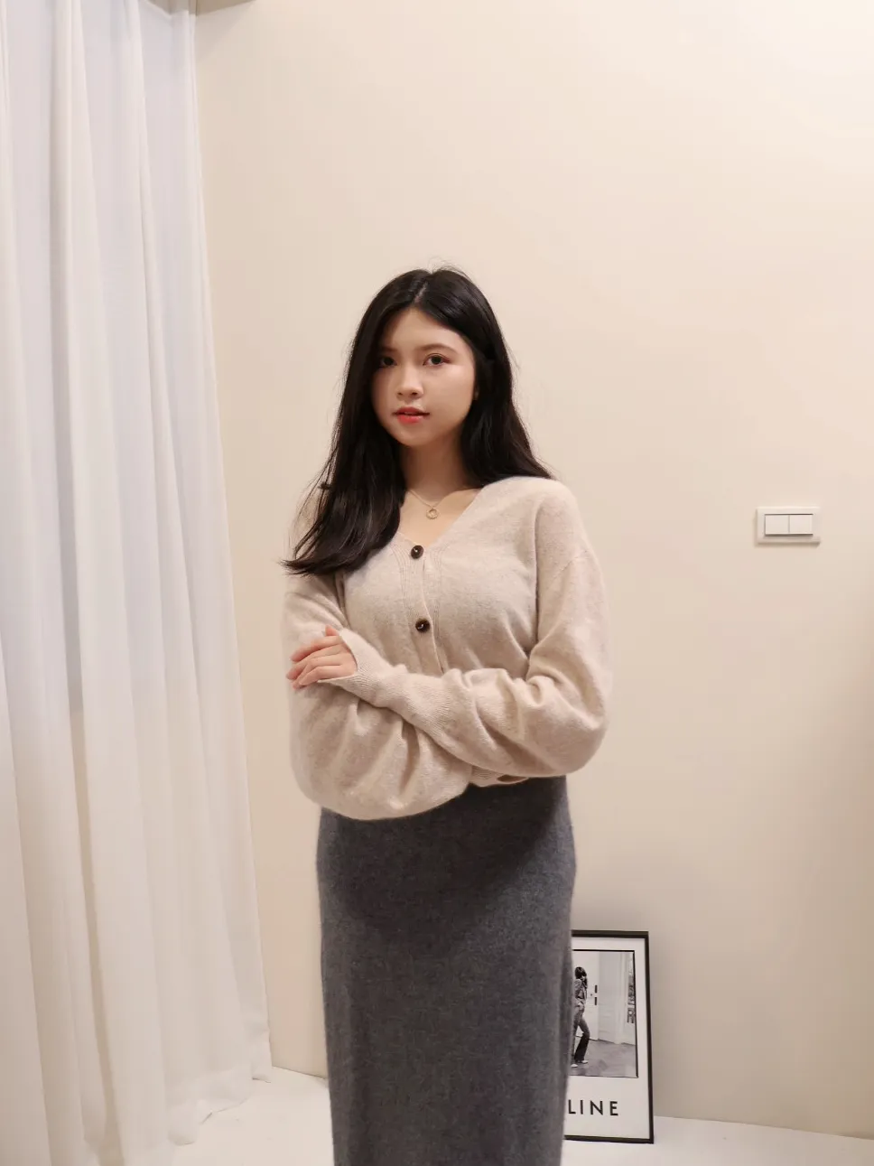 設計師品牌 浣熊毛針織開衫V領針織開衫上衣