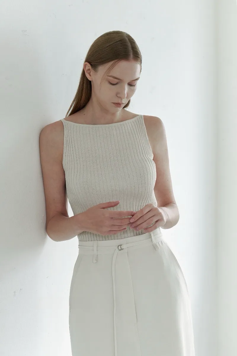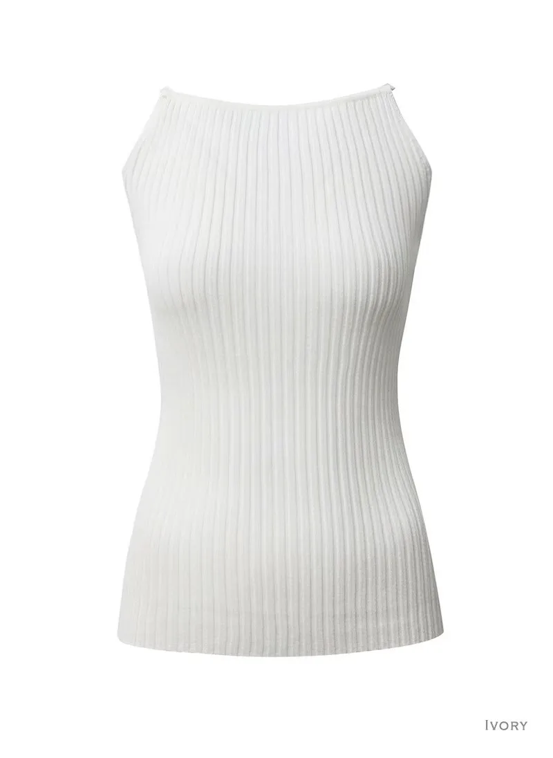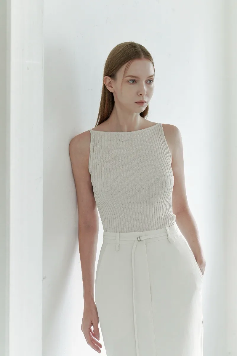 簡約人造絲細肩針織上衣