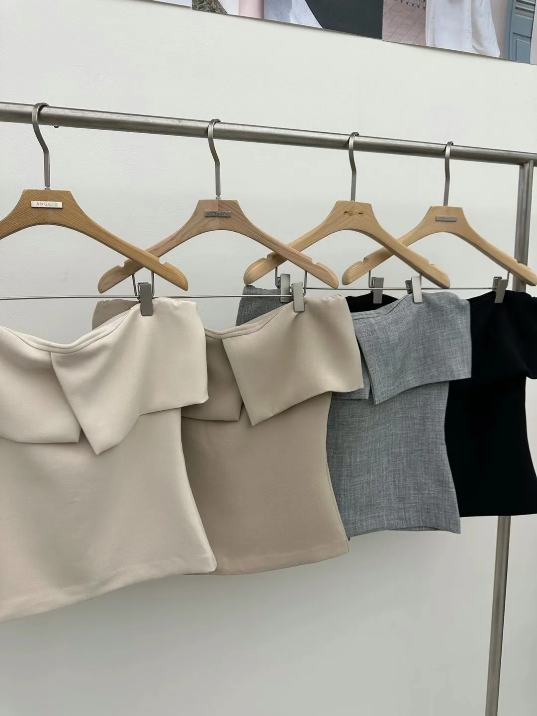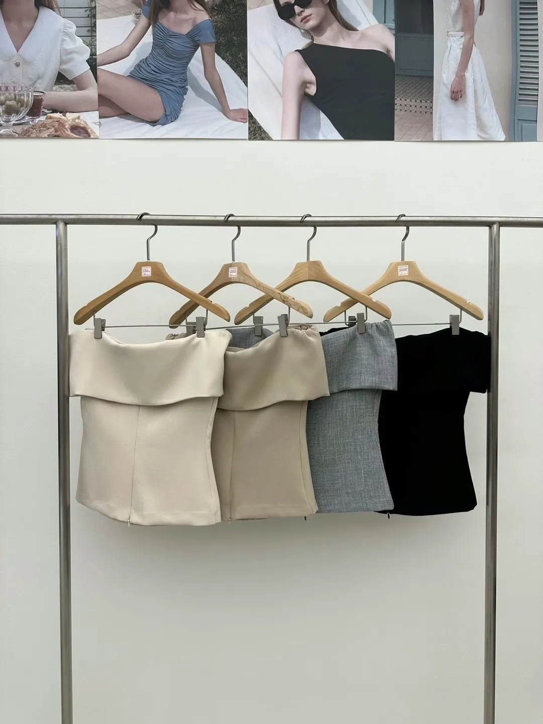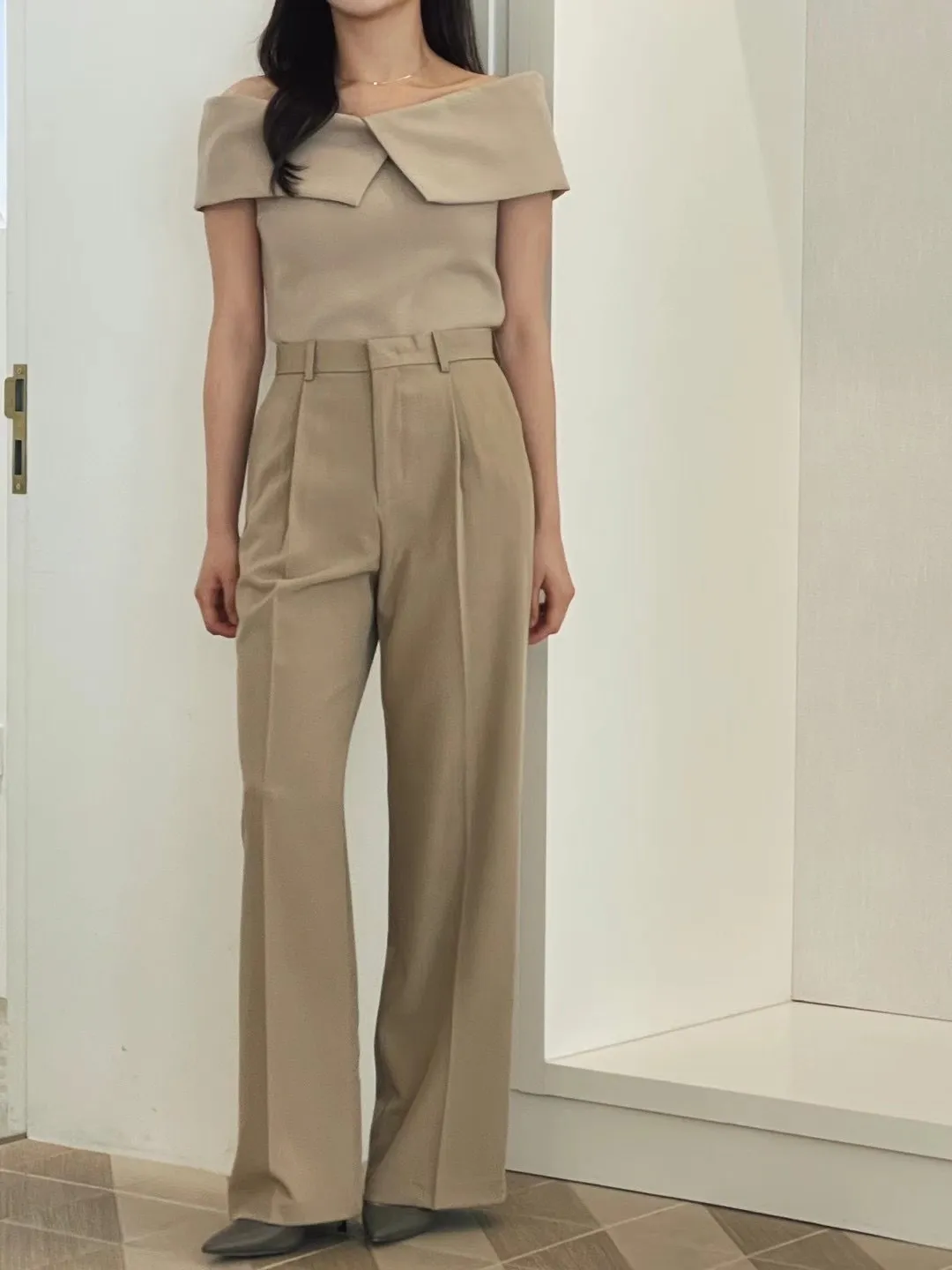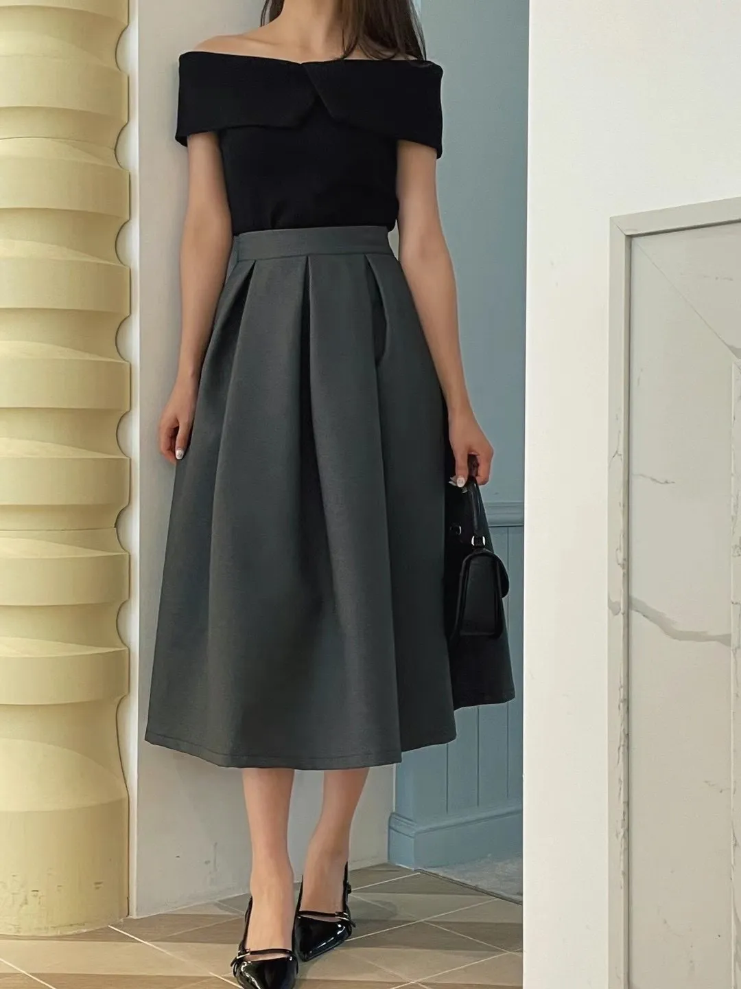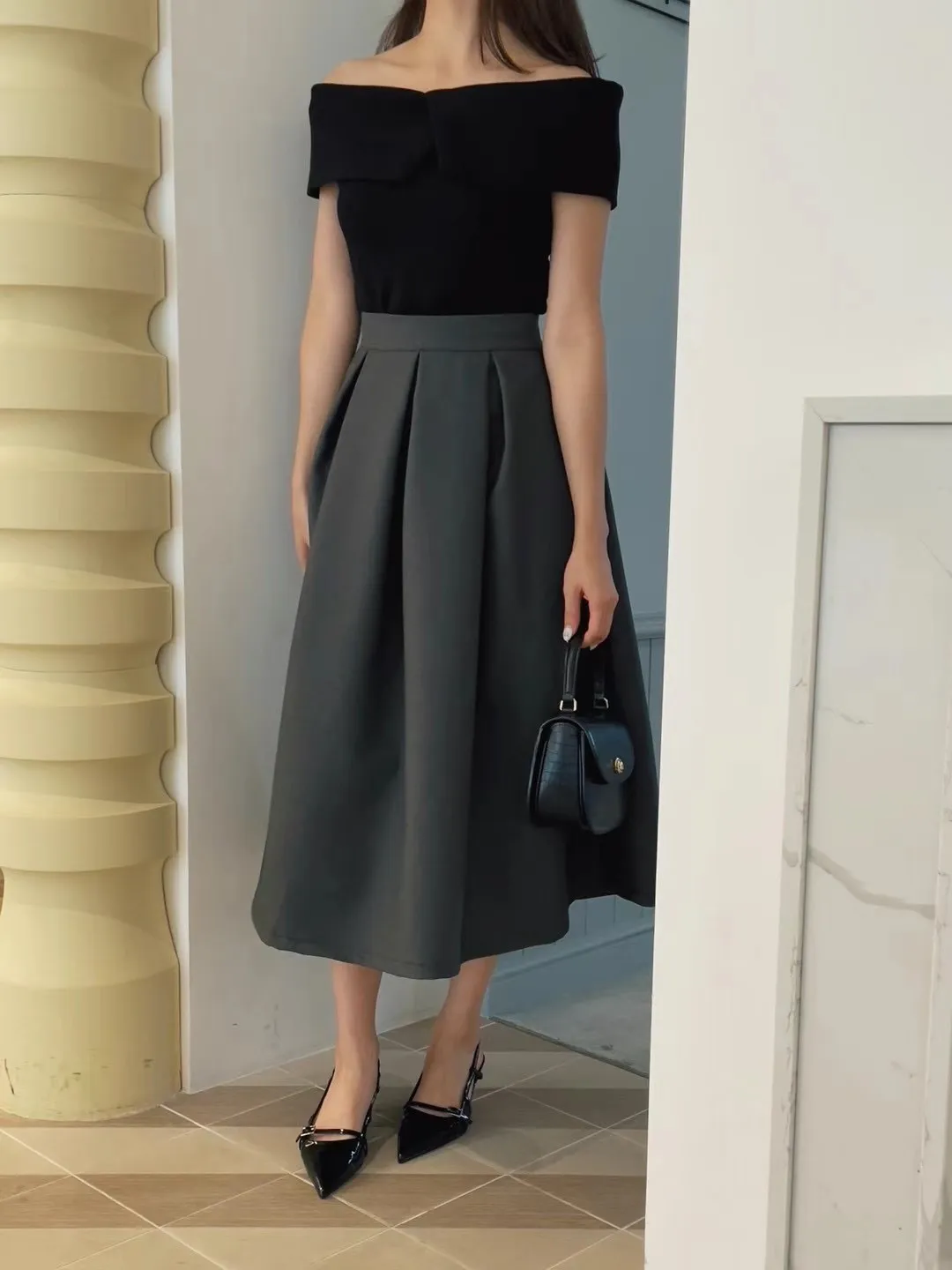 高端設計師品牌 秋款一字領開衩露肩上衣